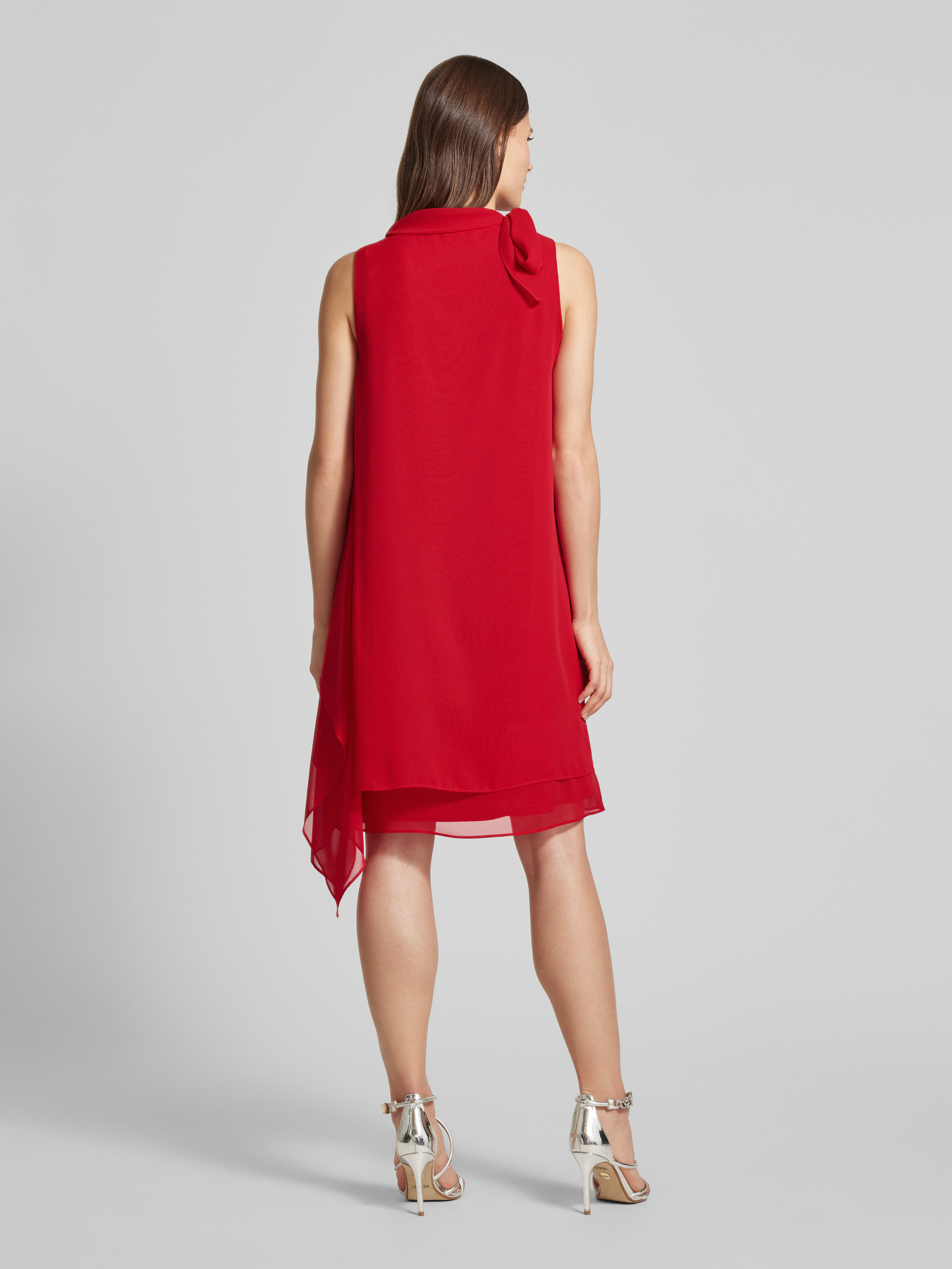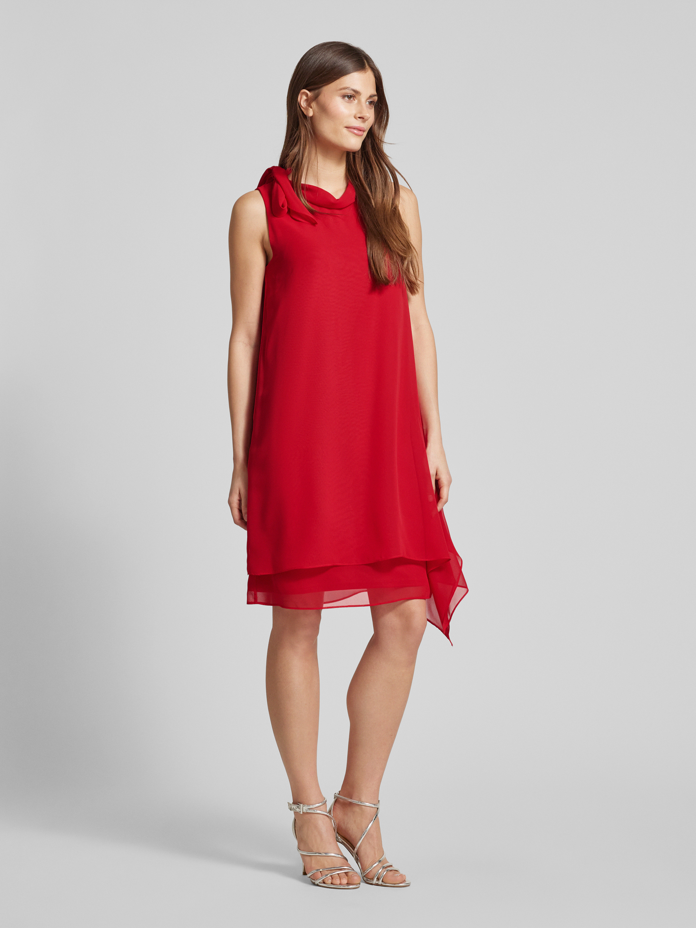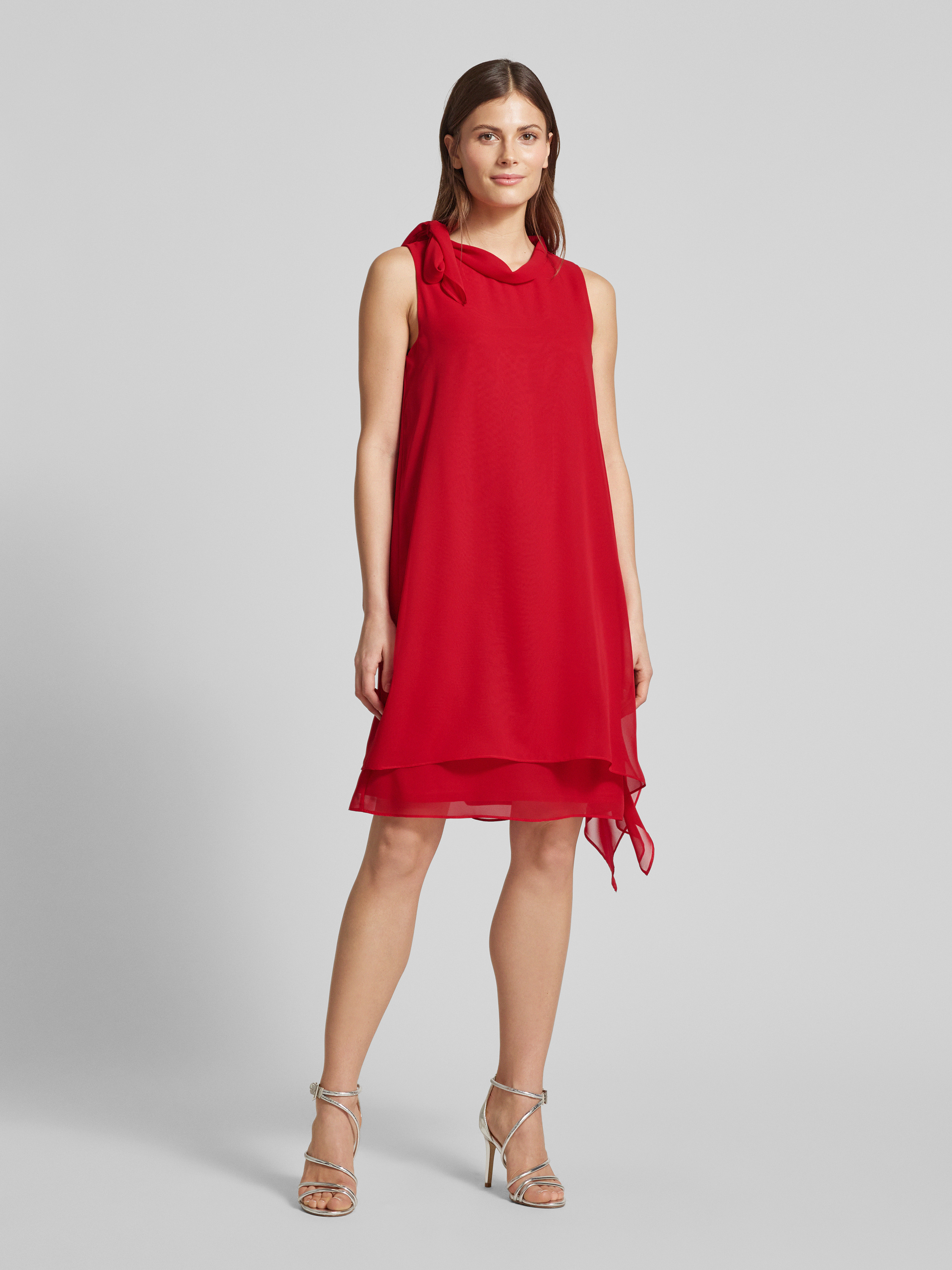 Sukienka koktajlowa o długości do kolan z wiązanym detalem - czerwony