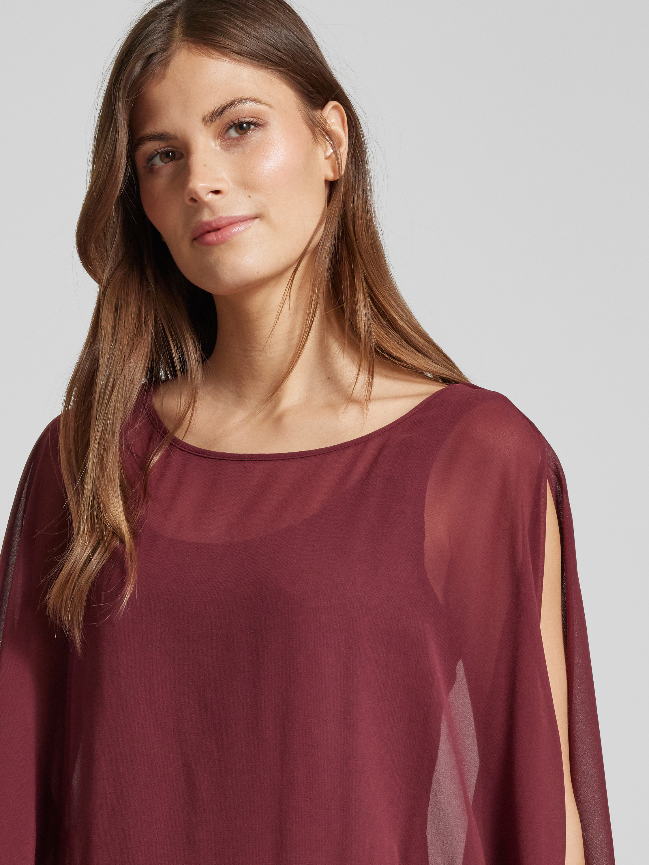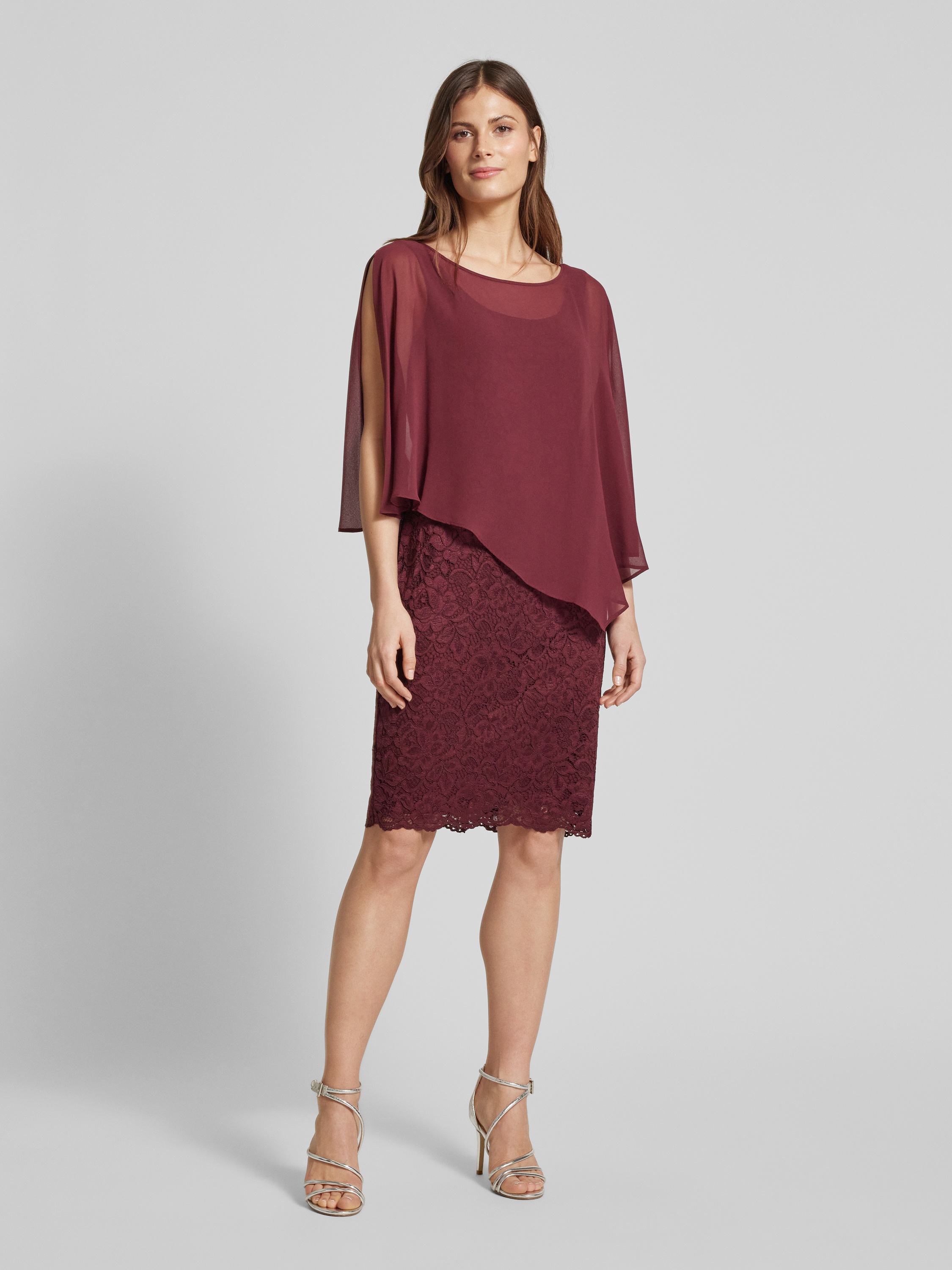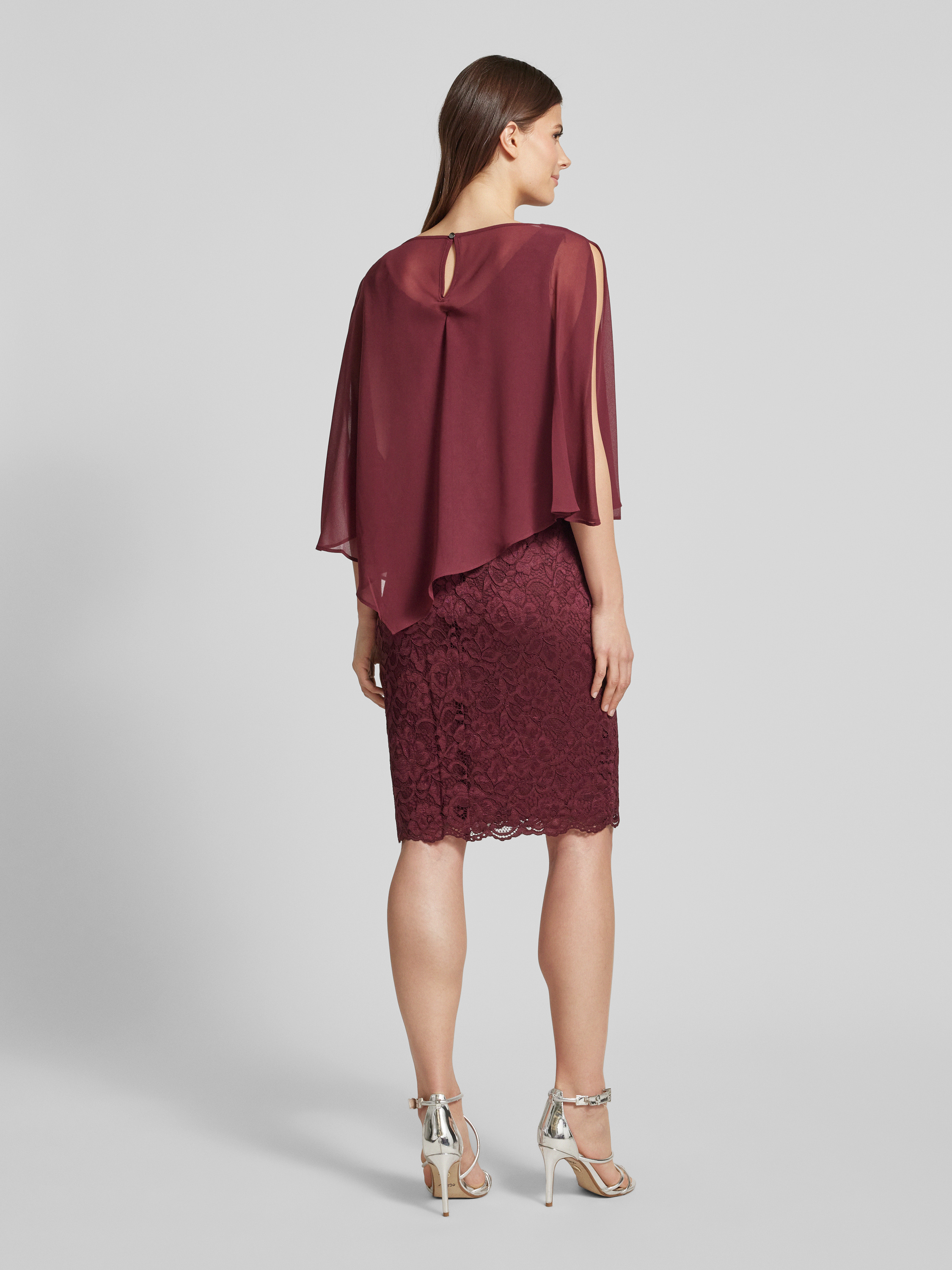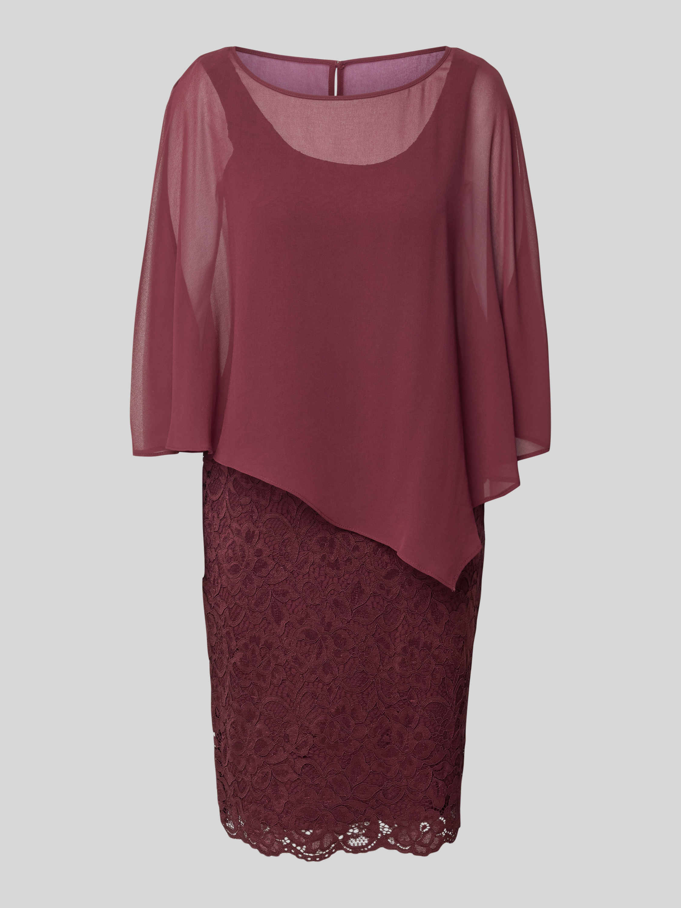 Sukienka koktajlowa z półprzezroczystym obszyciem - ciemnoczerwony