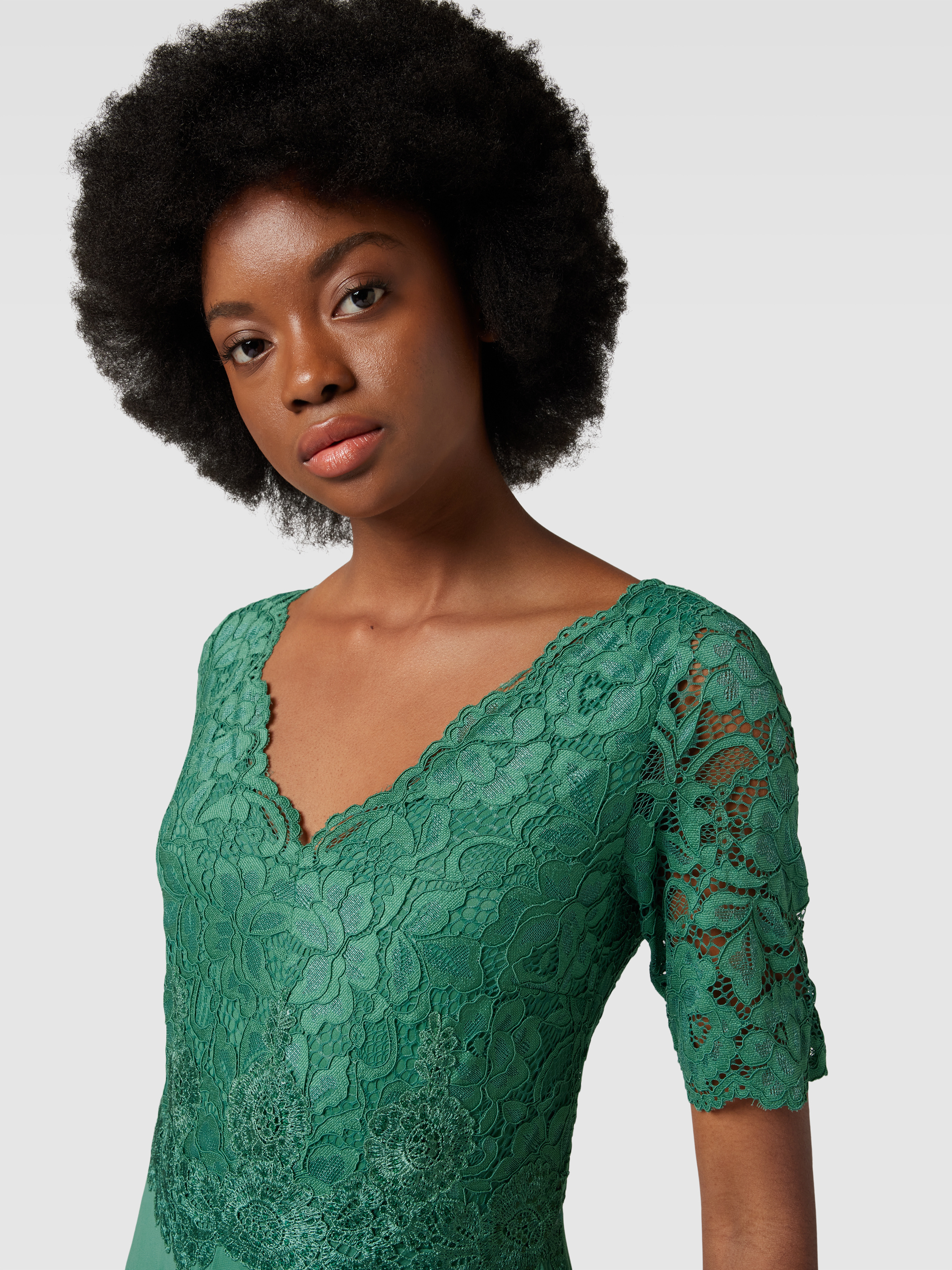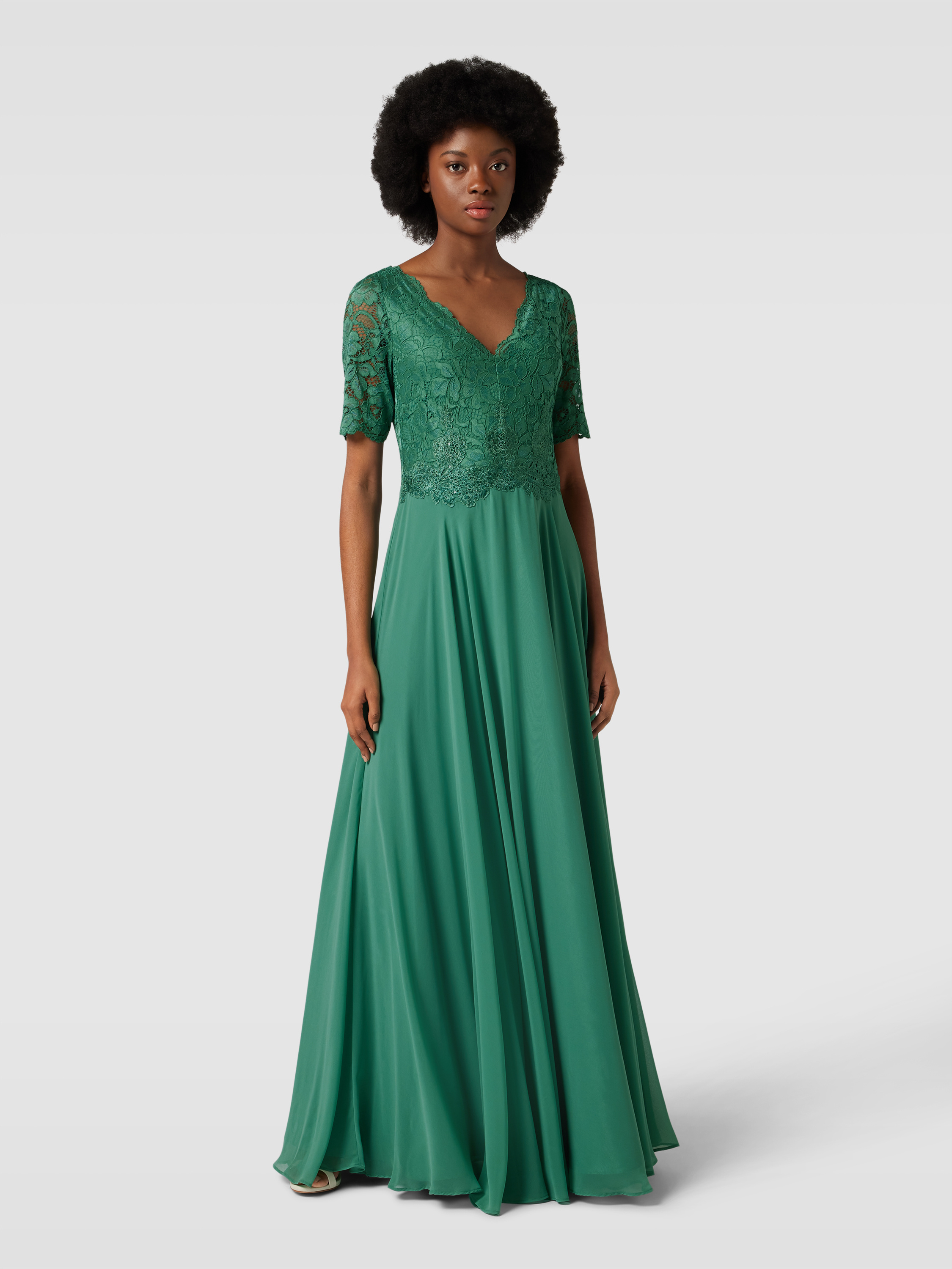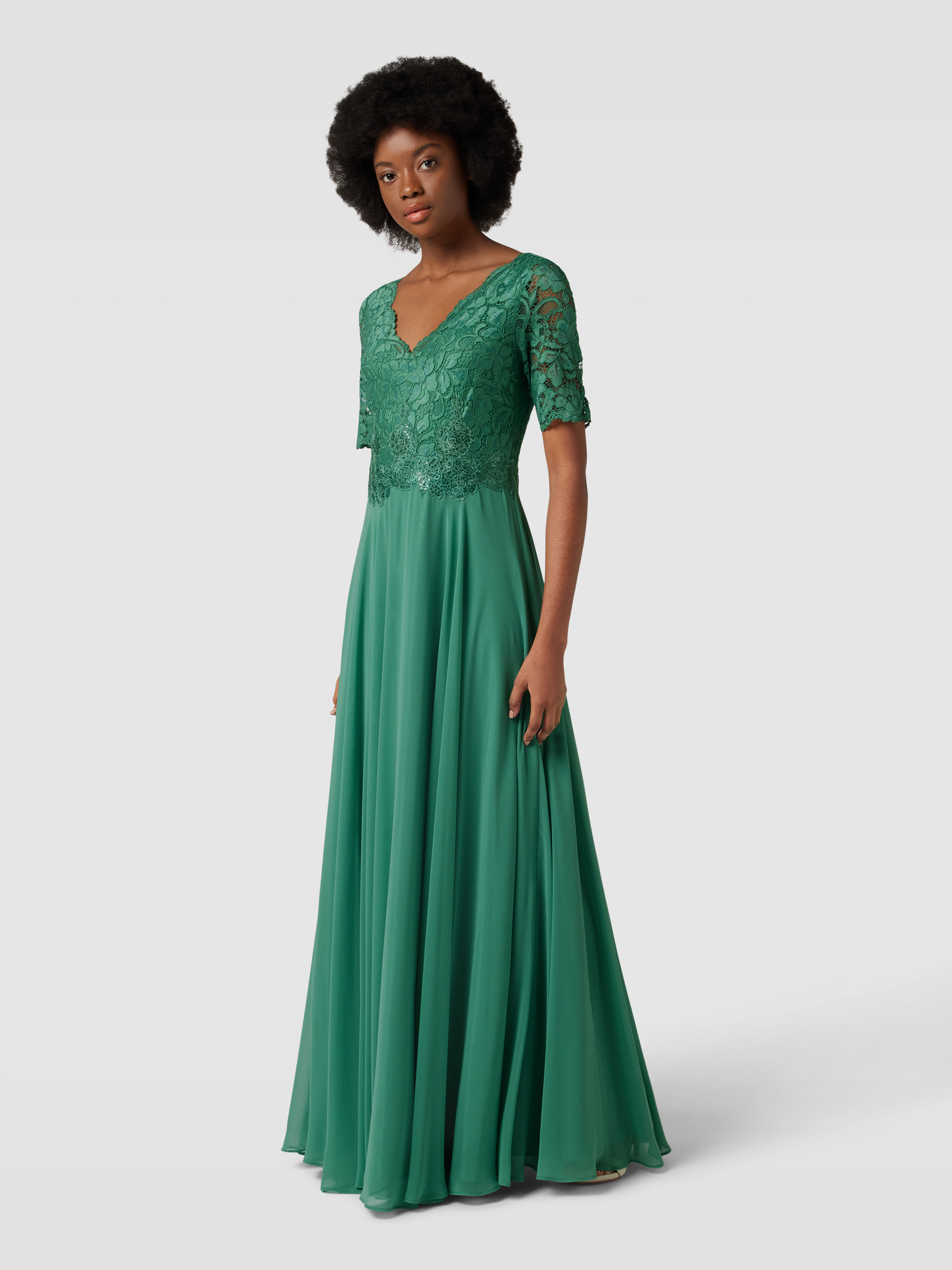Sukienka wieczorowa z koronkowym obszyciem - zielony