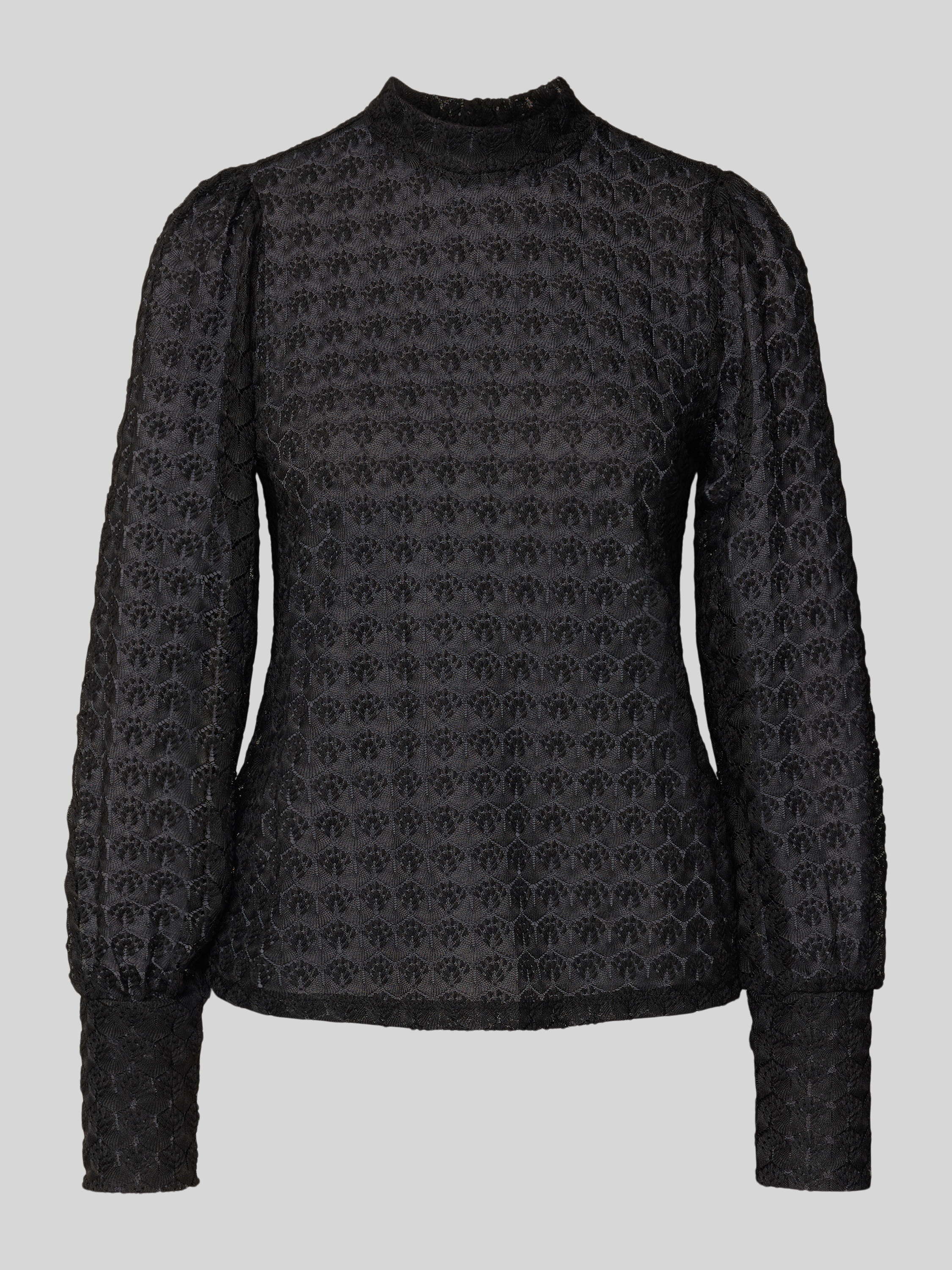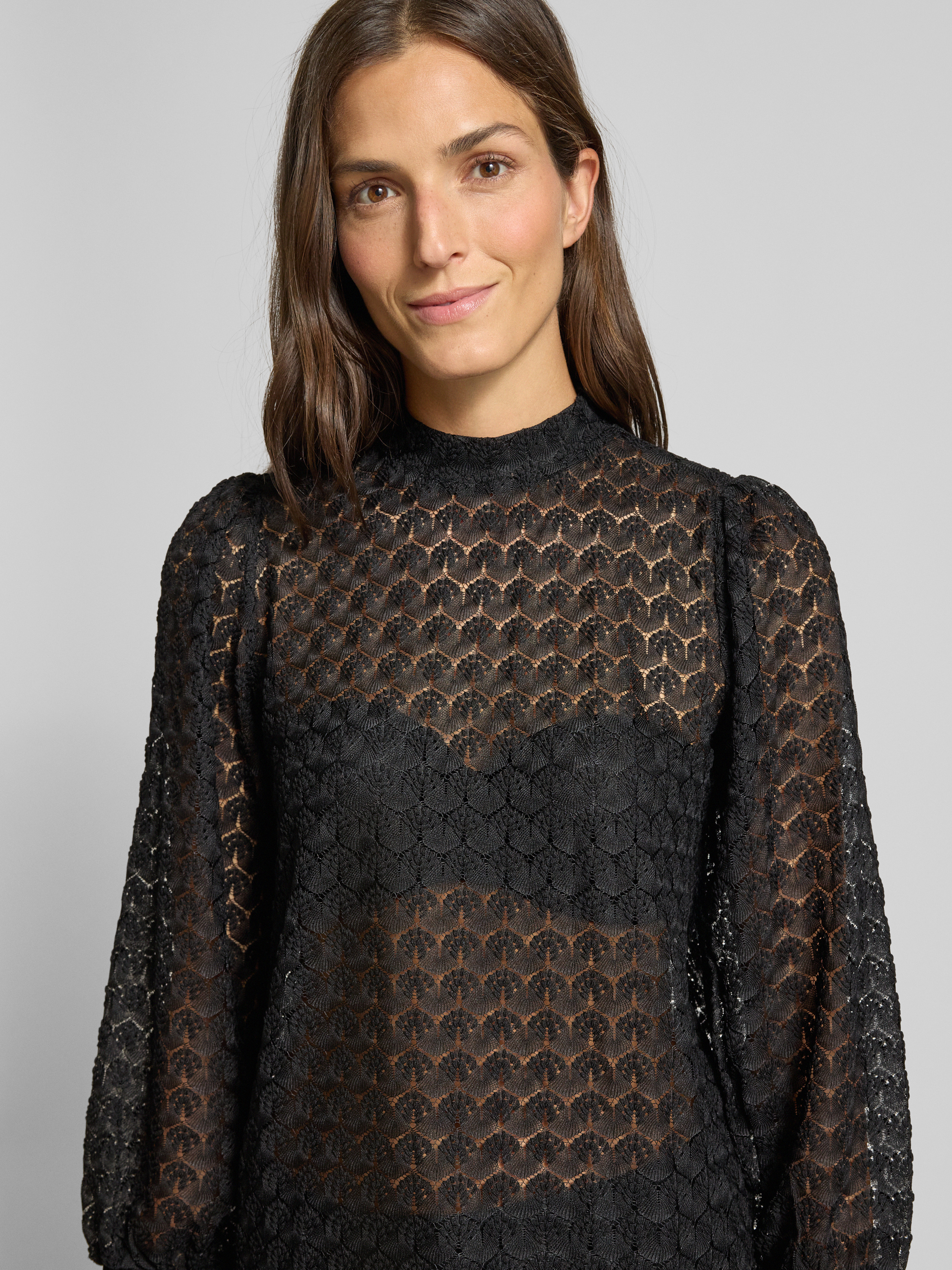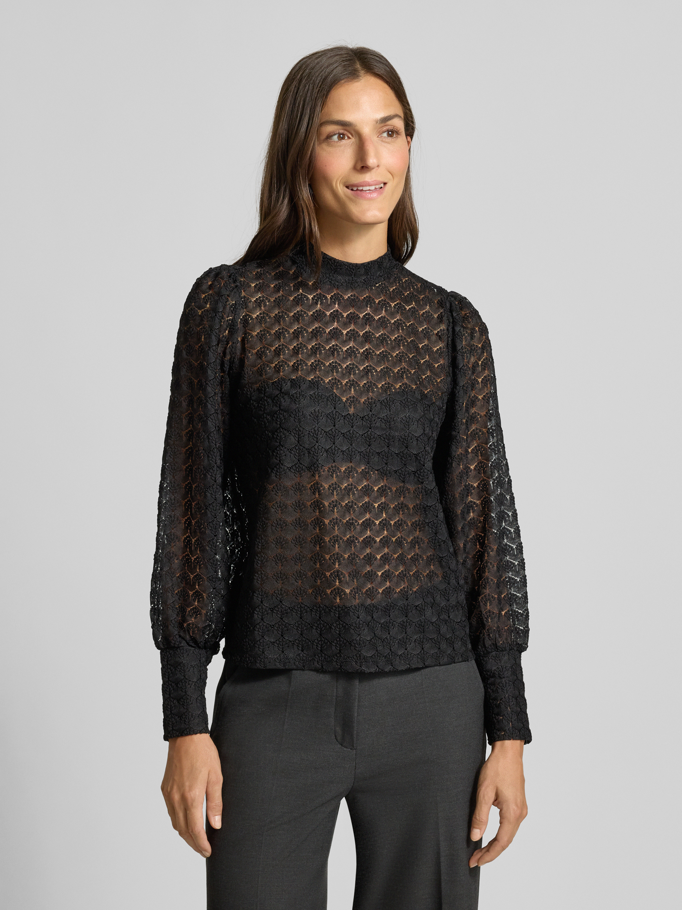 Bluzka koronkowa o kroju regular fit z półgolfem model ‘BECCA’ - czarny