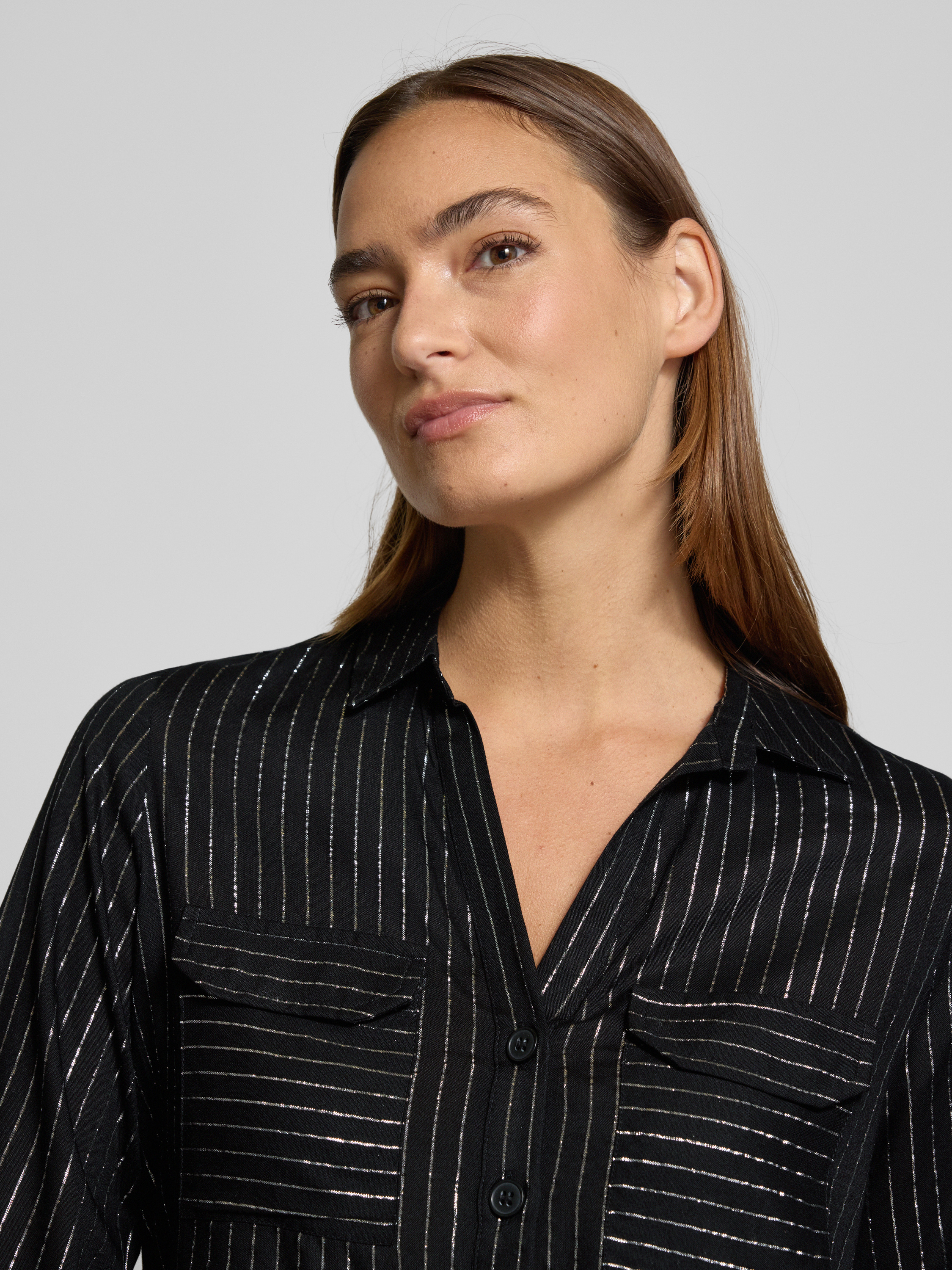 Bluzka koszulowa o kroju regular fit z mieszanki wiskozy model ‘BUMPY’ - czarny
