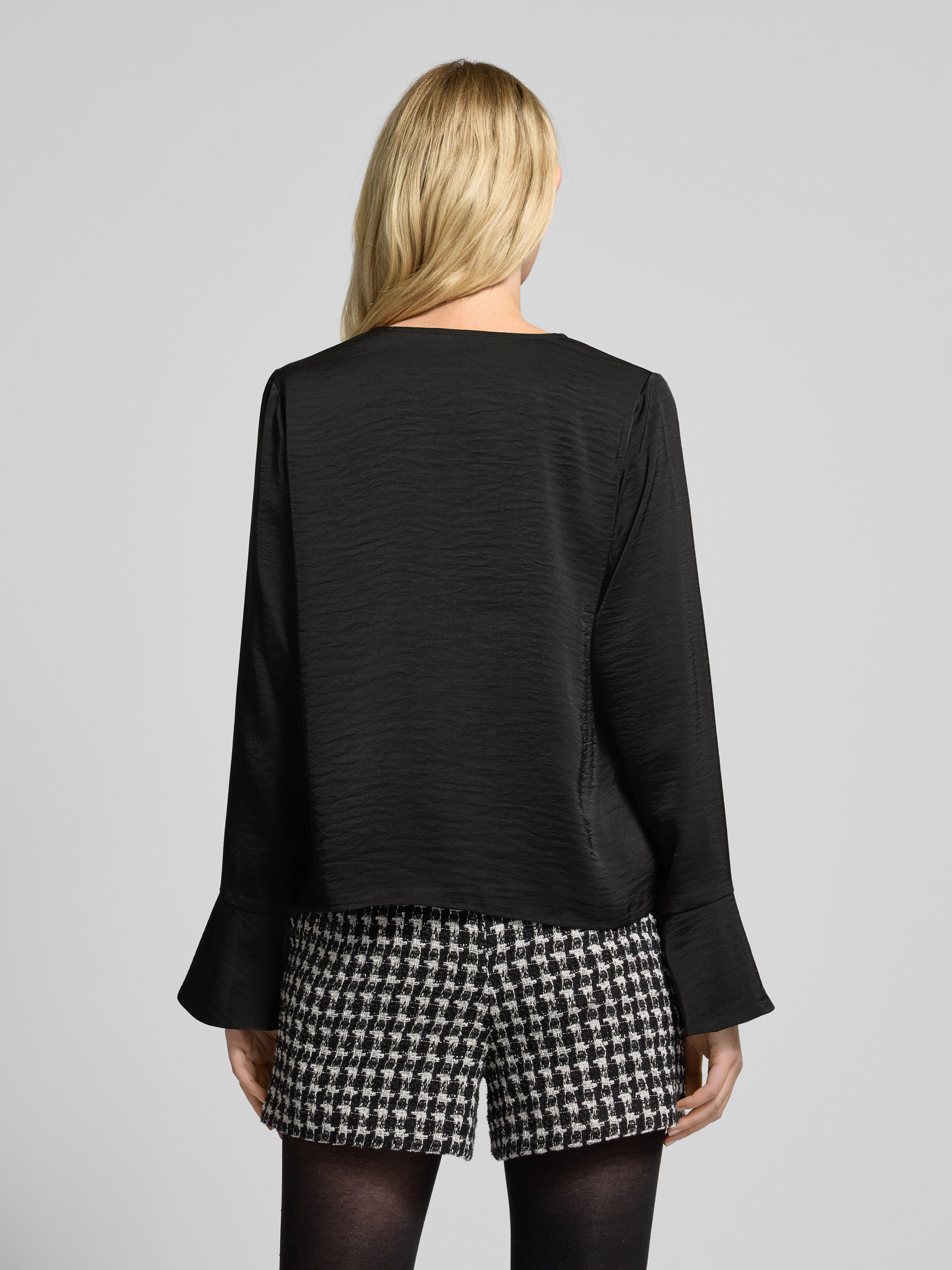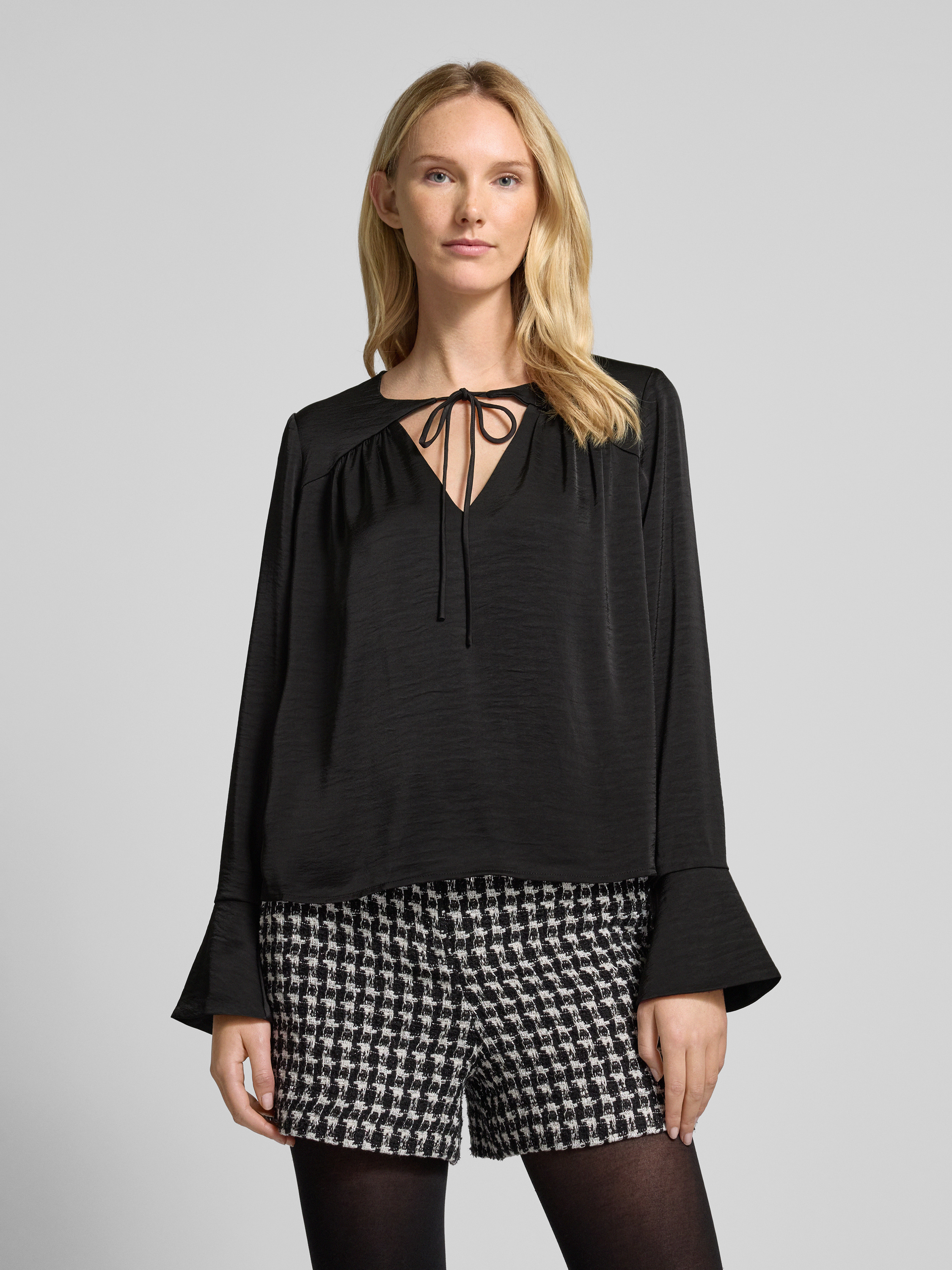 Bluzka o kroju regular fit z rozkloszowanymi mankietami model ‘MARY’ - czarny