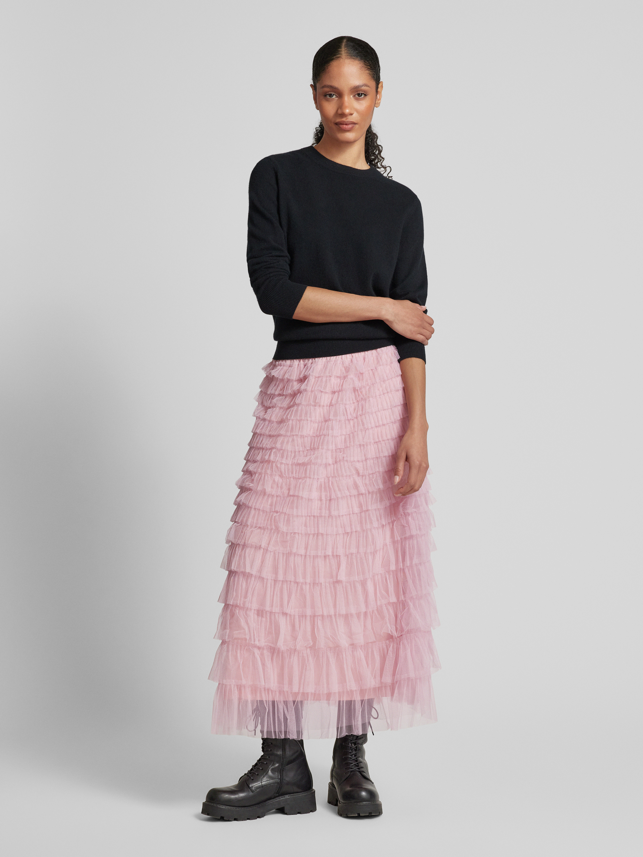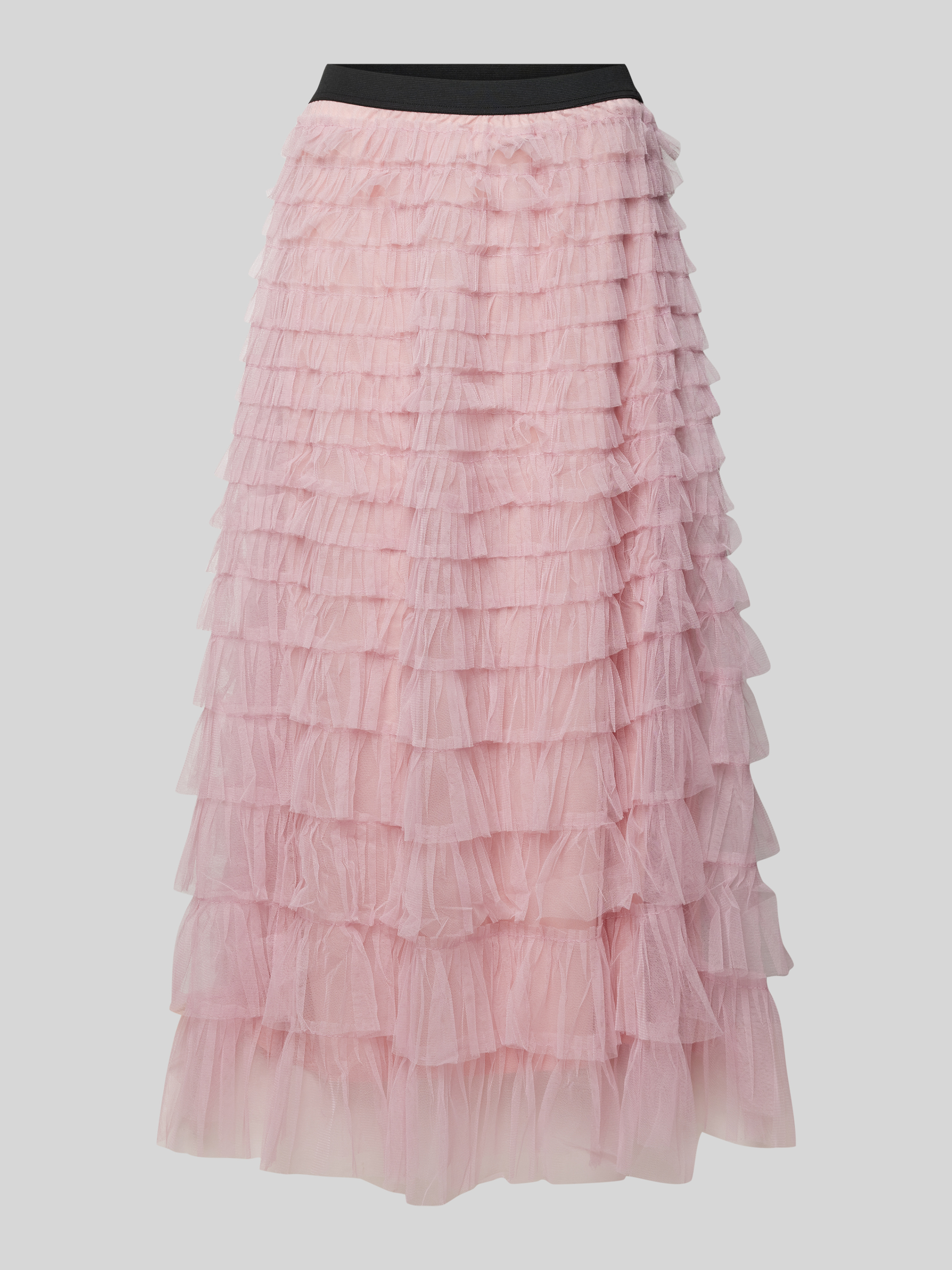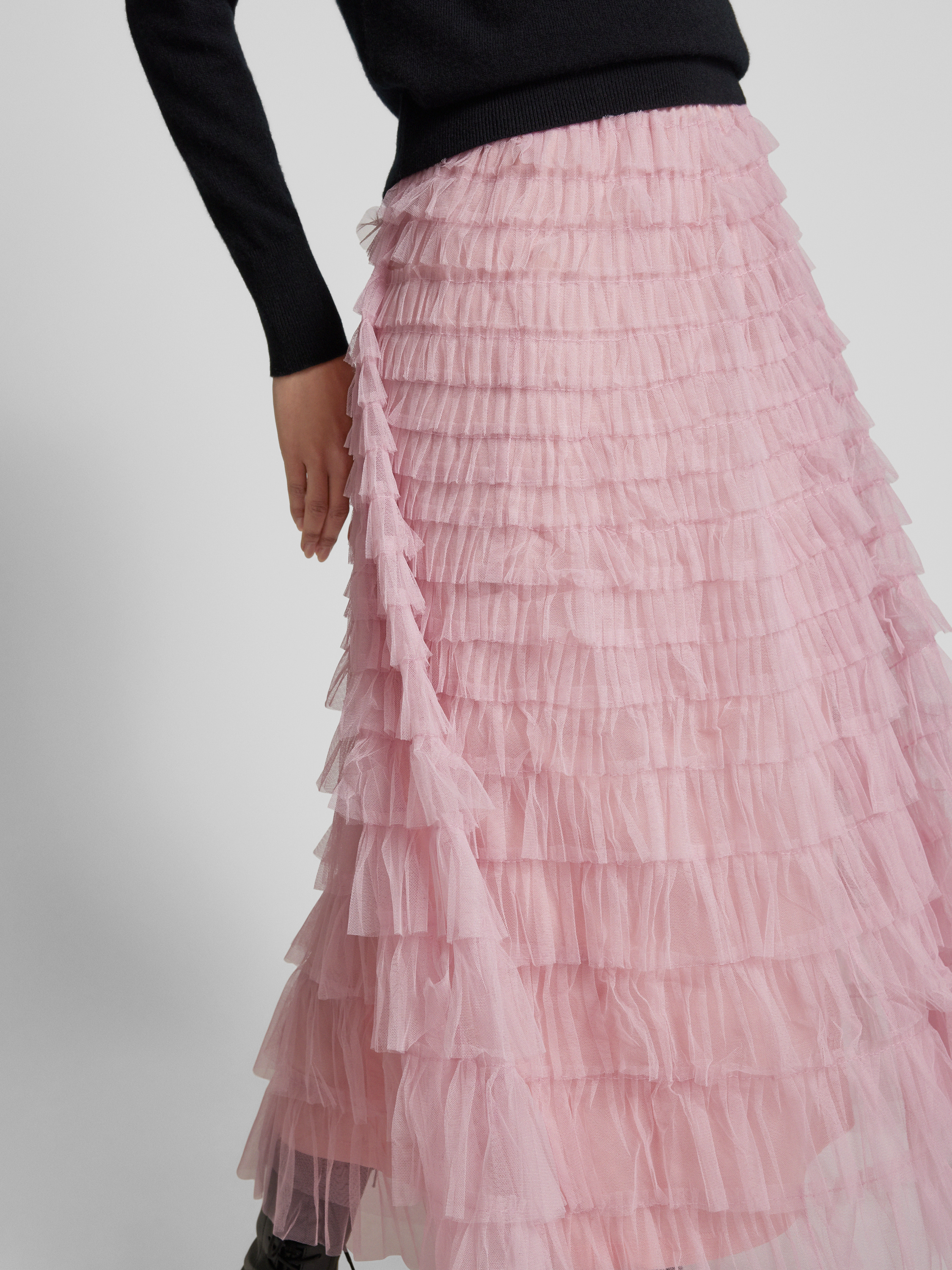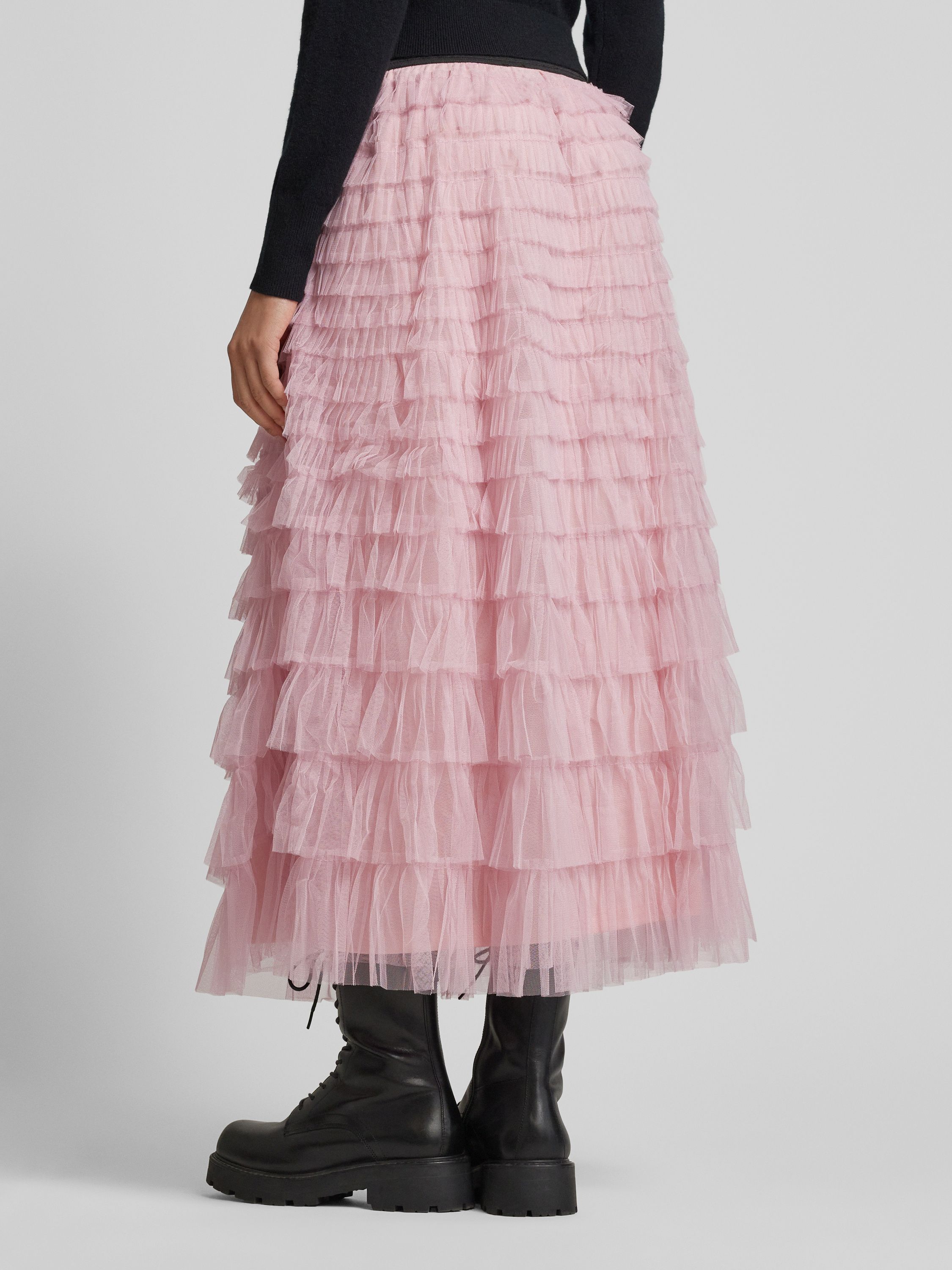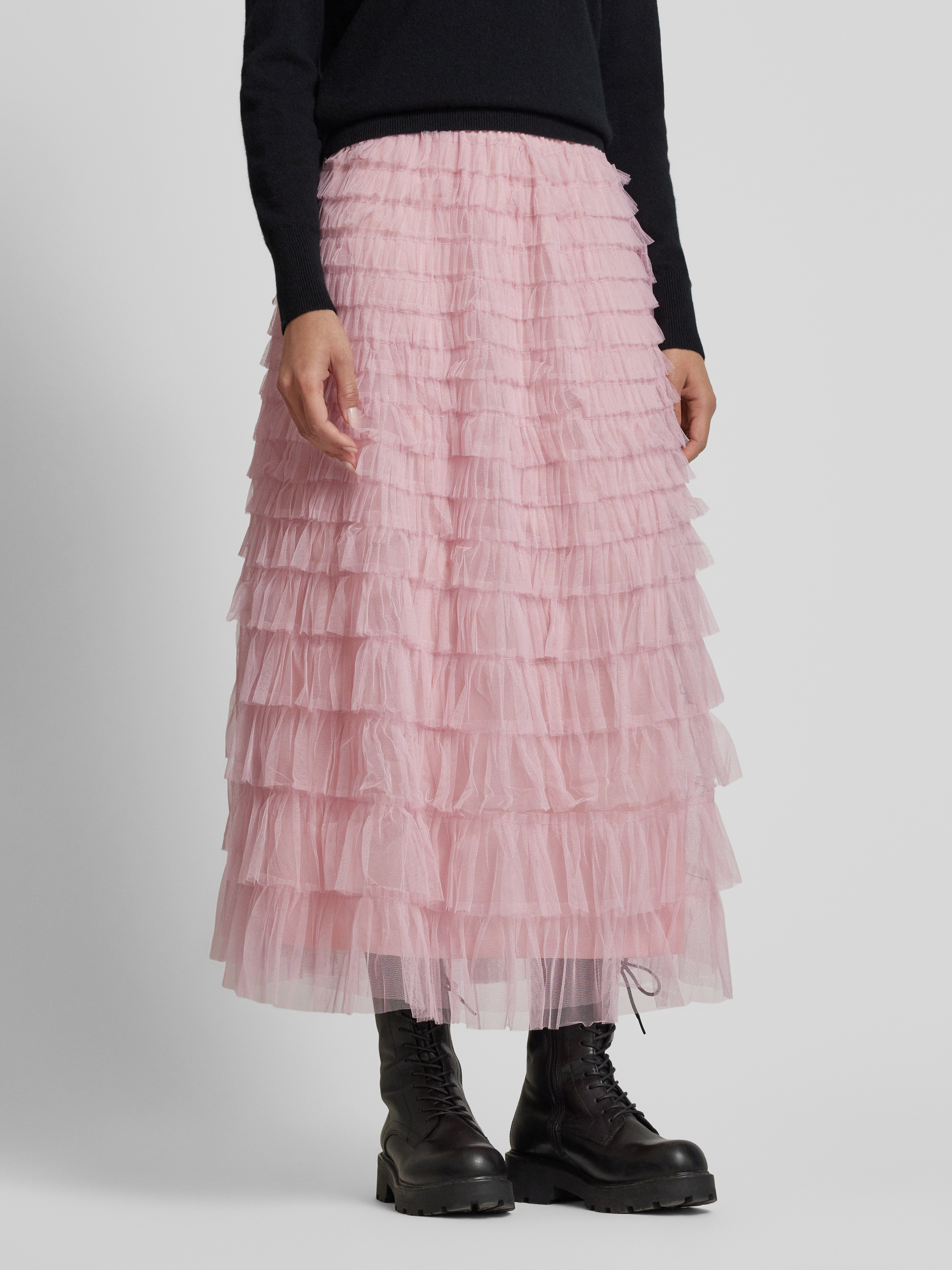 Długa spódnica z warstwowymi falbanami model ‘NAJA’ - różowy