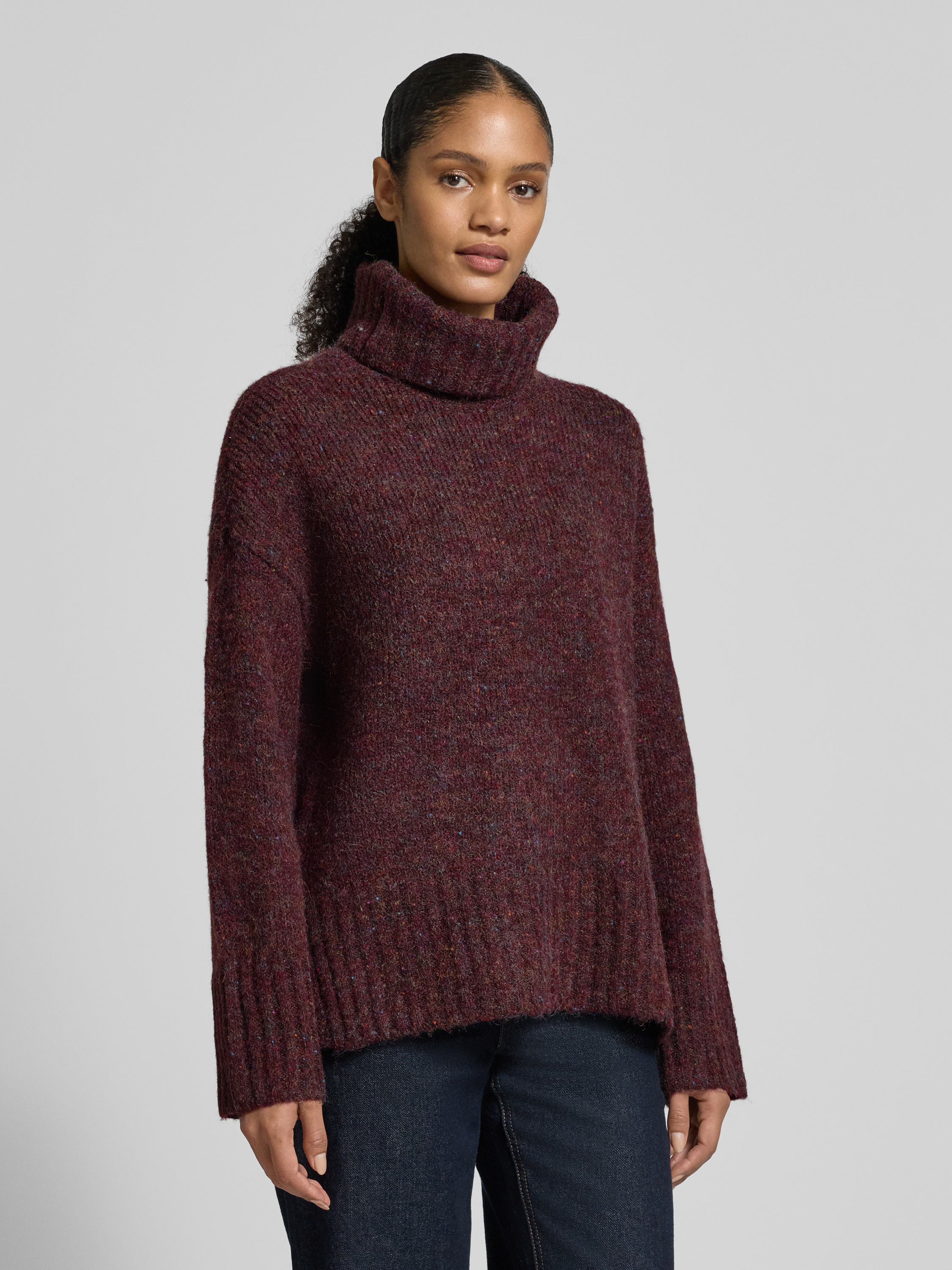 Golf o luźnym kroju z dodatkiem wełny model ‘INGRID’ - bordowy melanż