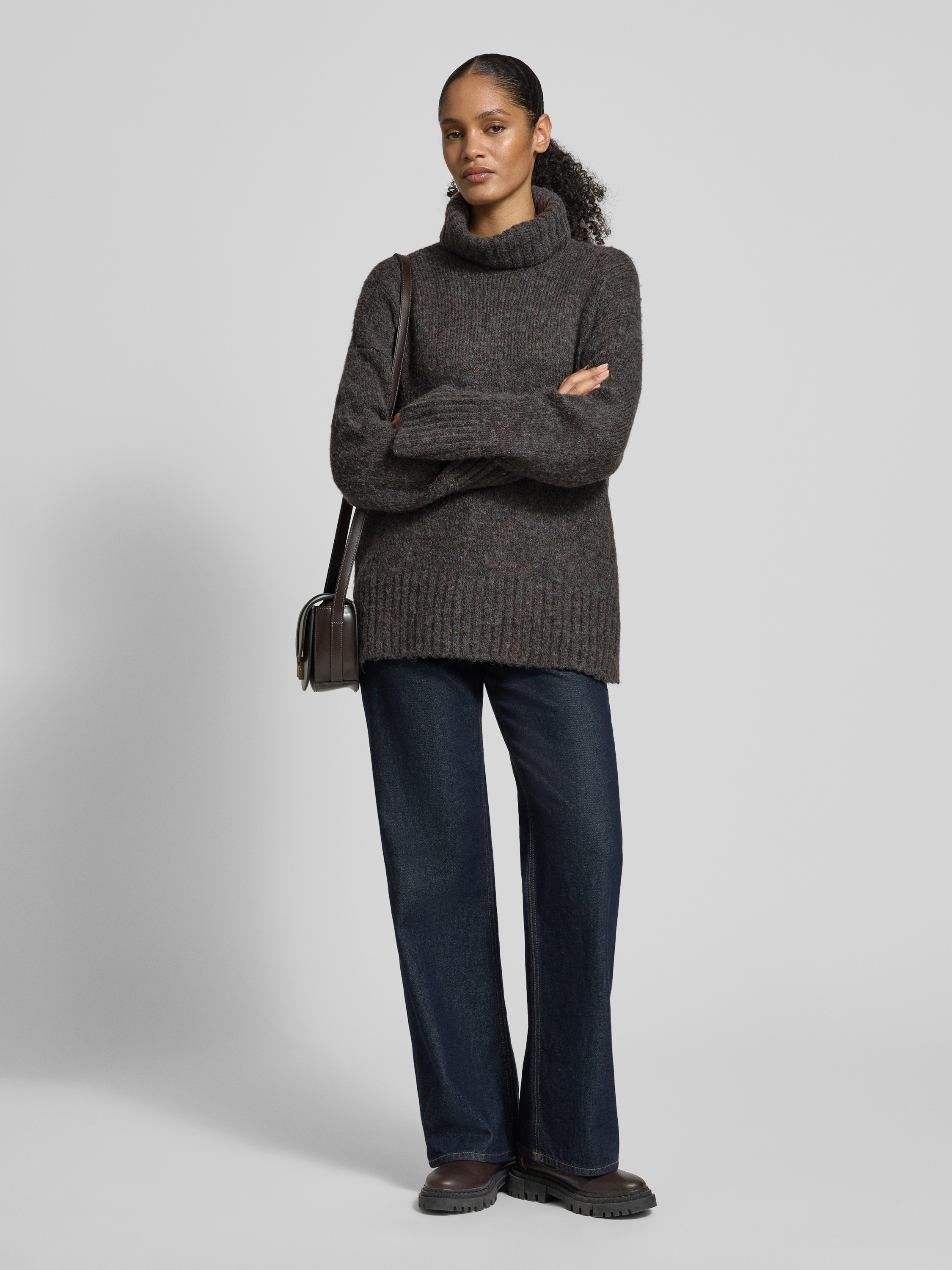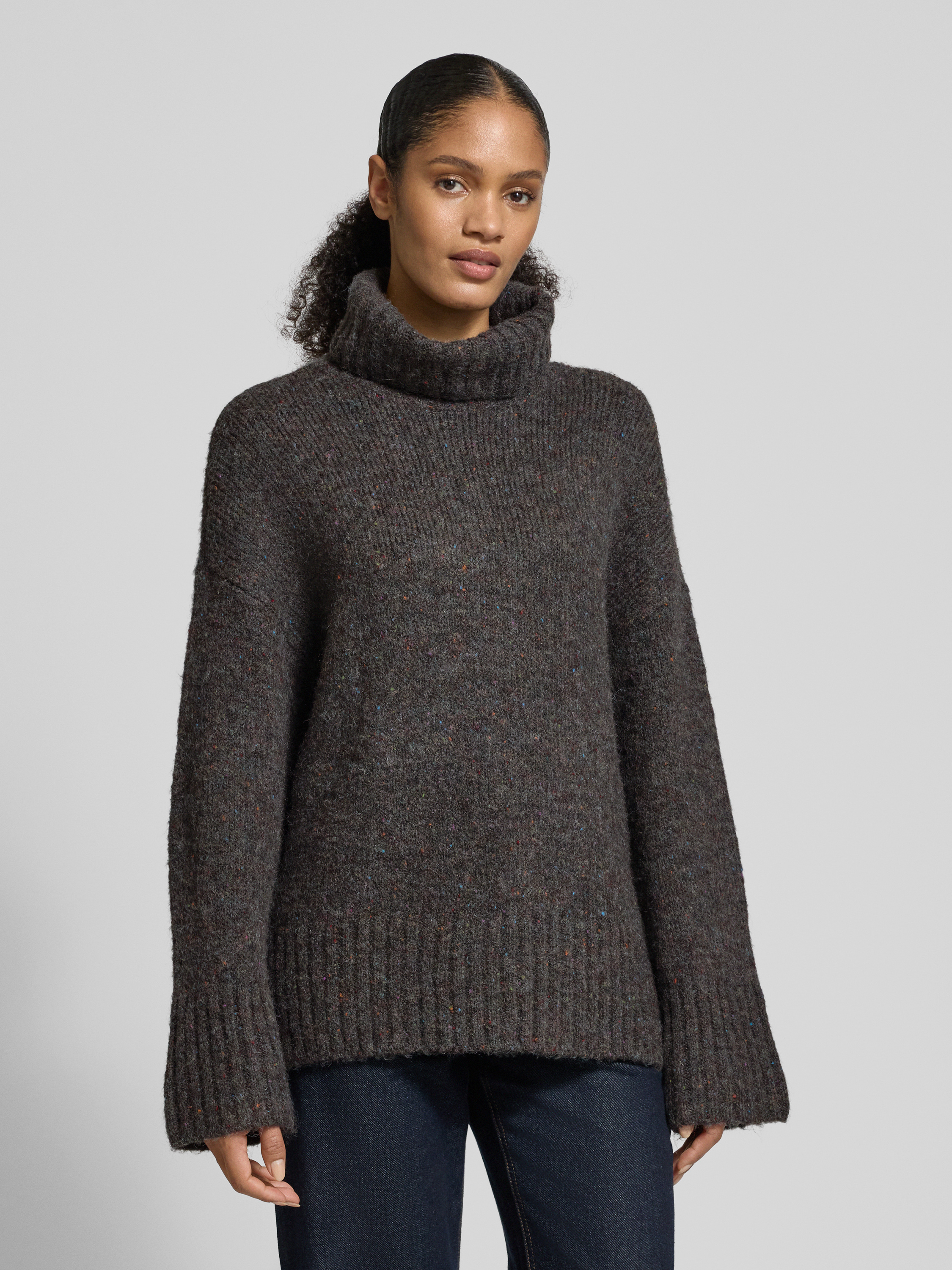 Golf o luźnym kroju z dodatkiem wełny model ‘INGRID’ - ciemnoszary melanż