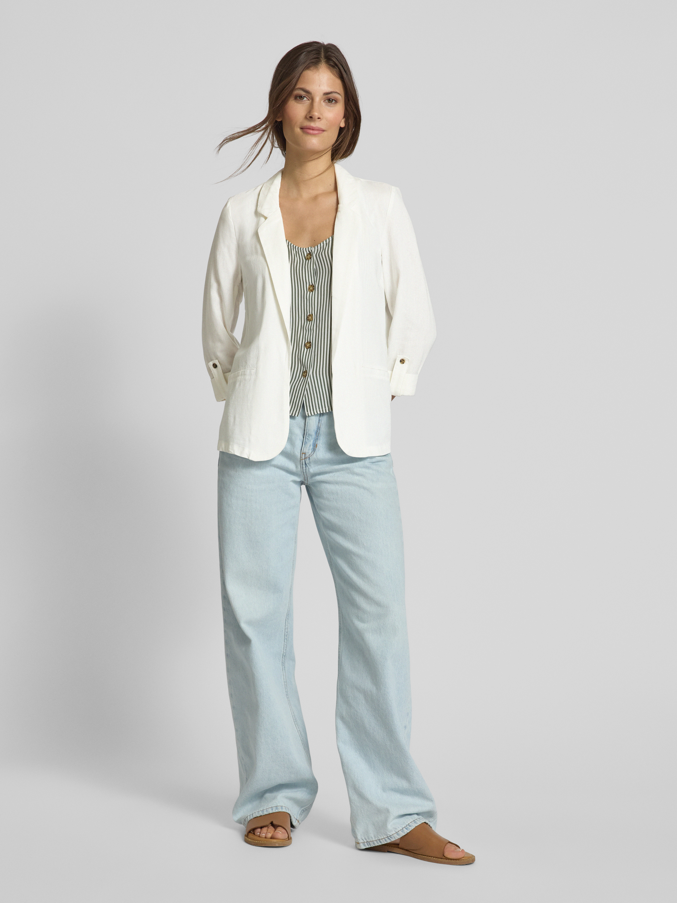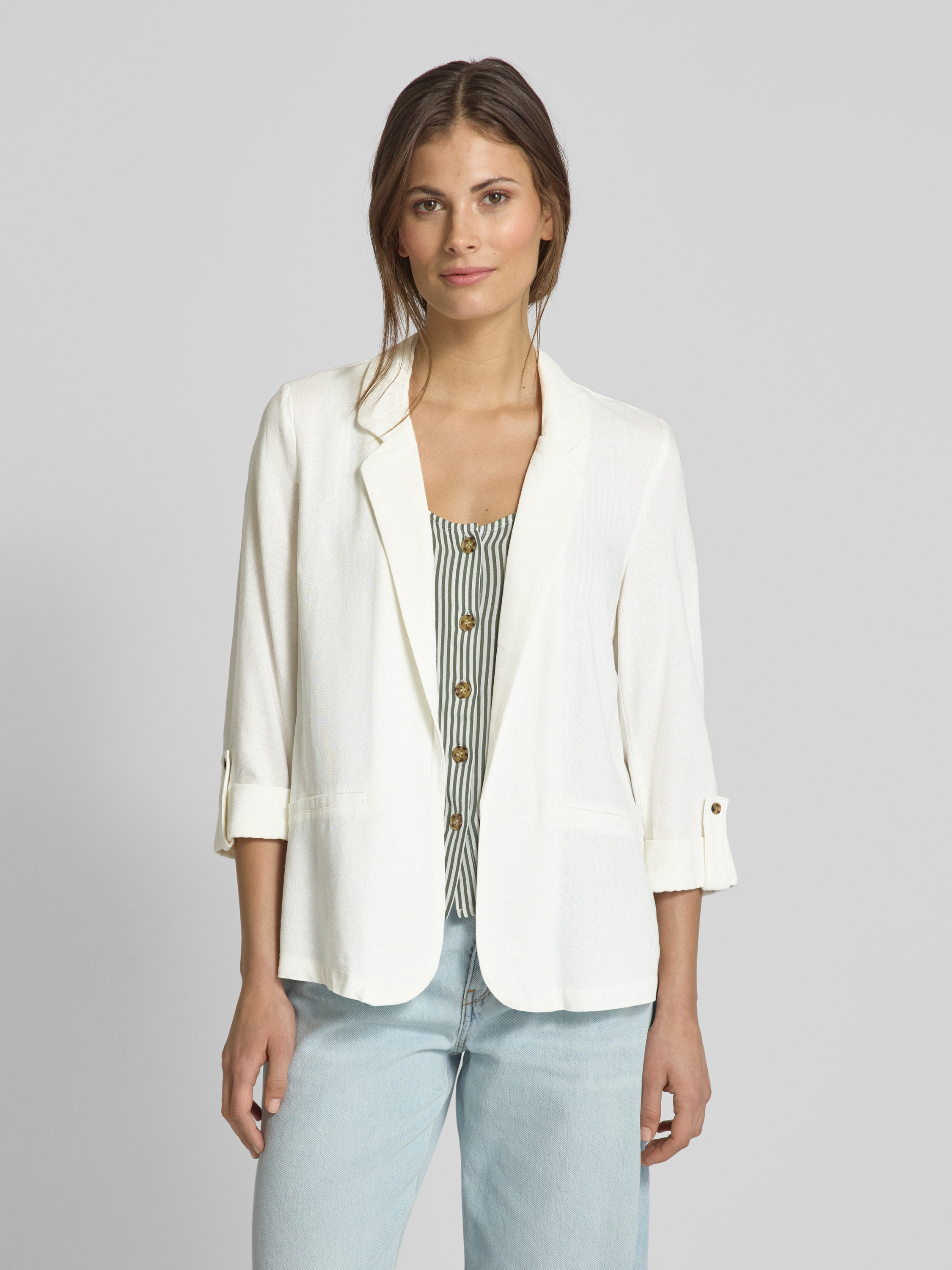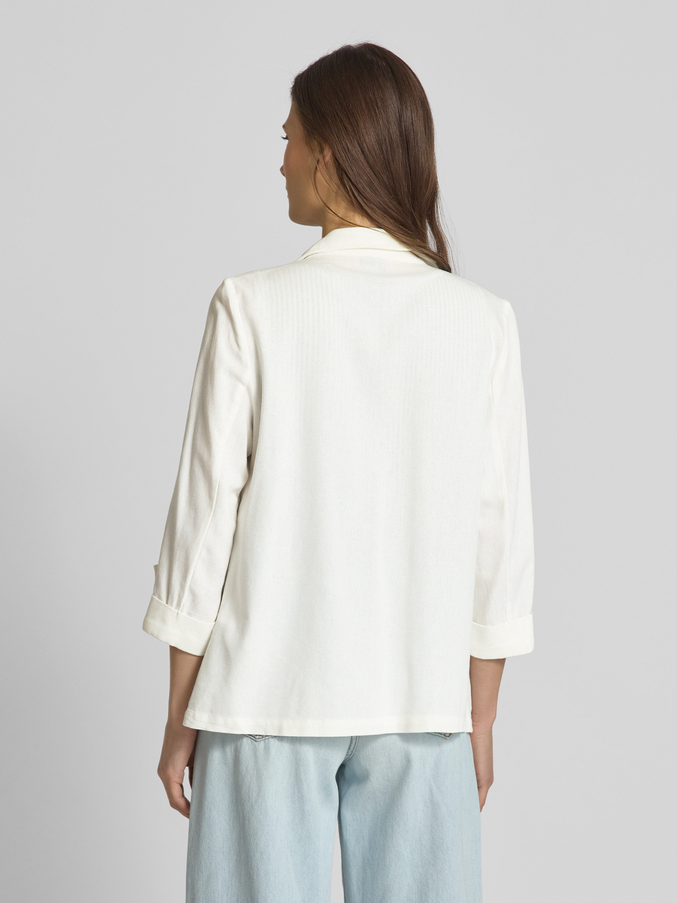 Krótki żakiet o luźnym kroju z mieszanki wiskozy i lnu model ‘JESMILO’ - biały