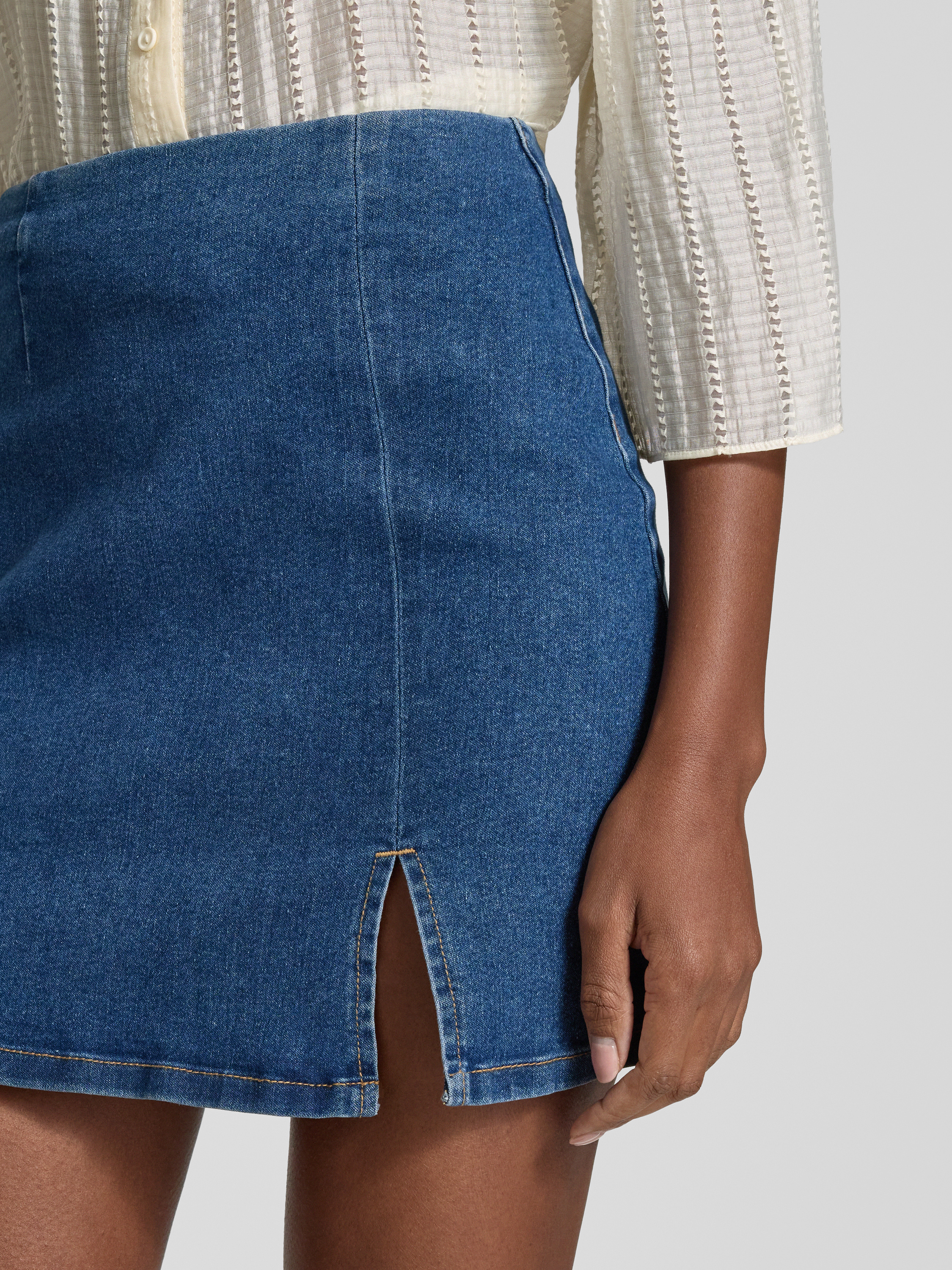 Vero ModaSpódnica jeansowa o dopasowanym kroju z rozcięciem z przodu model ‘NELLY’ - ciemnoniebieski