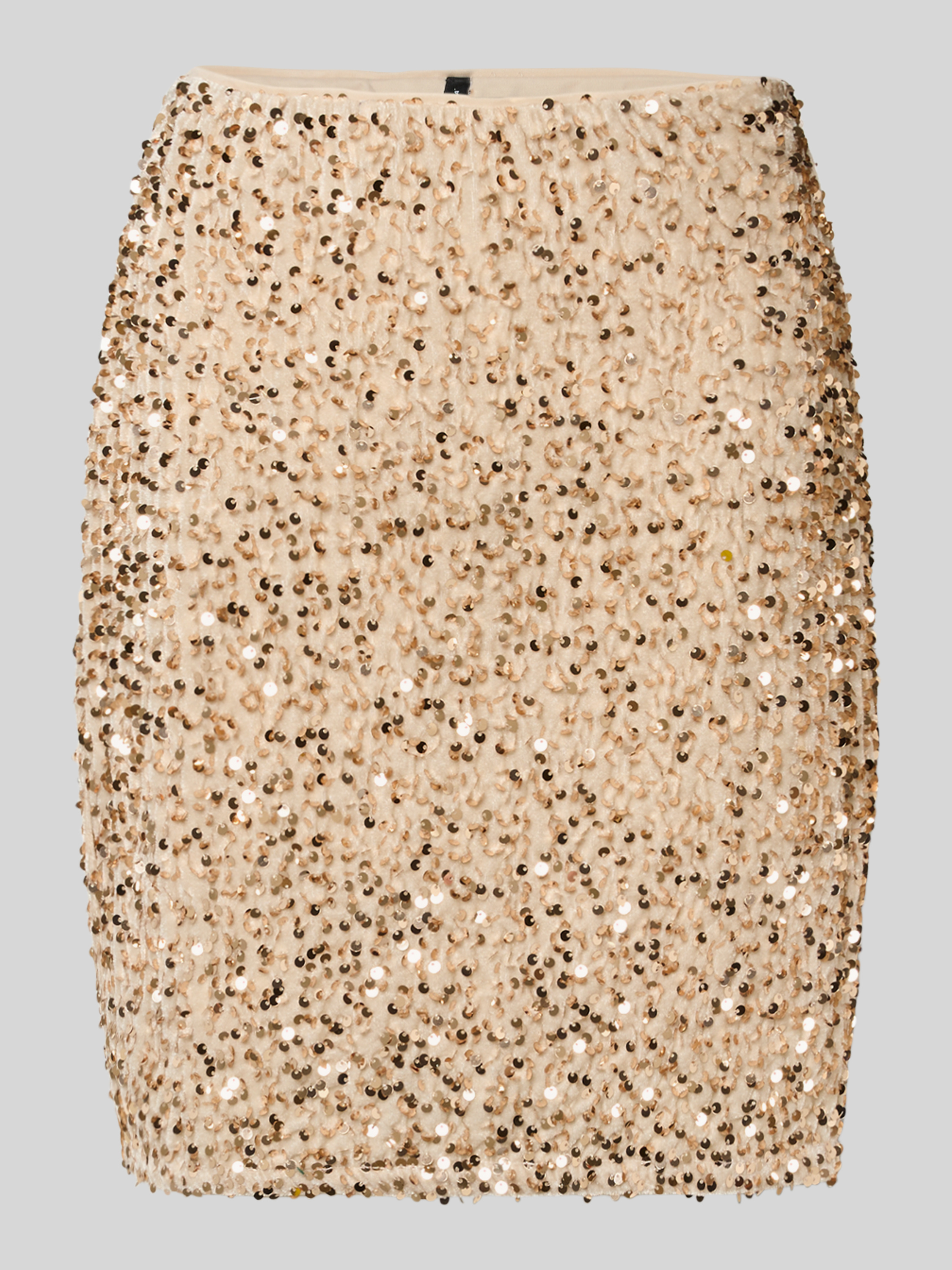 Spódnica mini o lekko rozkloszowanym kroju z cekinowym obszyciem model ‘BELLA’ - piaskowy