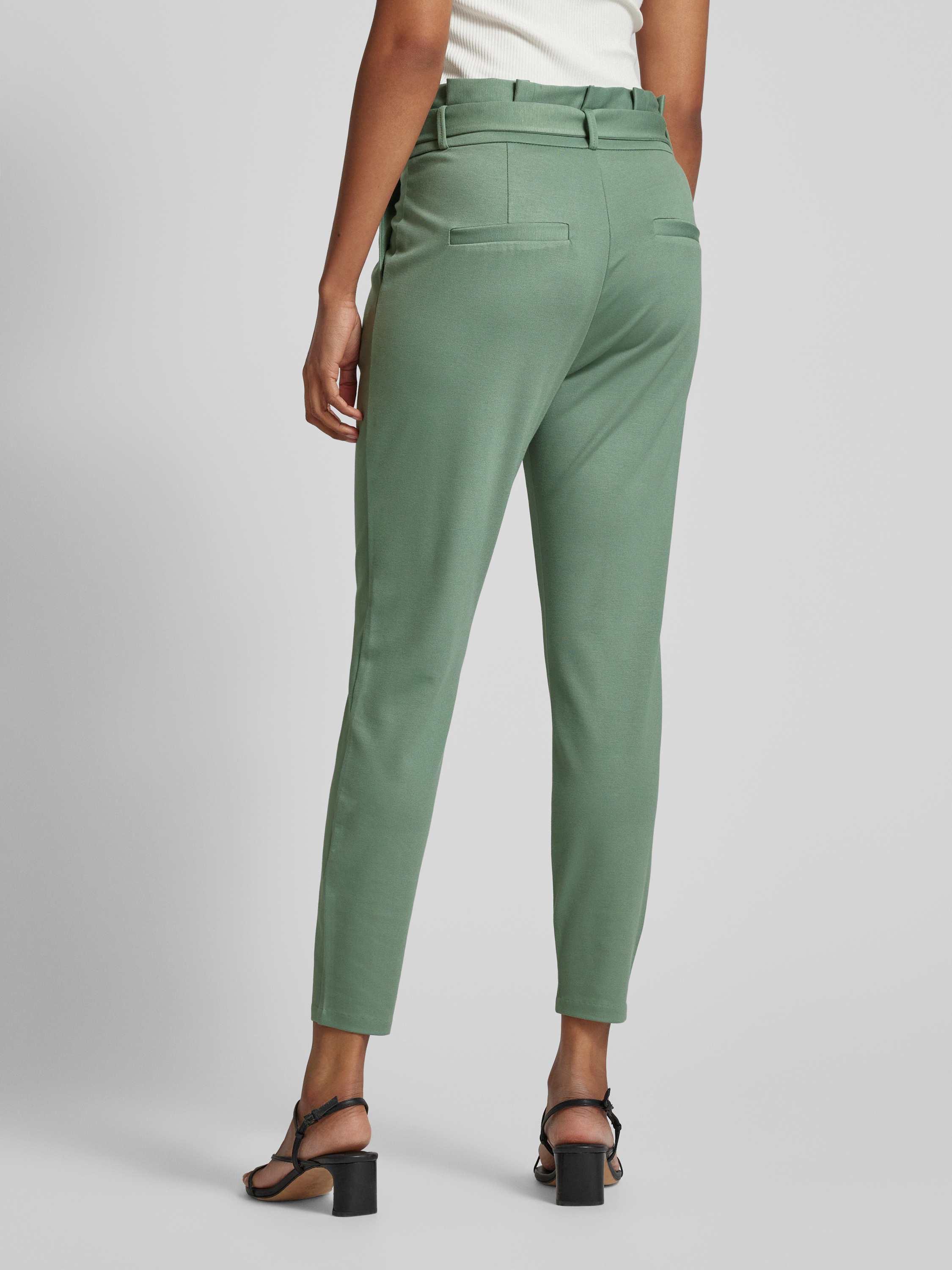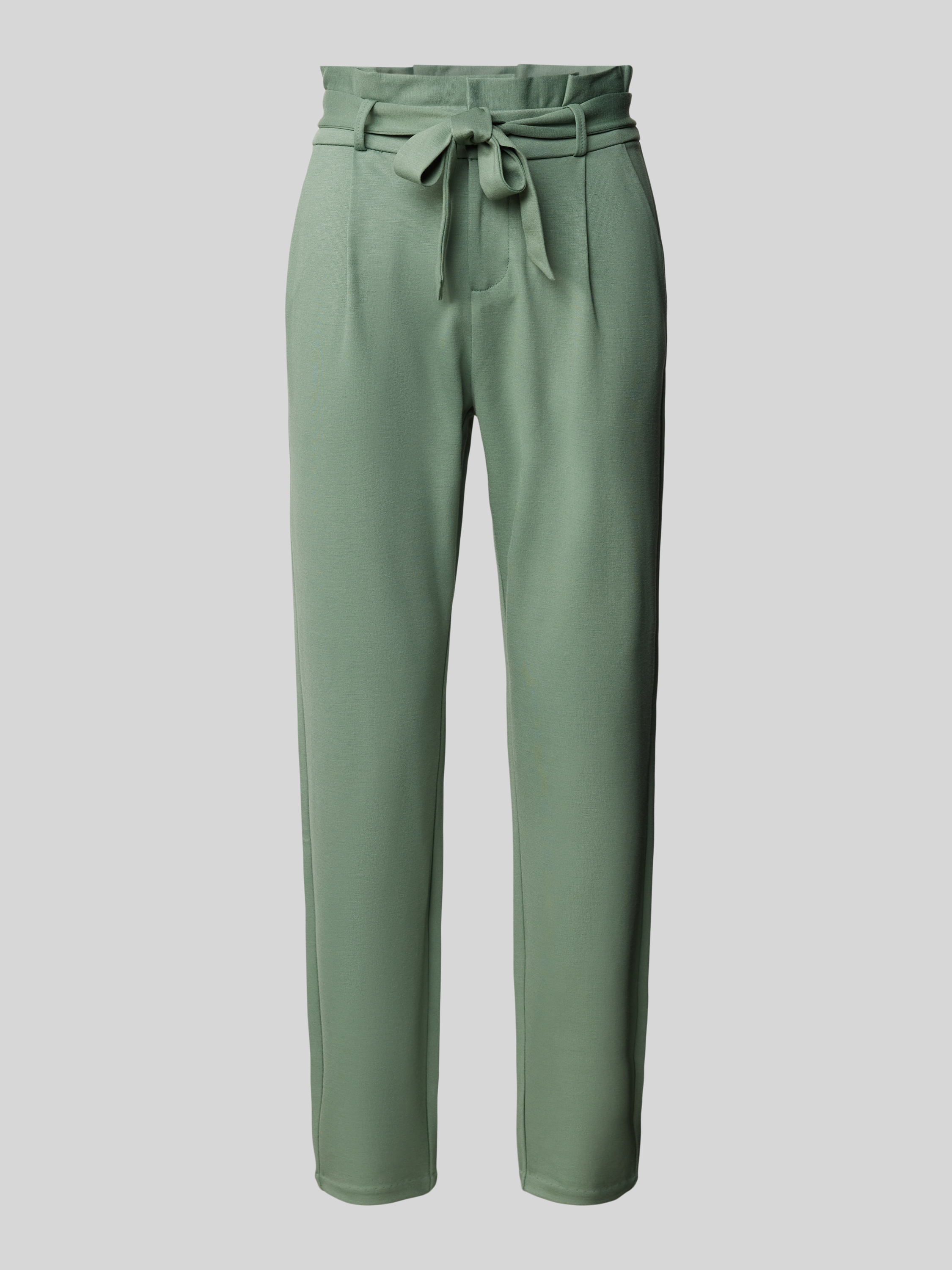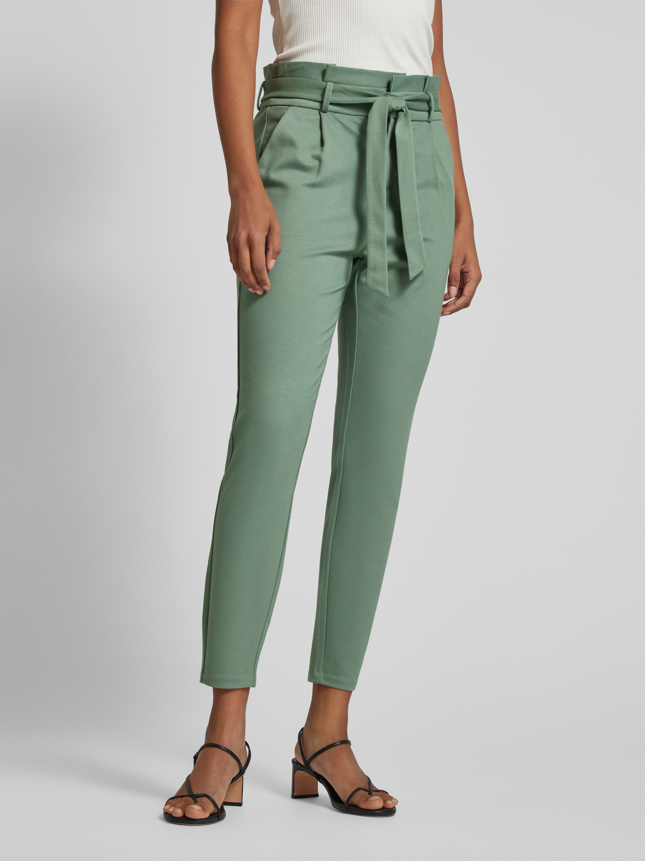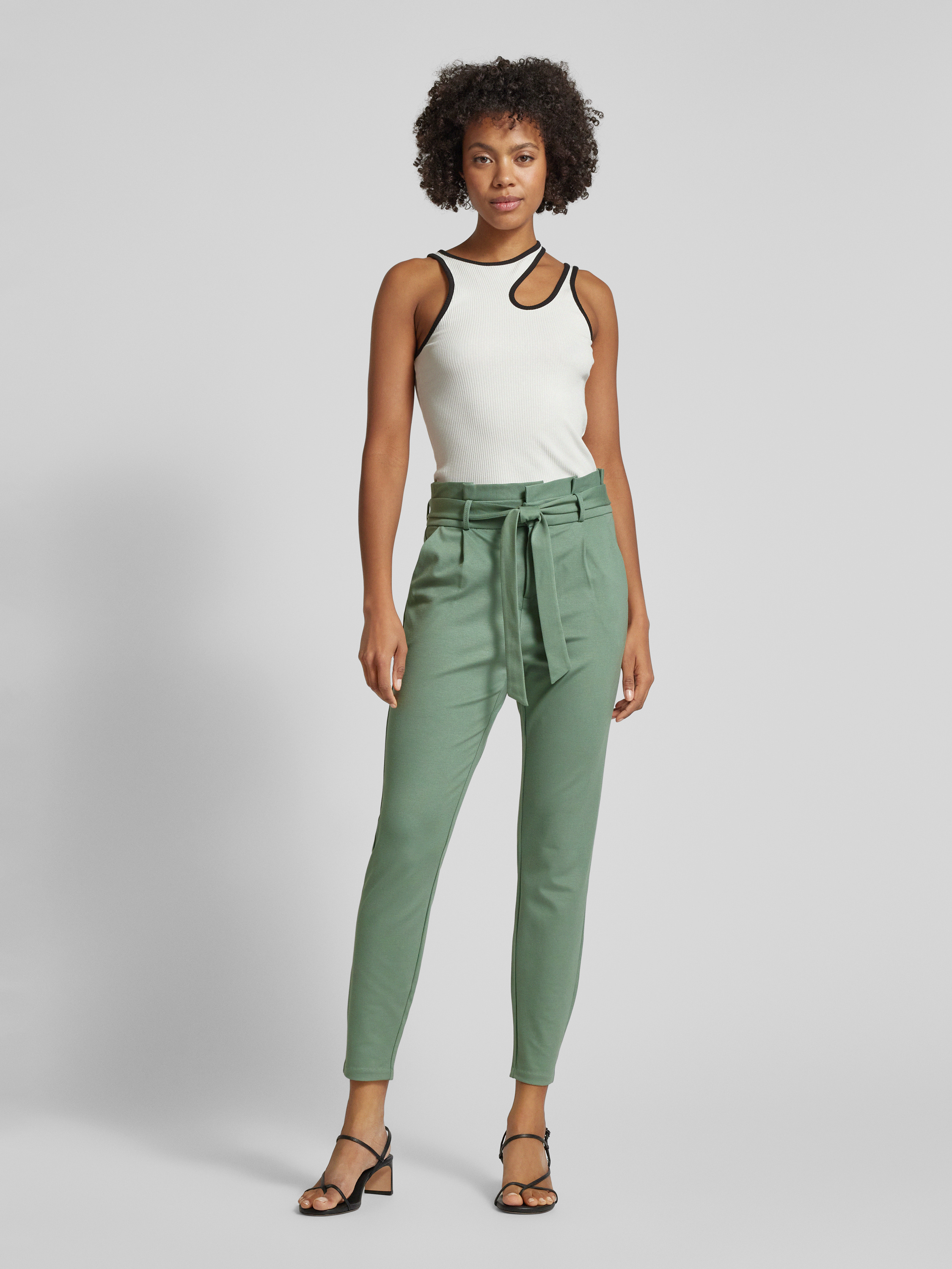 Spodnie materiałowe o kroju tapered fit z wiązanym paskiem model ‘EVA’ - oliwkowy