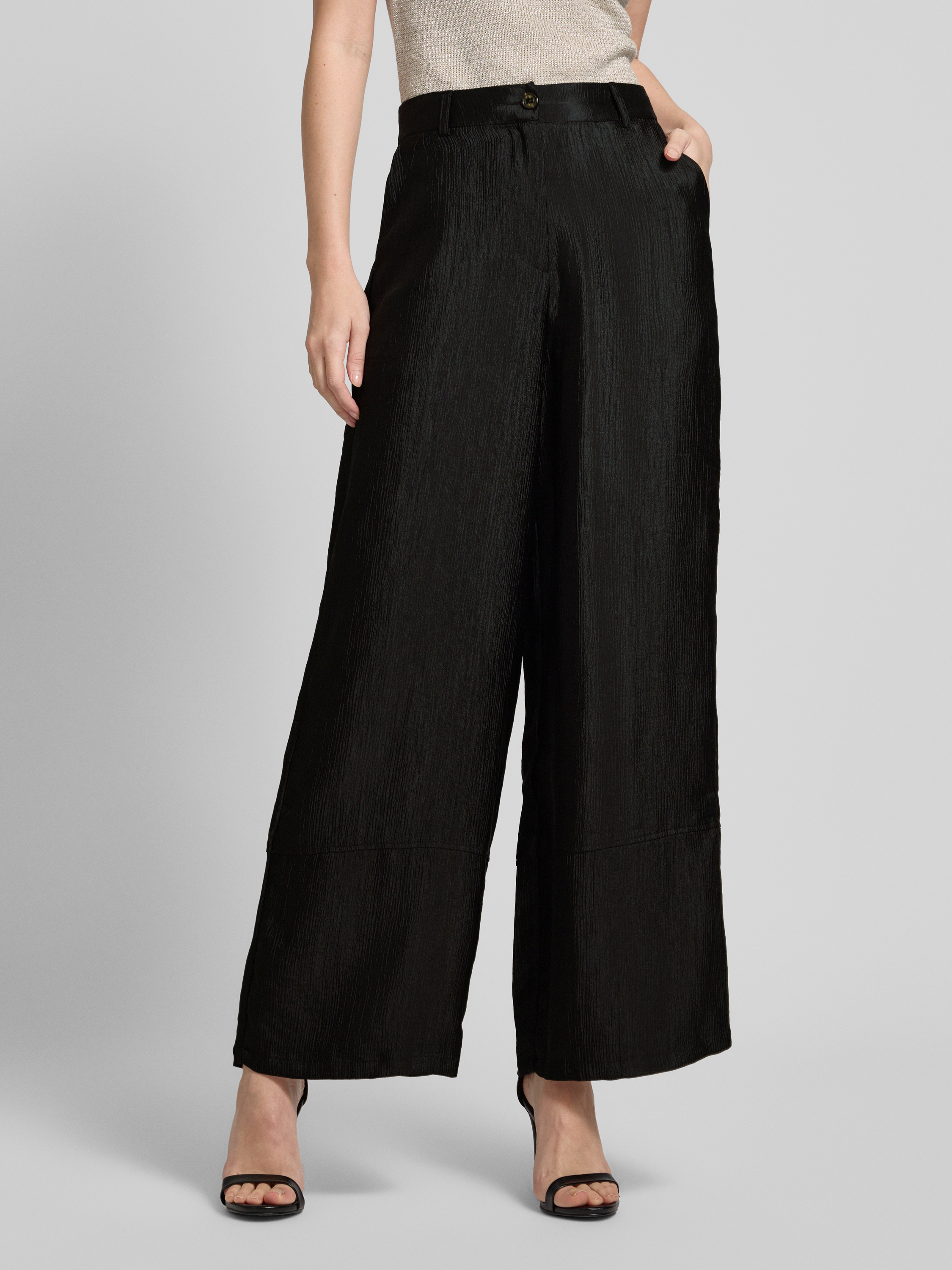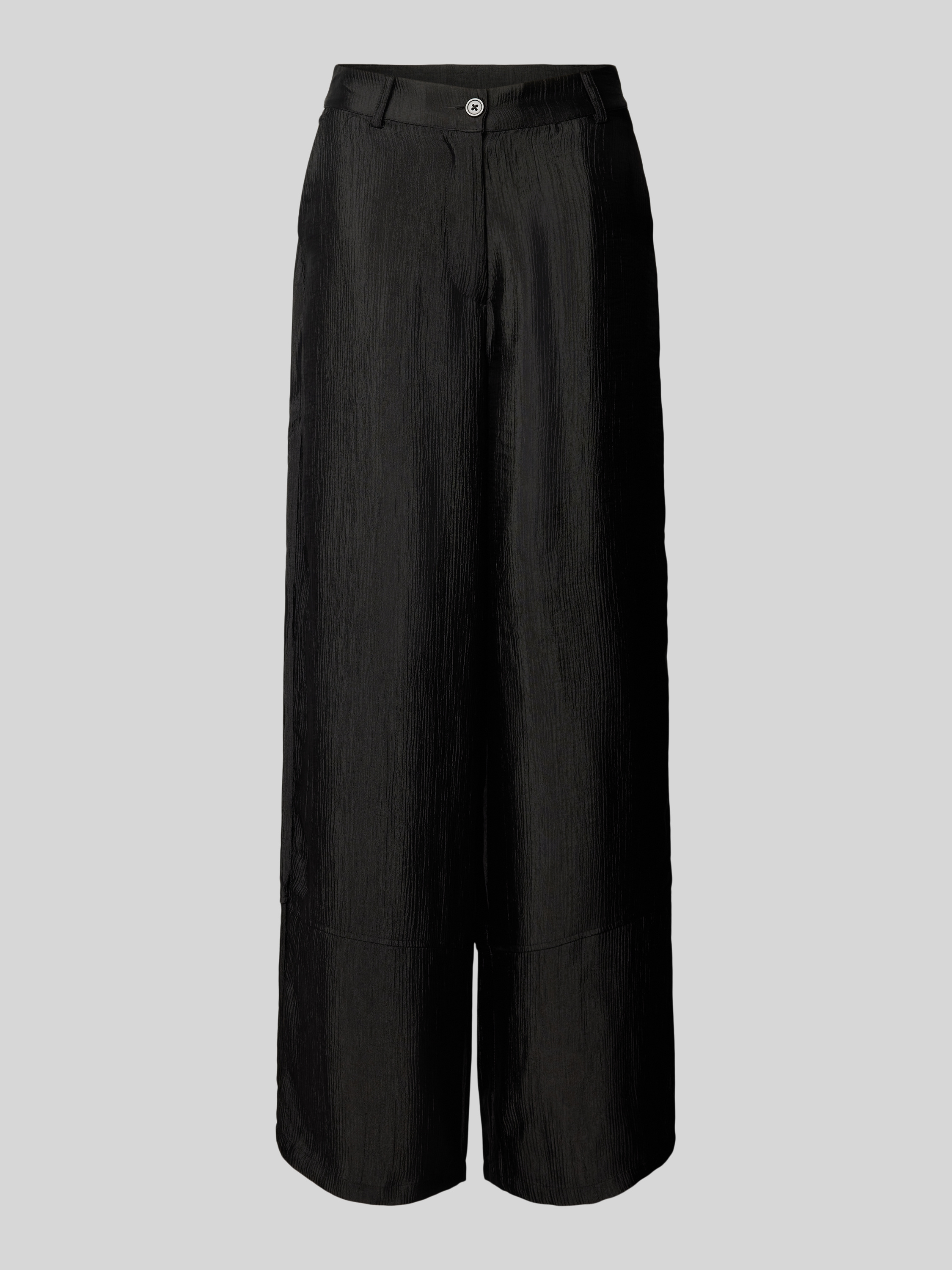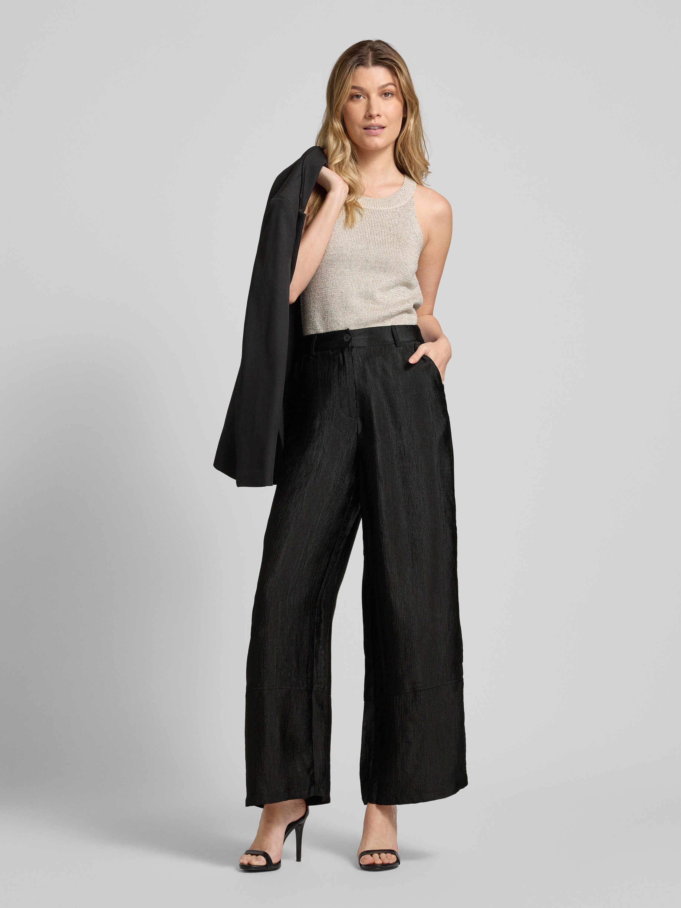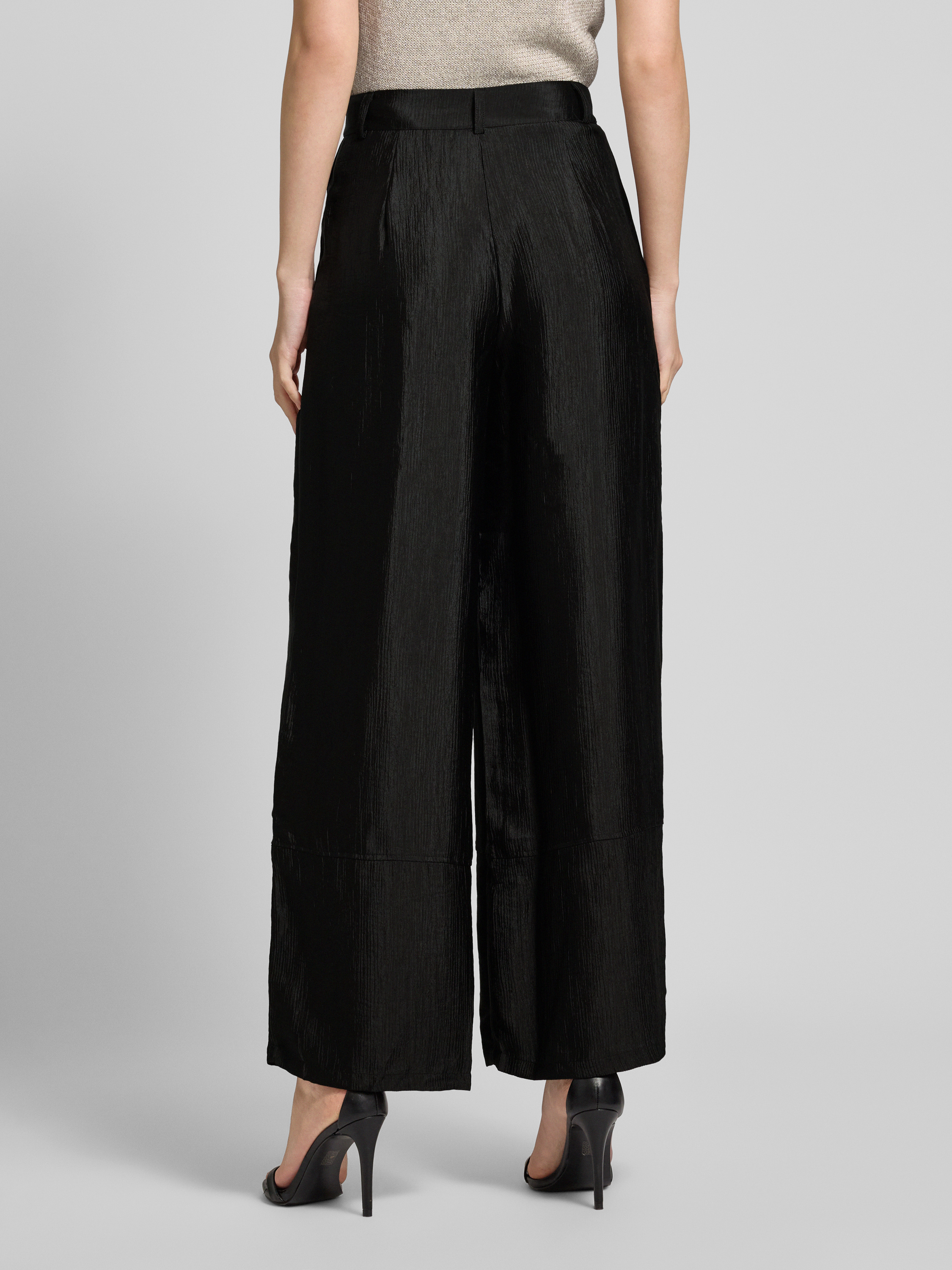 Spodnie o kroju relaxed fit z szeroką nogawką z lejącej mieszanki wiskozy model ‘RAQUEL’ - czarny