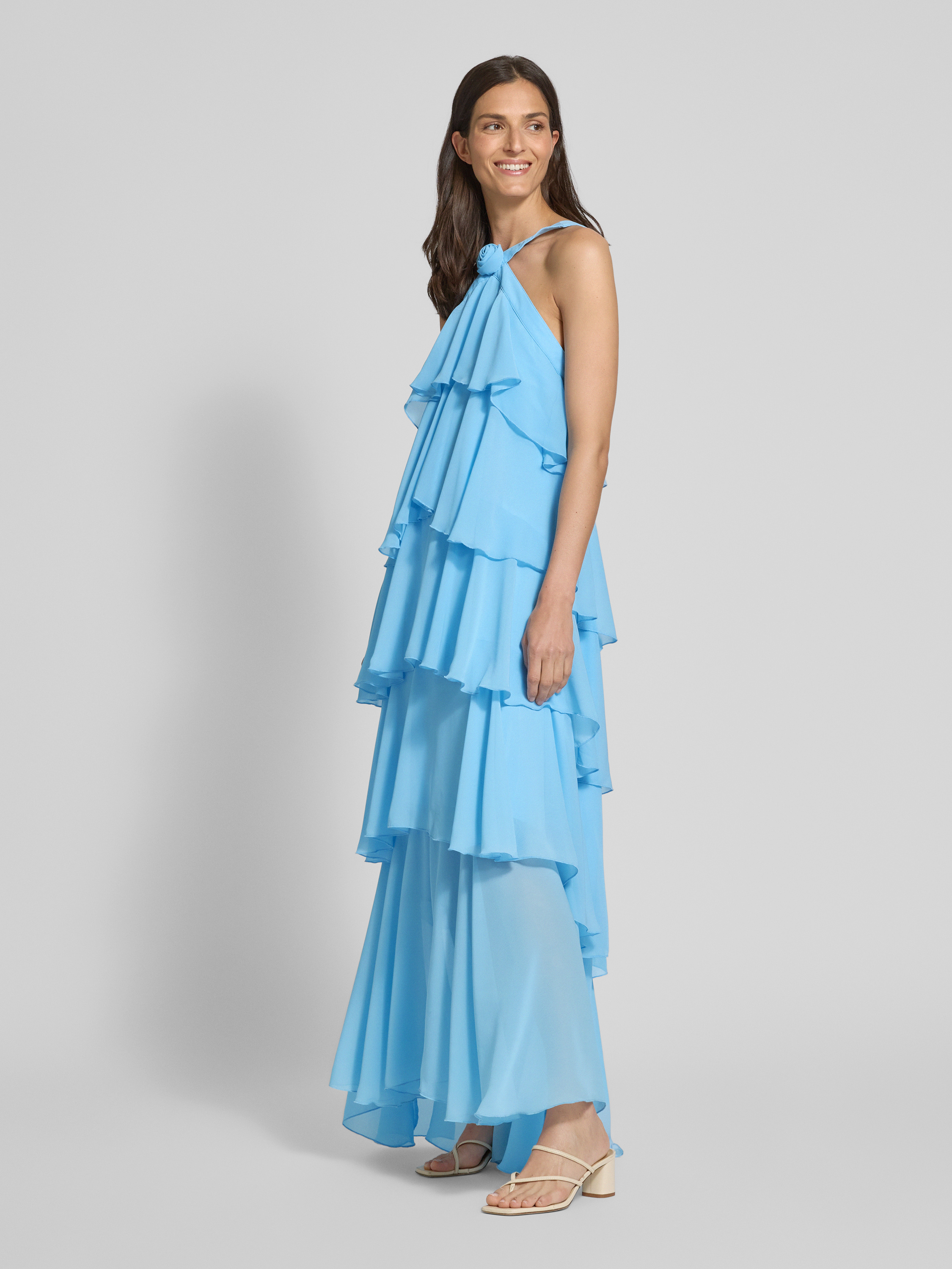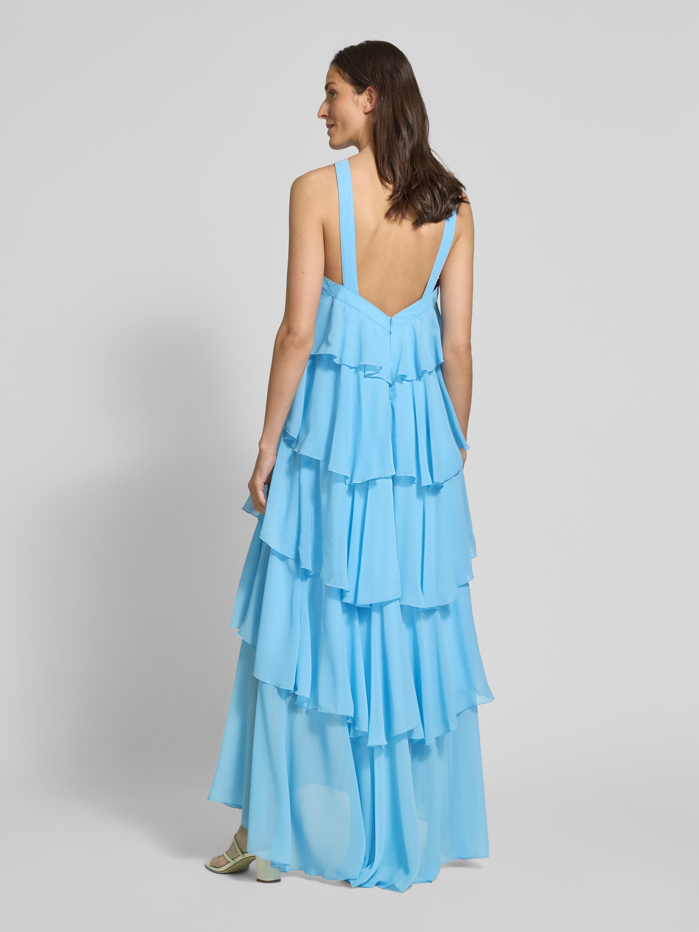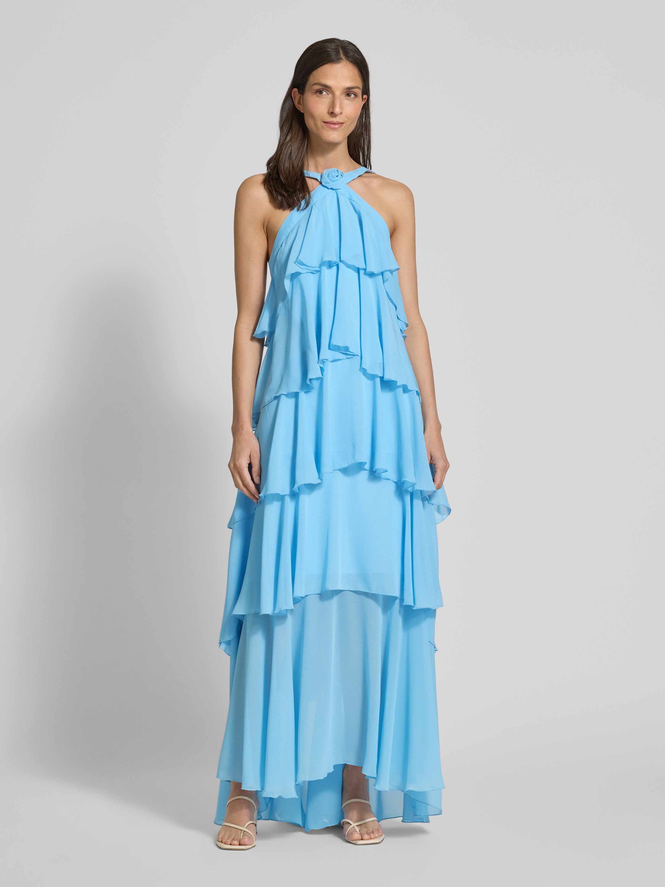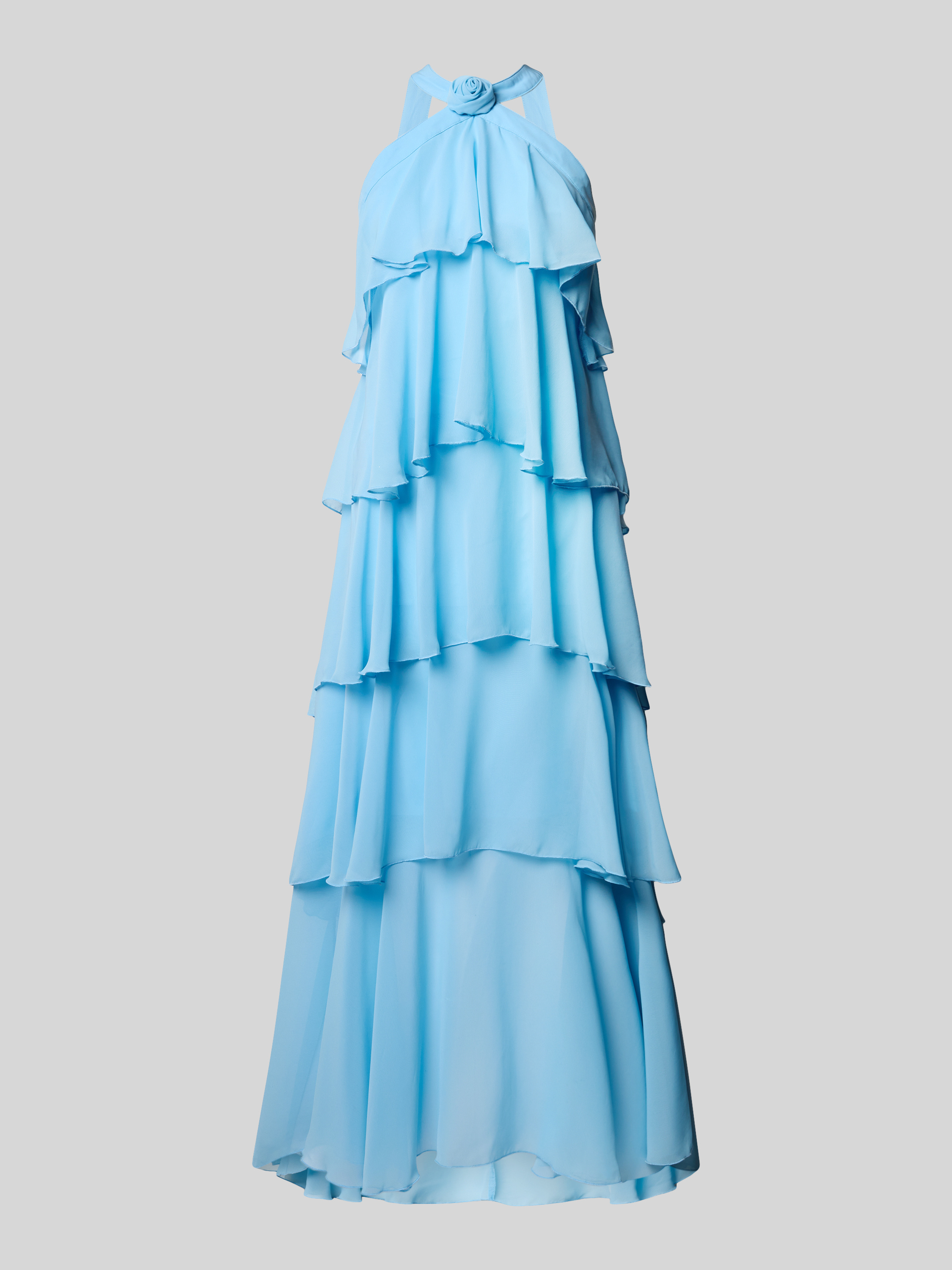 Sukienka wieczorowa o linii A z głębokim dekoltem na plecach model ‘FELICIA’ - jasnoniebieski