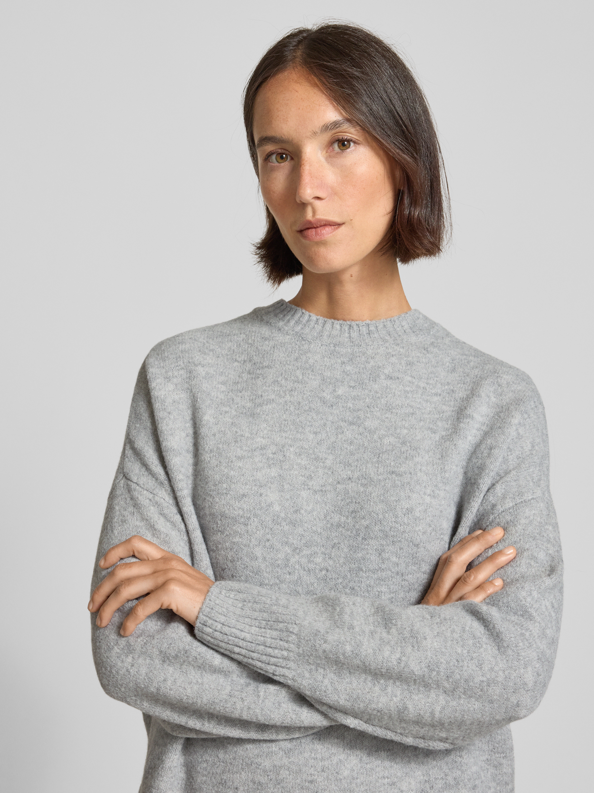 Sweter o kroju relaxed fit z dodatkiem wełny model ‘BOOM’ - jasnoszary