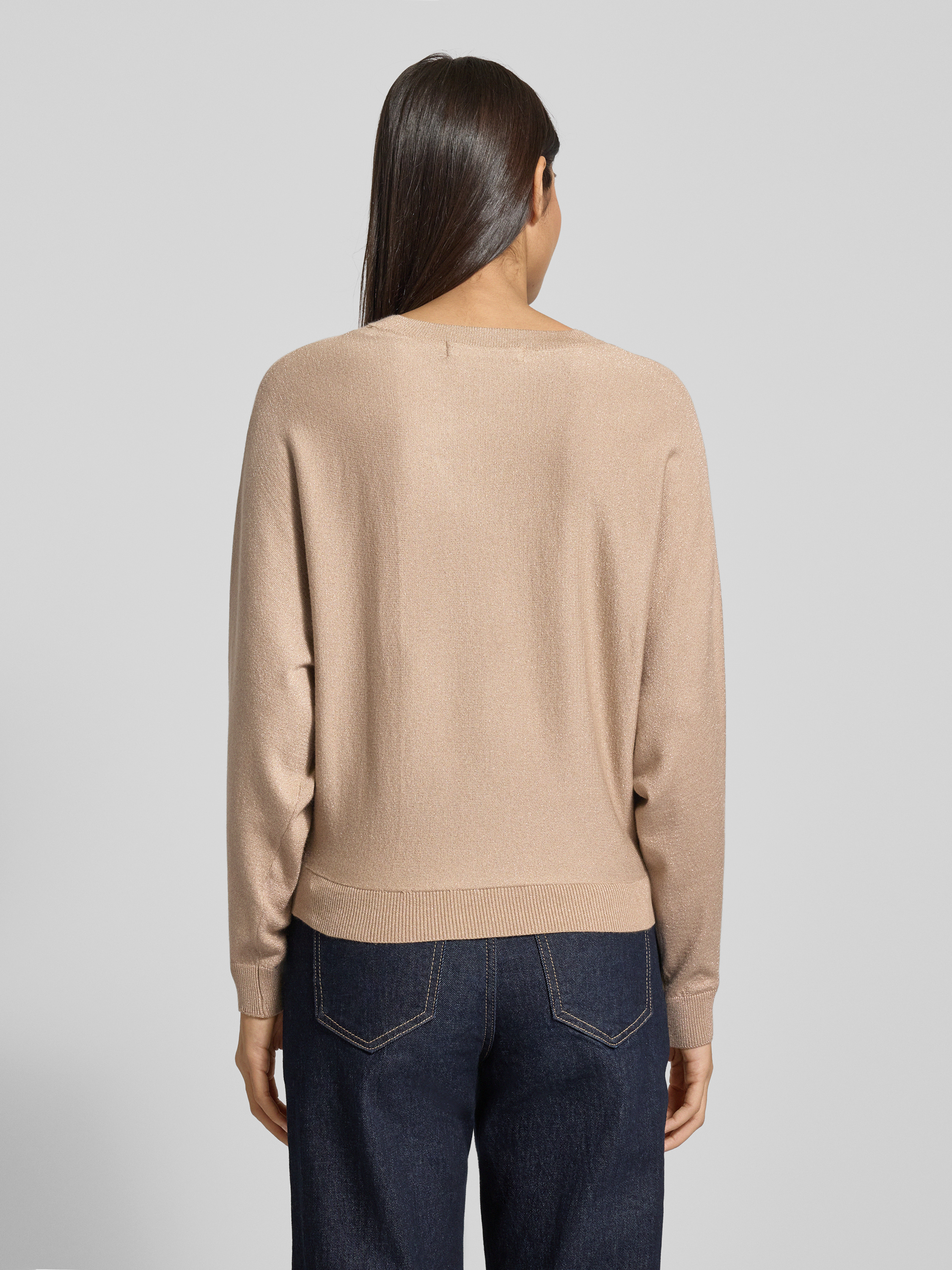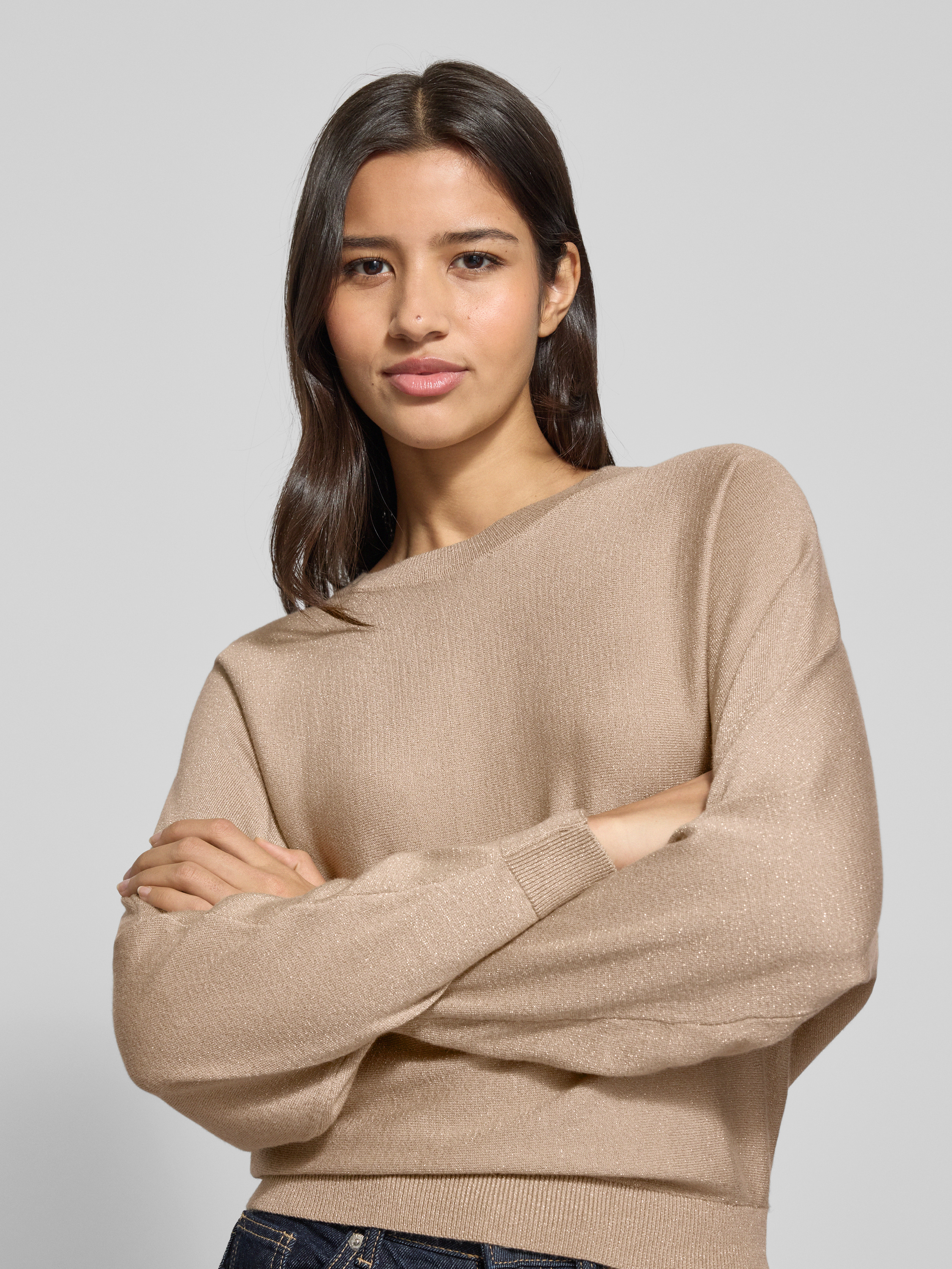 Sweter o kroju relaxed fit z dzianiny z mieszanki wiskozy model ‘HAPPYGLITTER’ - beżowy