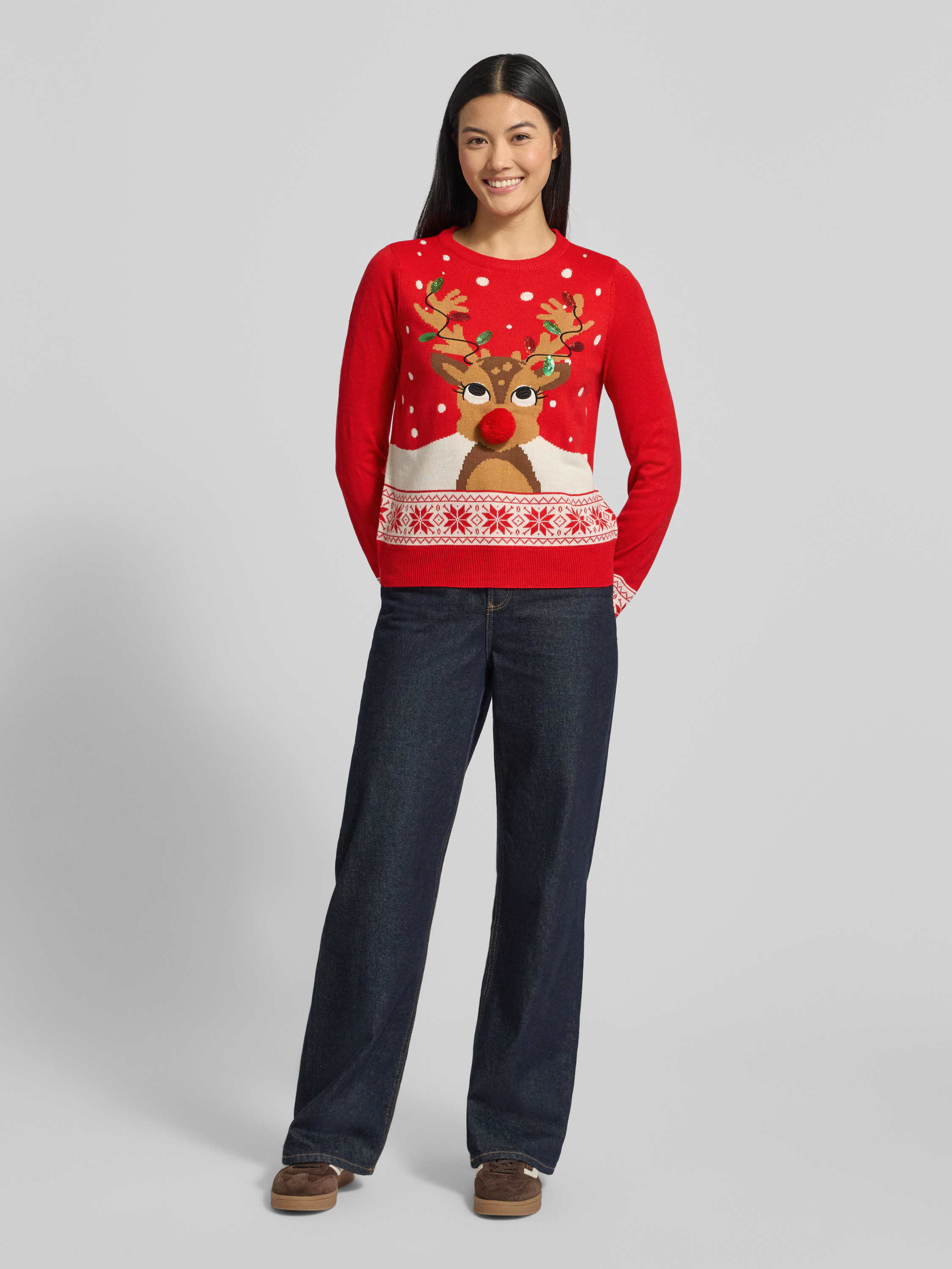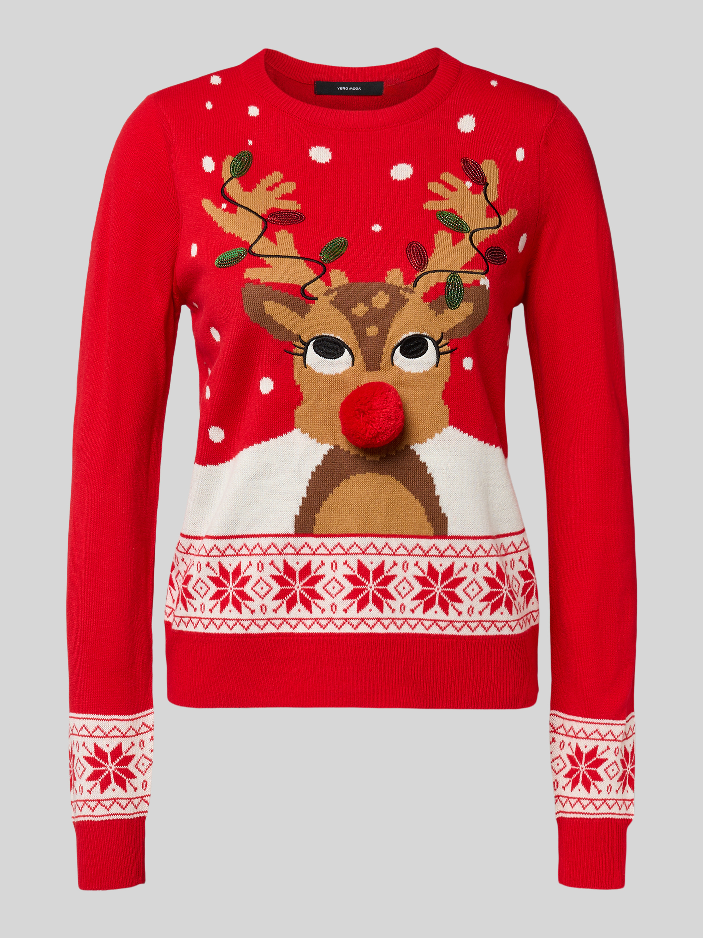 Sweter świąteczny o kroju regular fit z pomponem model ‘FROSTYDEER’ - czerwony