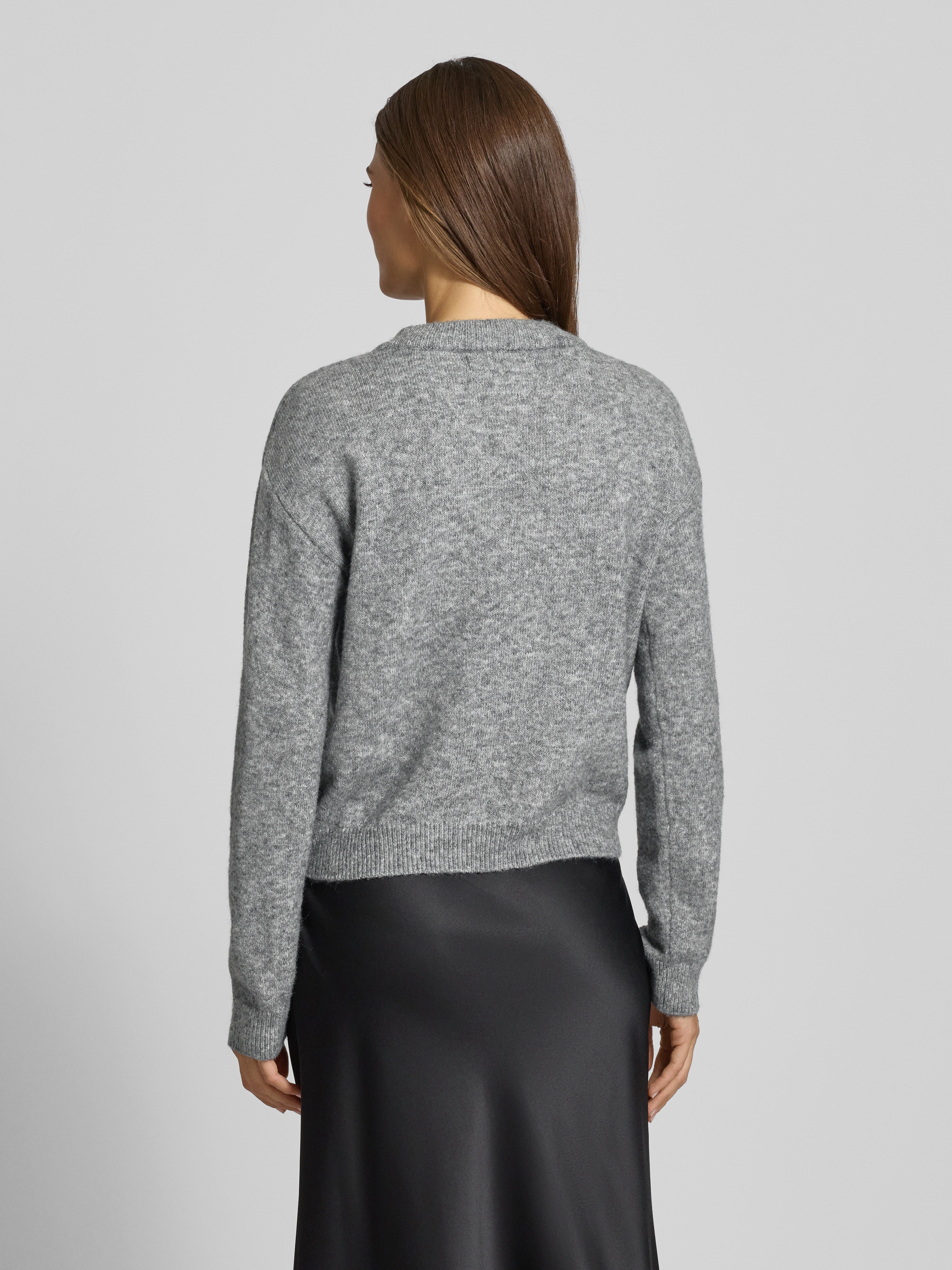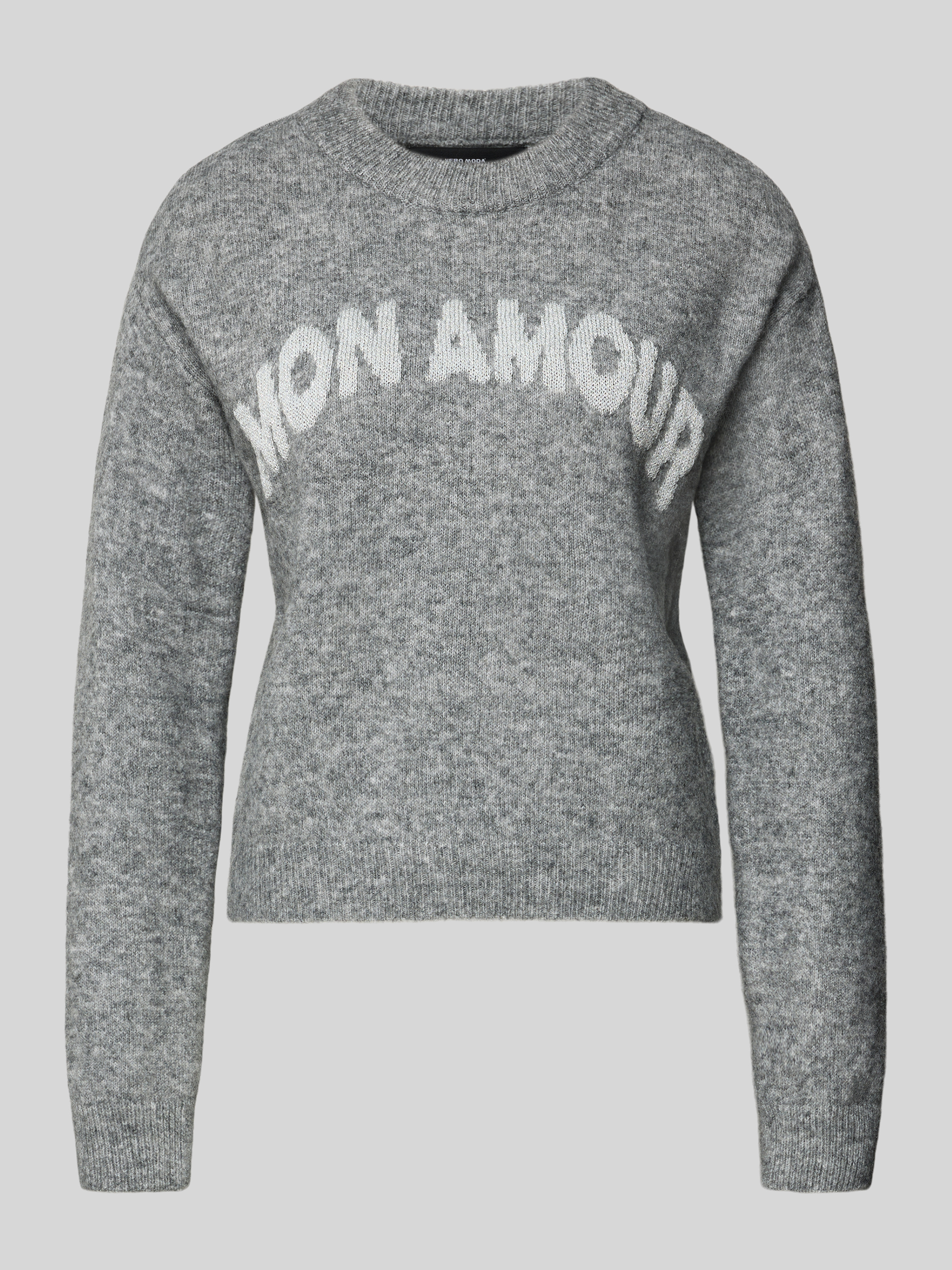 Sweter z dzianiny o kroju regular fit z dodatkiem wiskozy model ‘AMOREMIO’ - średnioszary melanż