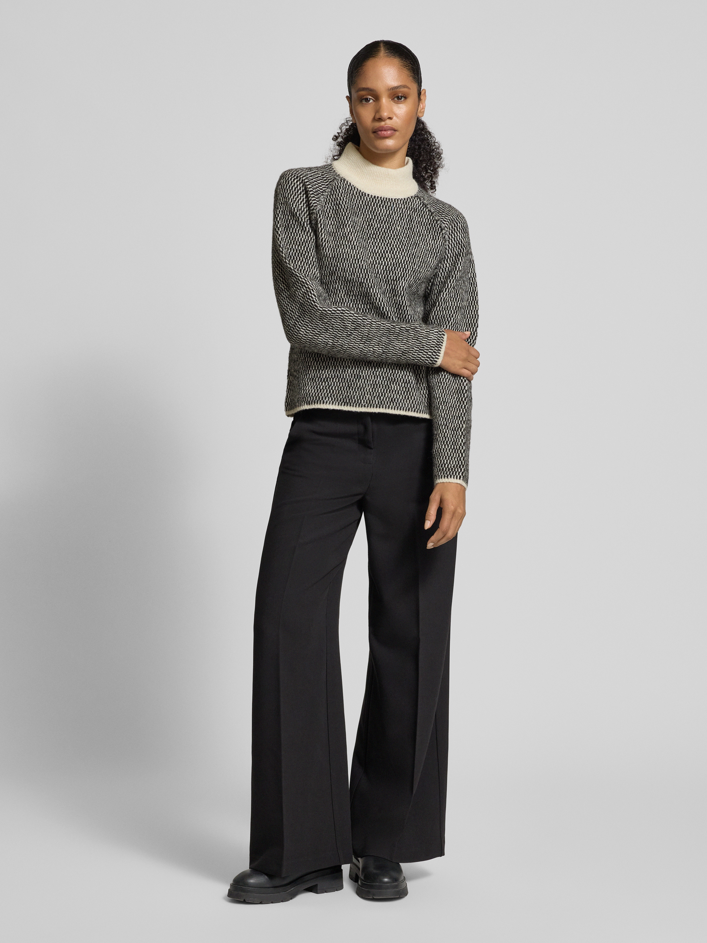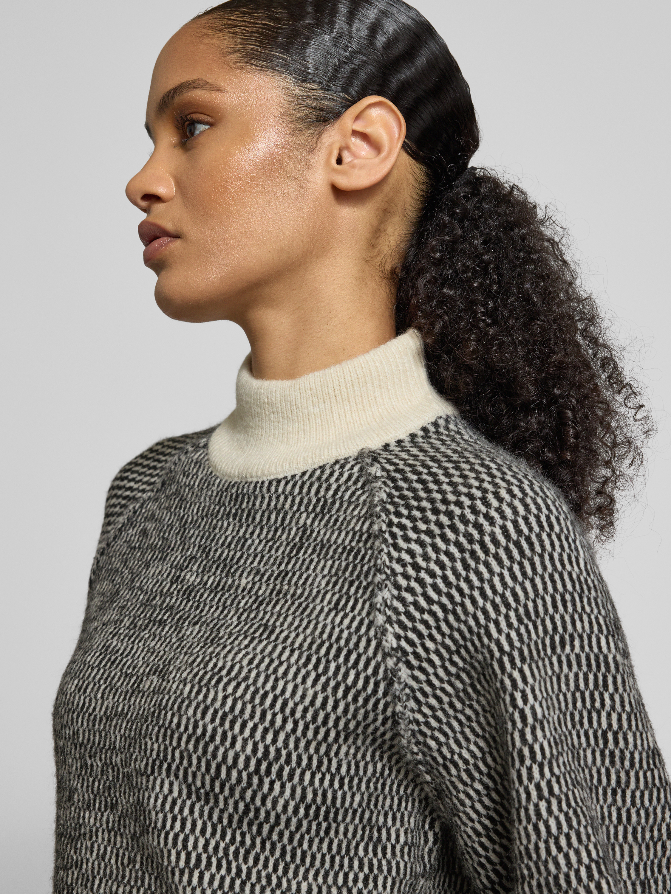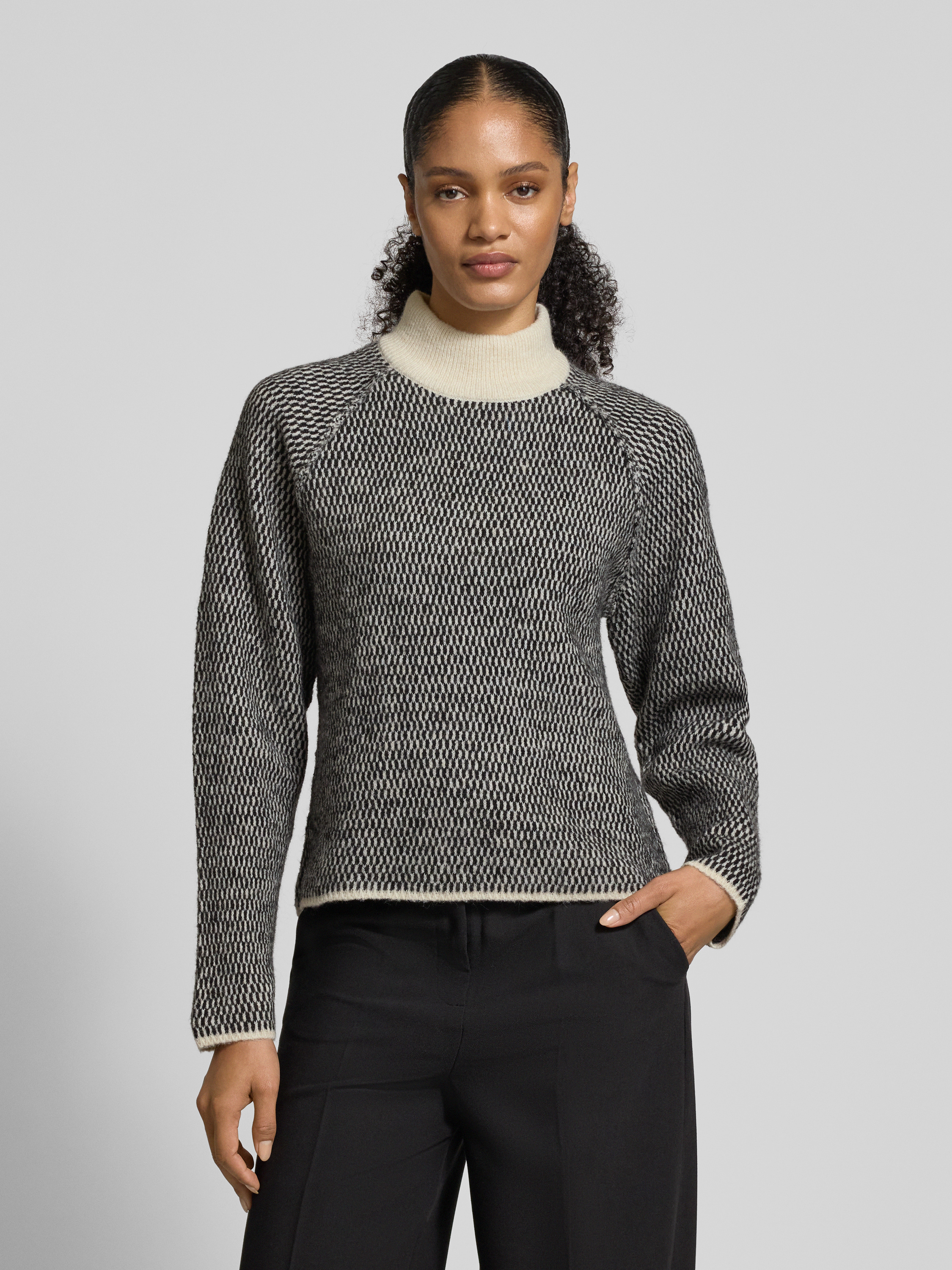 Sweter z dzianiny o kroju regular fit ze wzorem na całej powierzchni model ‘FELIZE’ - złamany biały