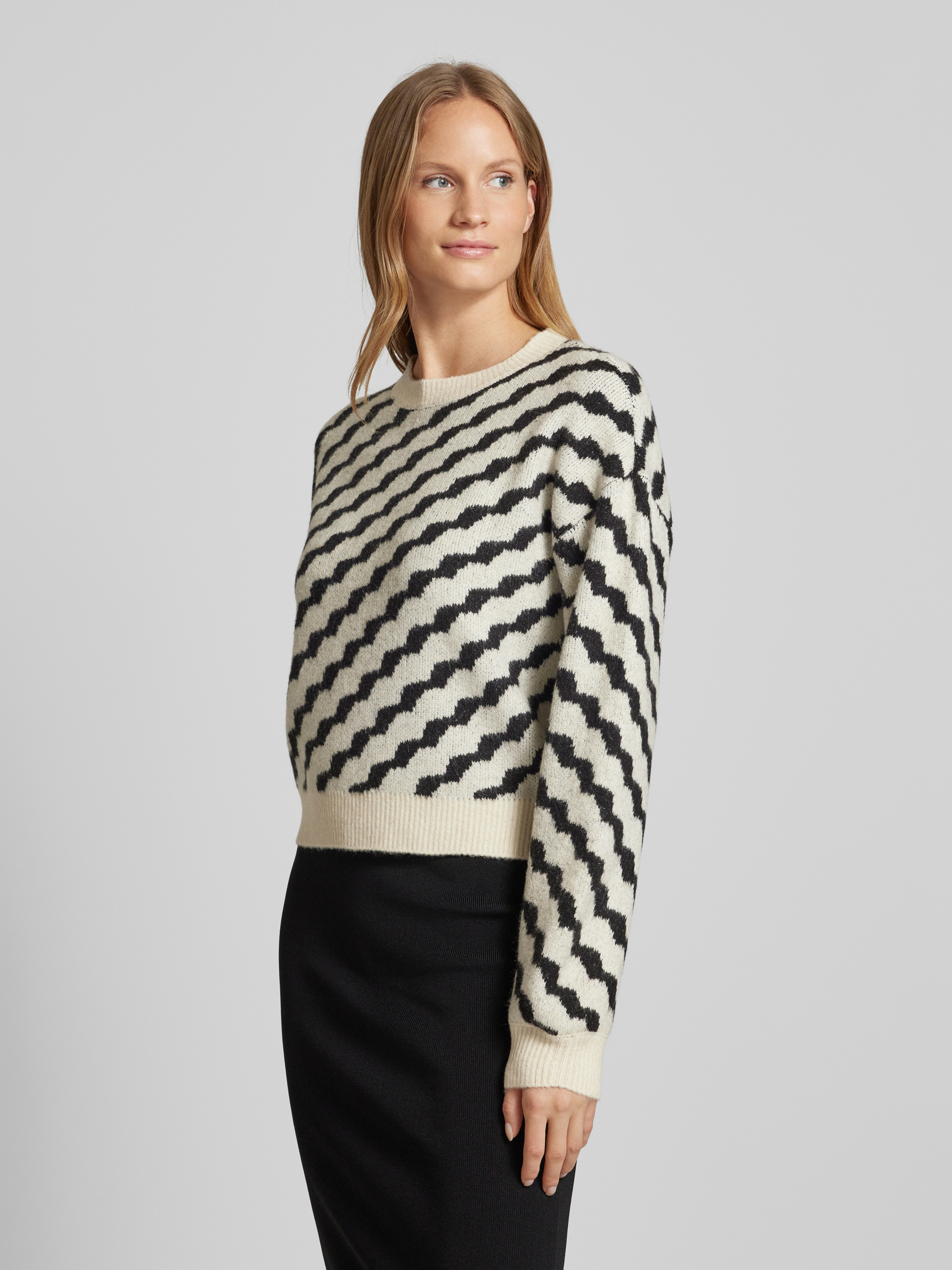 Sweter z dzianiny ze wzorem w ukośne paski model ‘LARA’ - beżowy