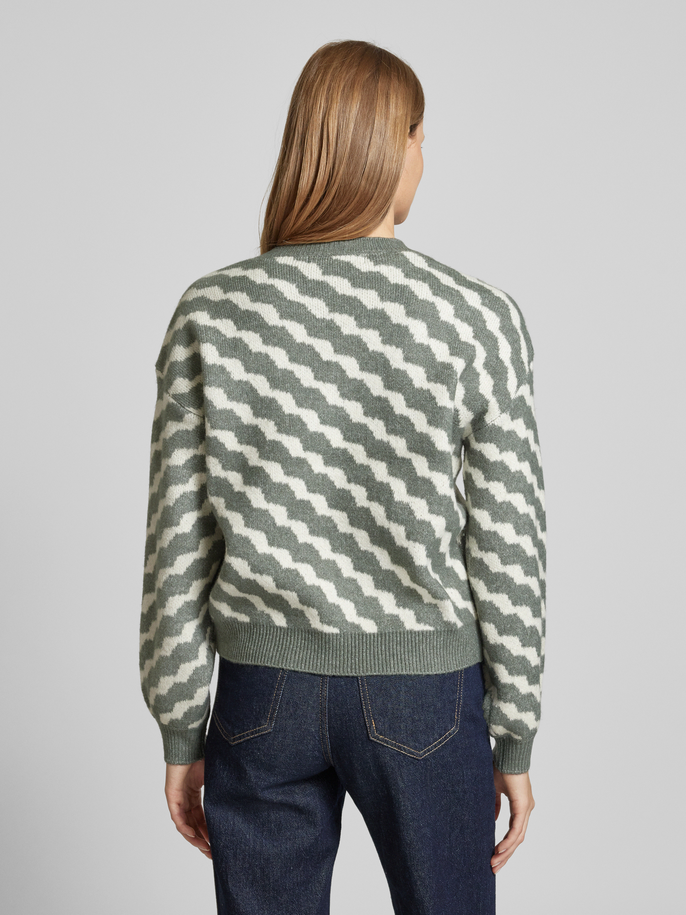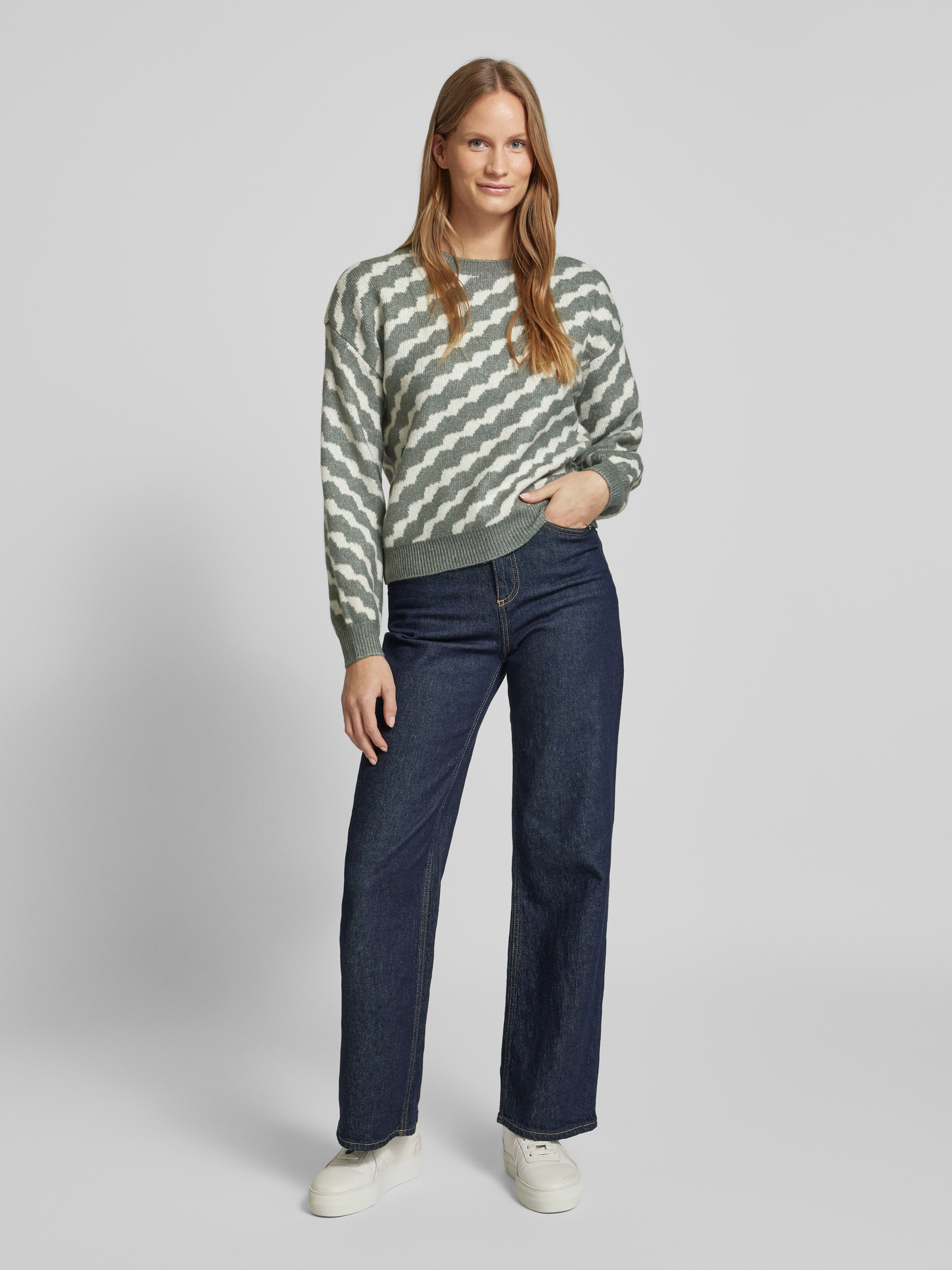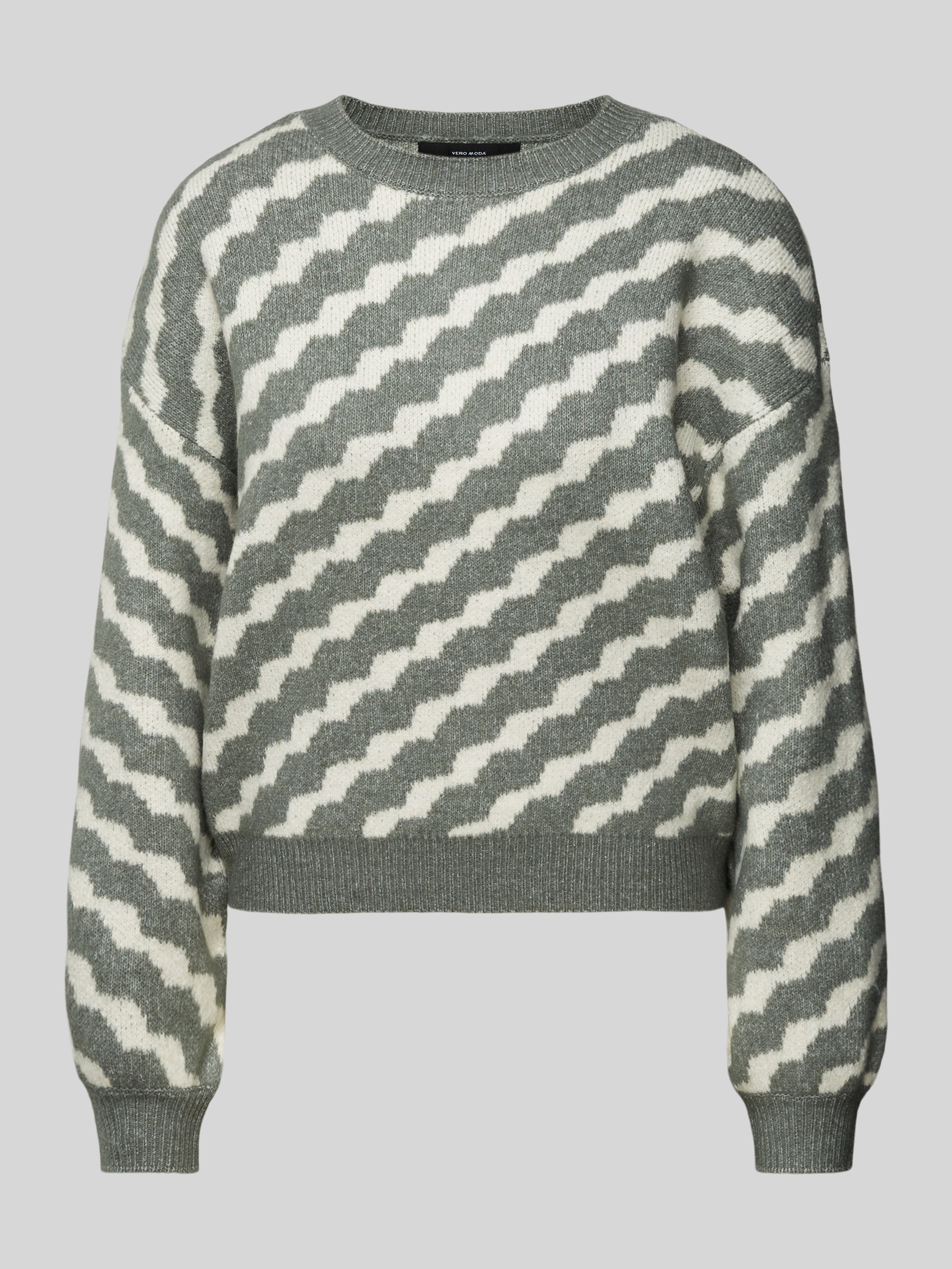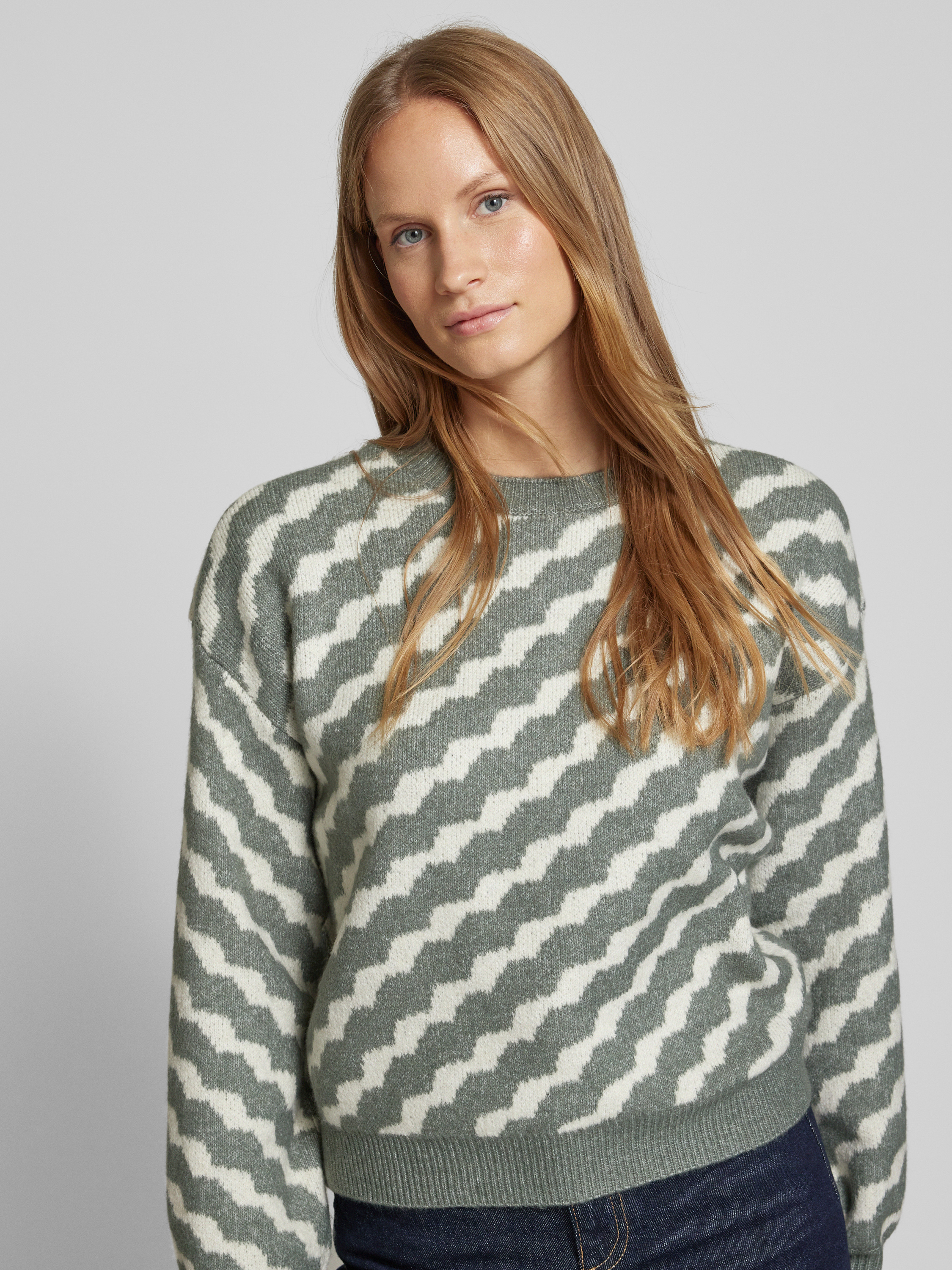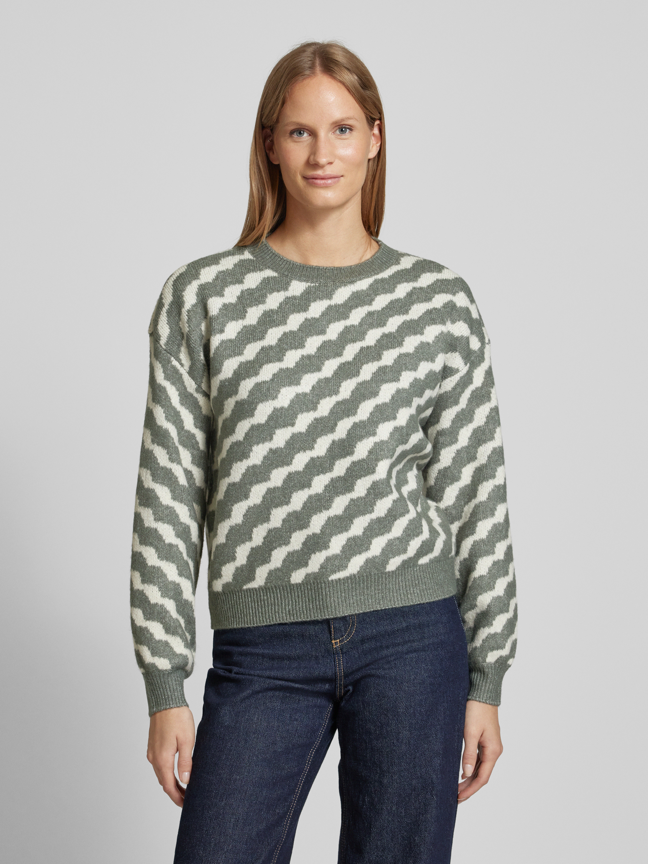 Sweter z dzianiny ze wzorem w ukośne paski model ‘LARA’ - trzcinowy