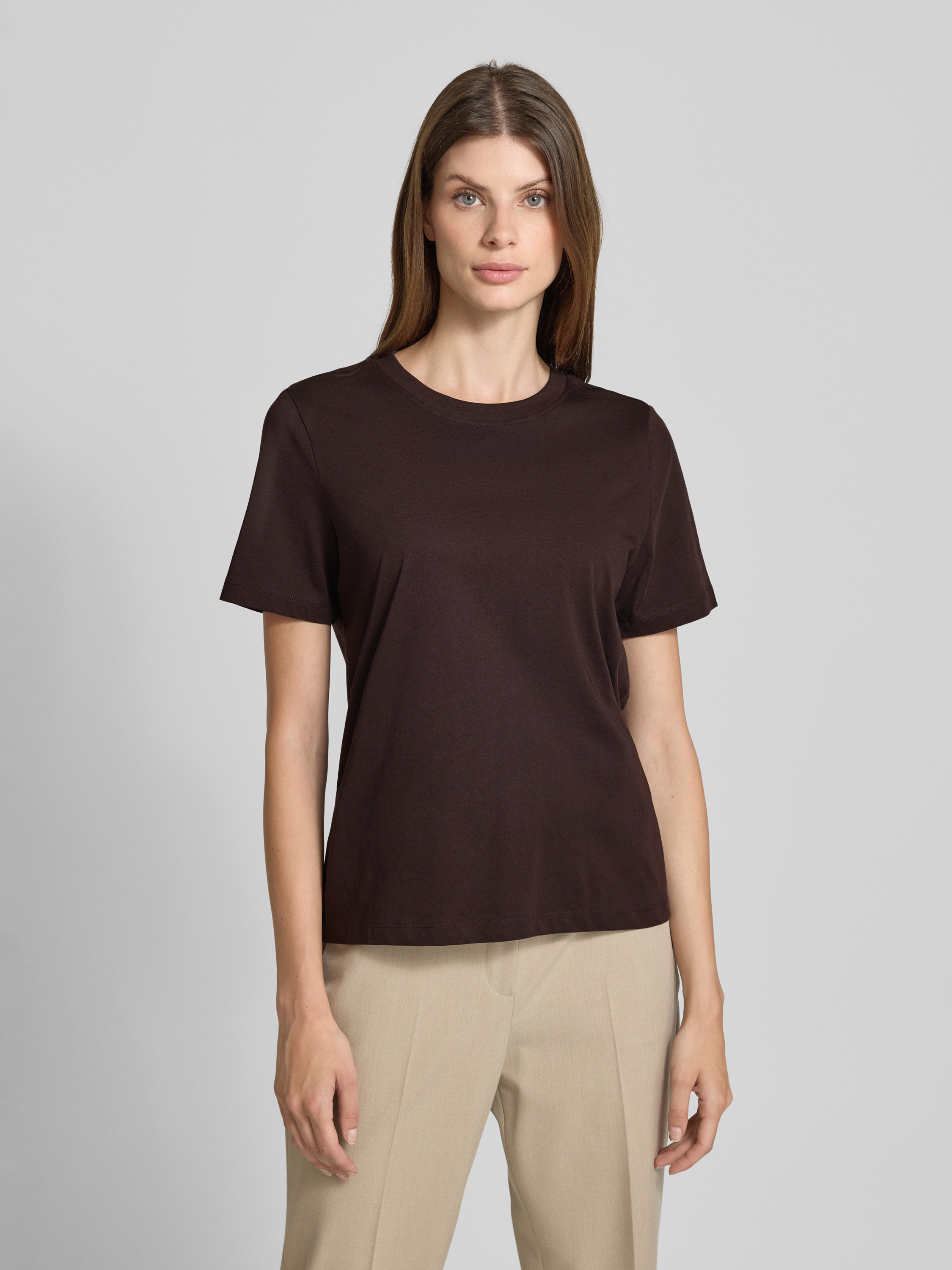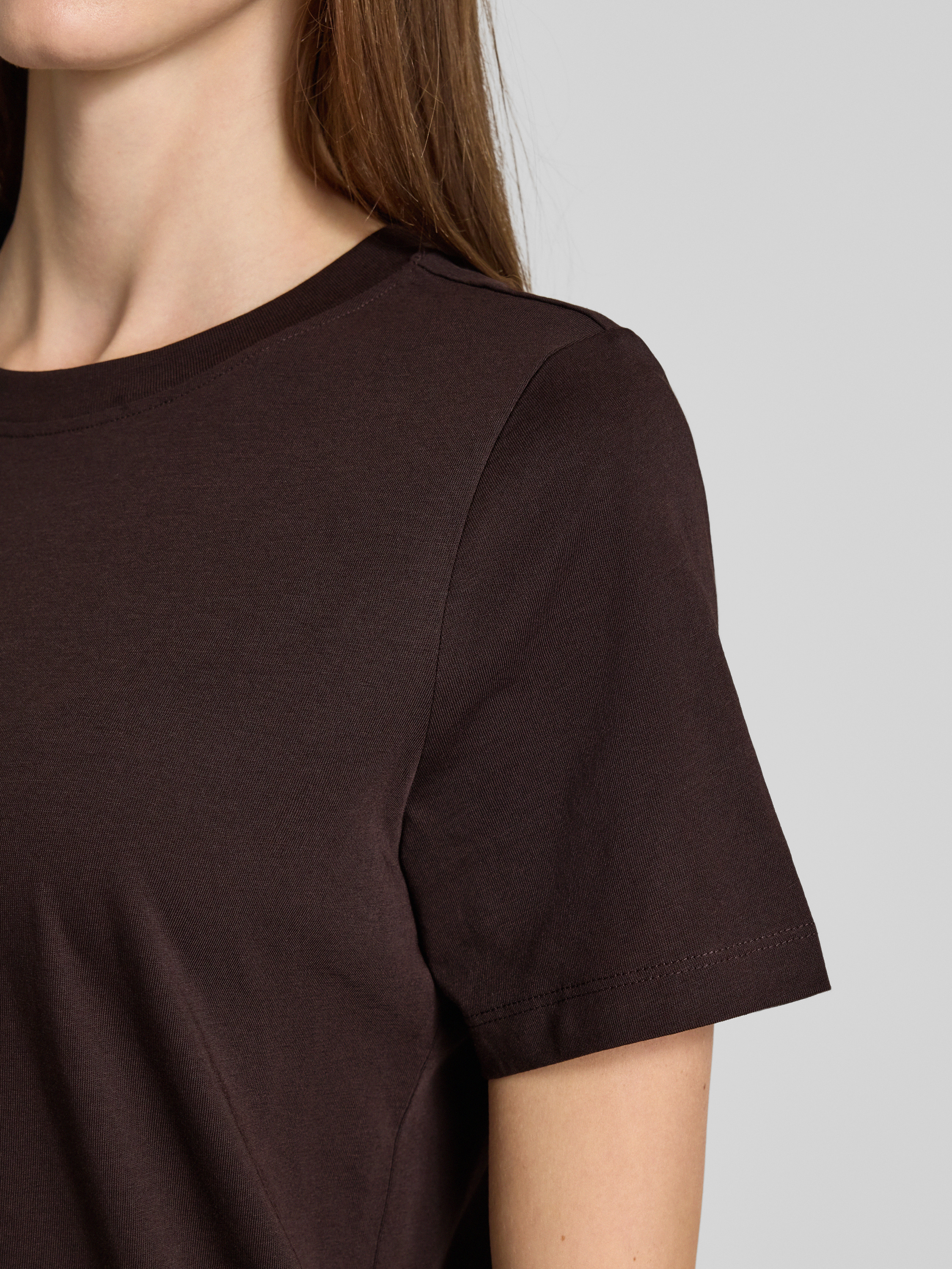T-shirt o kroju regular fit z czystej bawełny model ‘PAULINA’ - czekoladowy