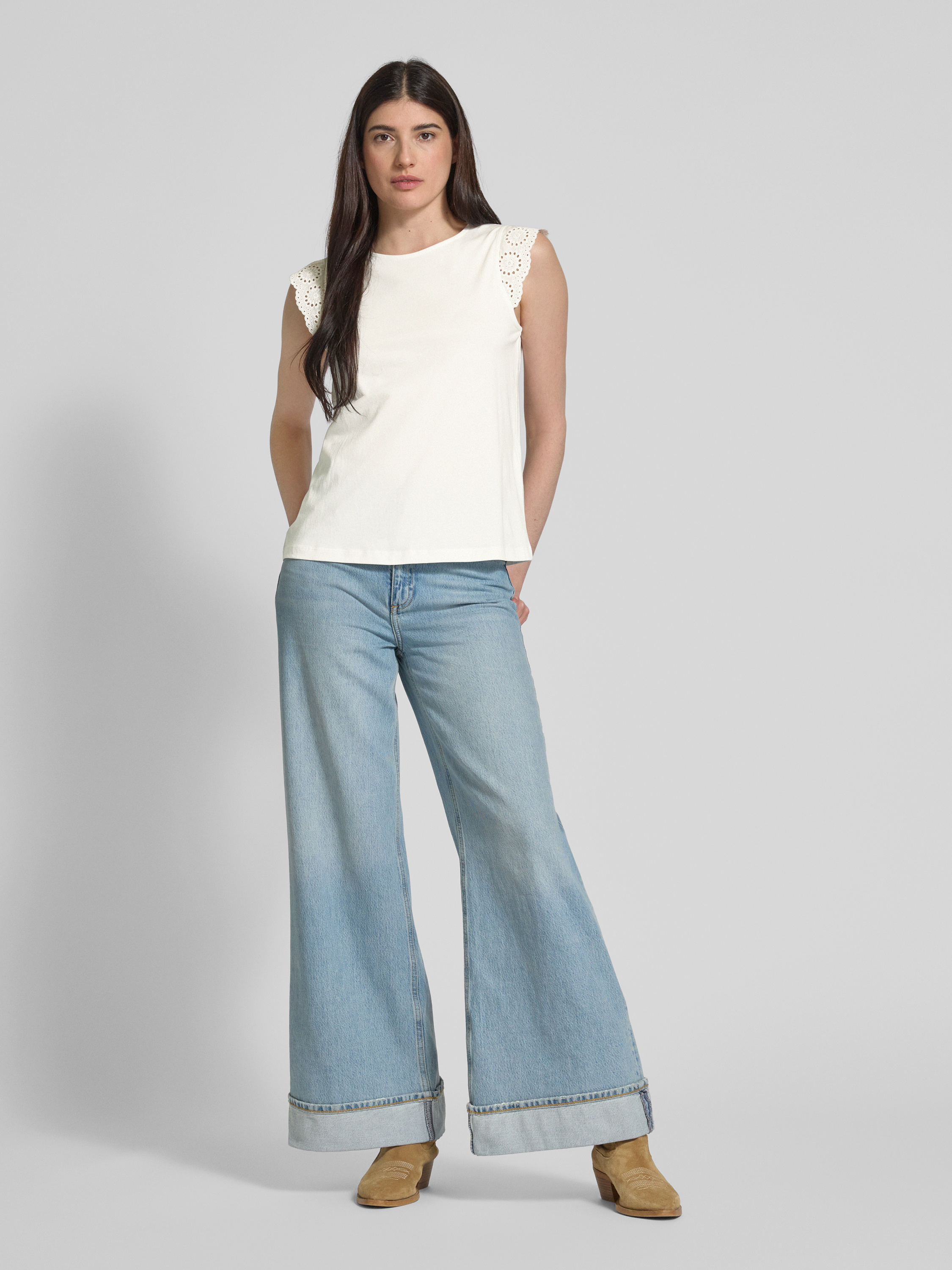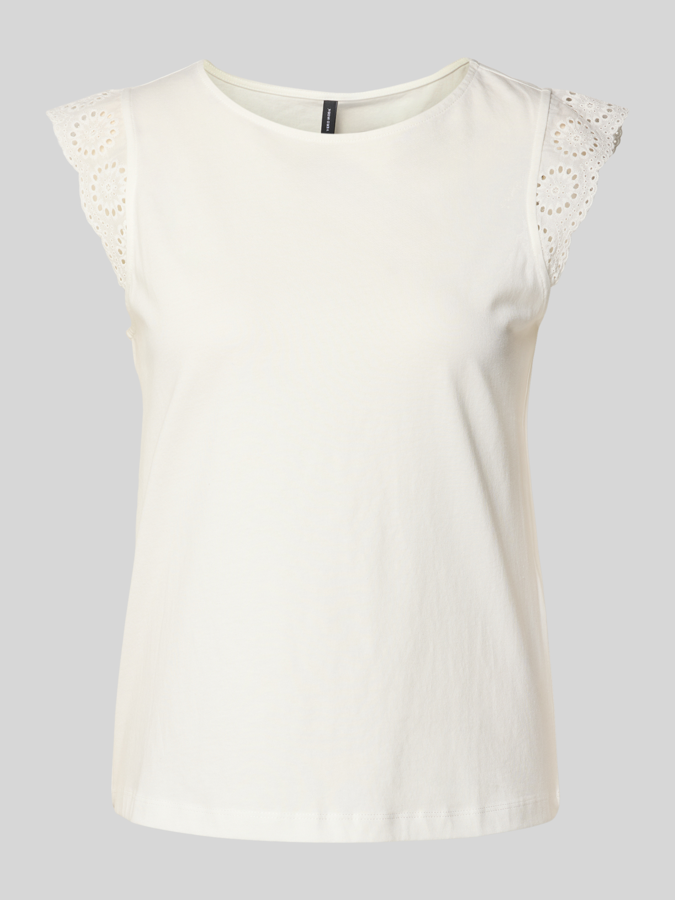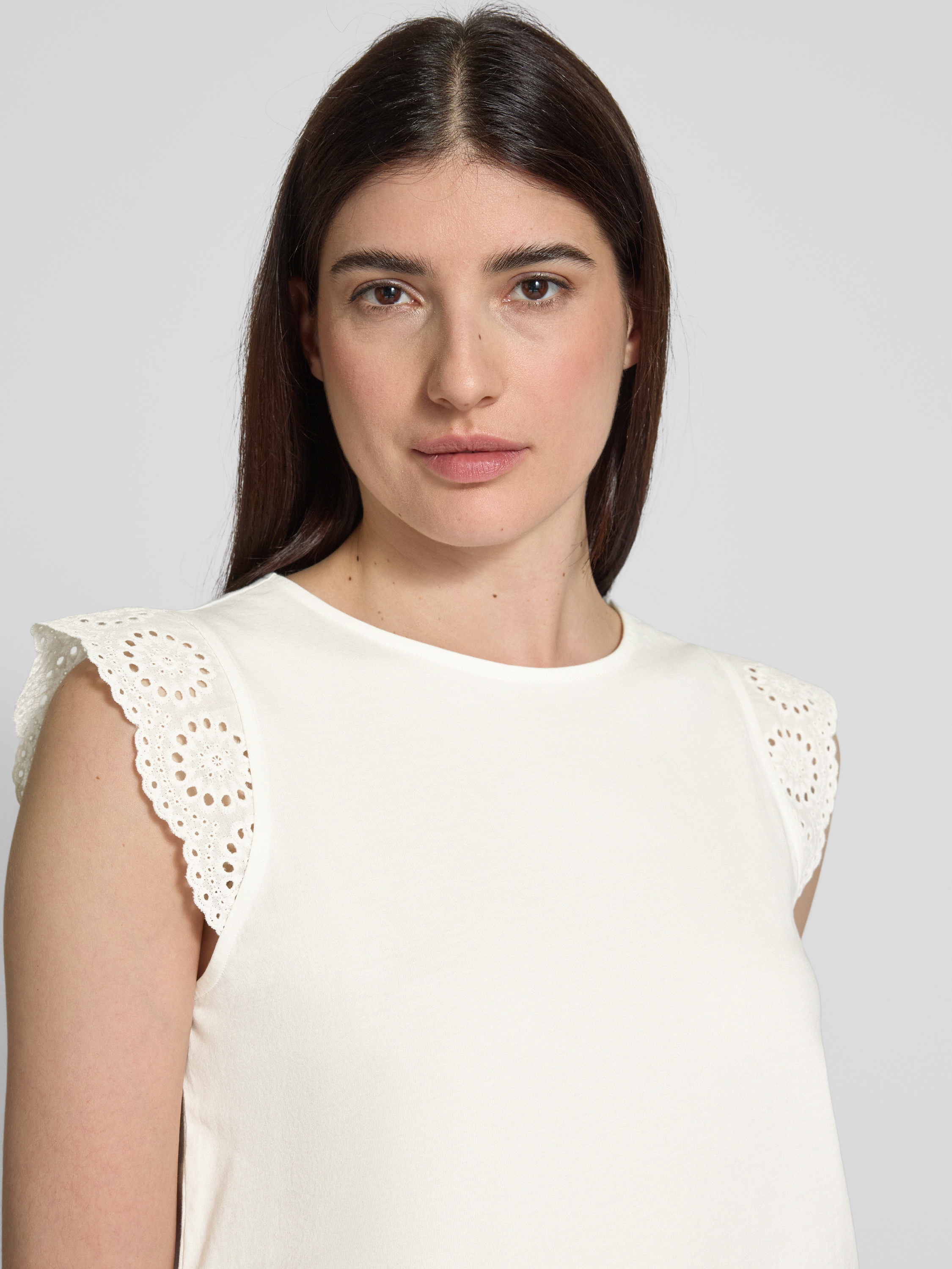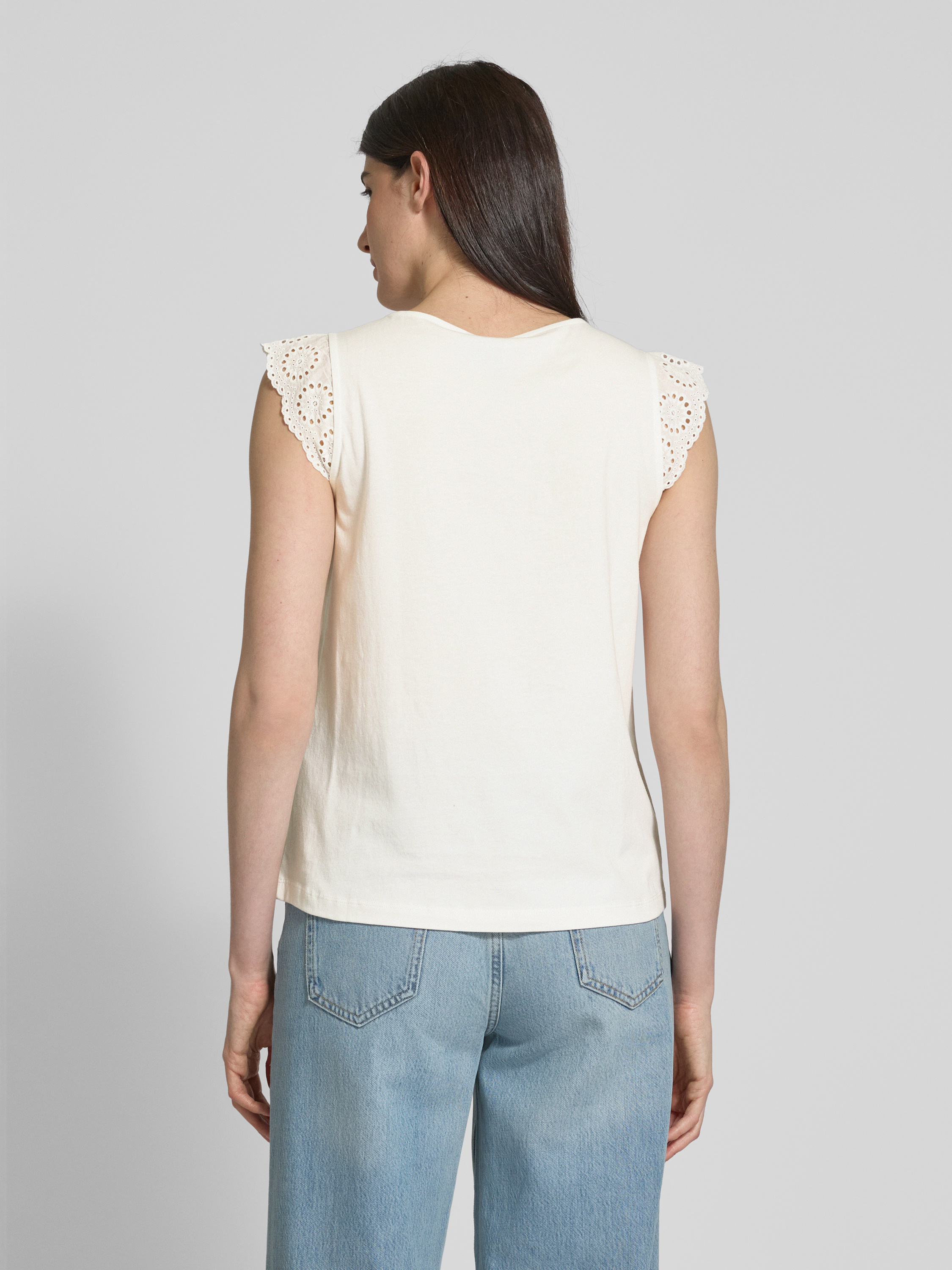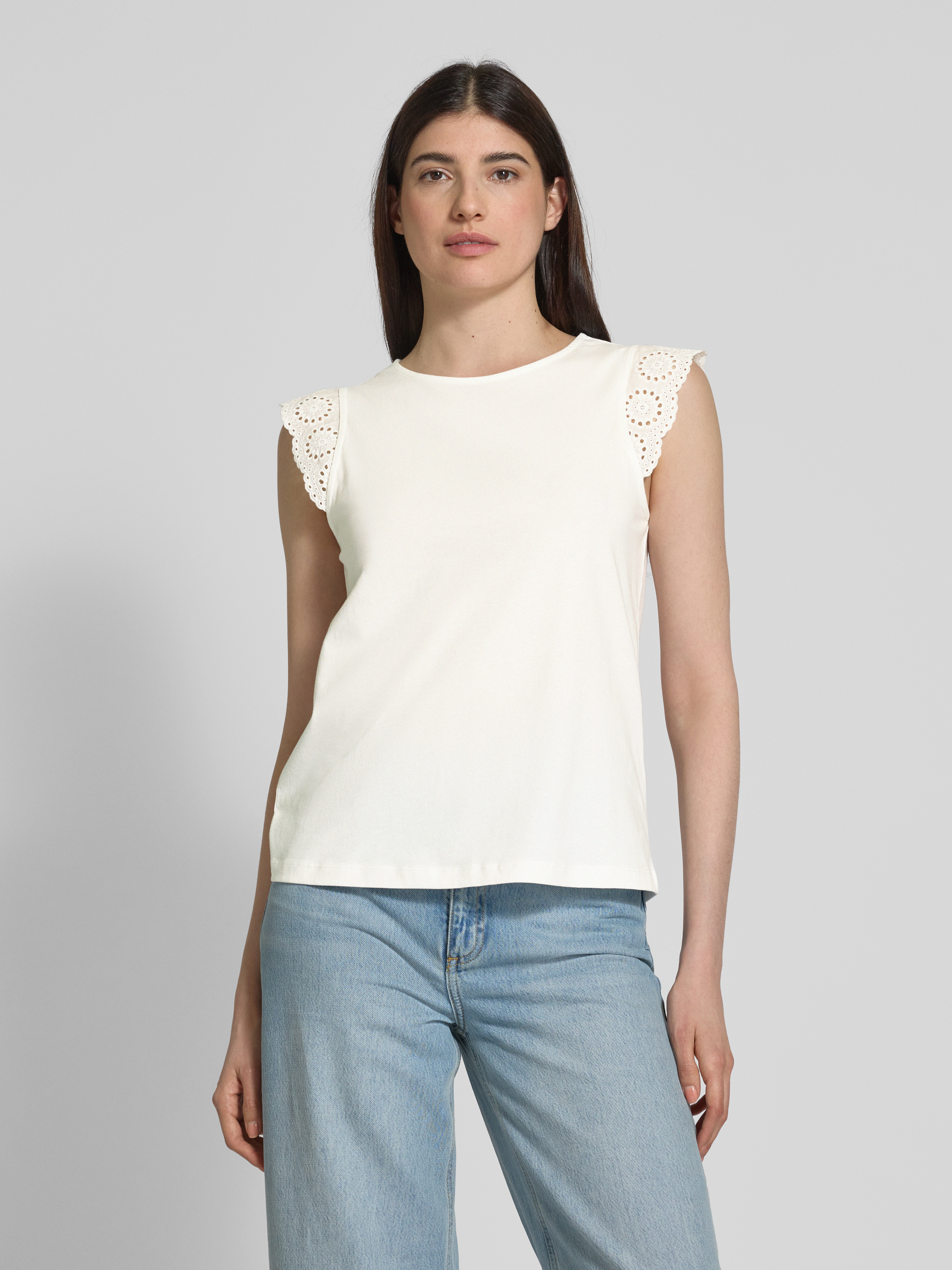T-shirt o kroju regular fit z haftem angielskim model ‘EMILY’ - złamany biały