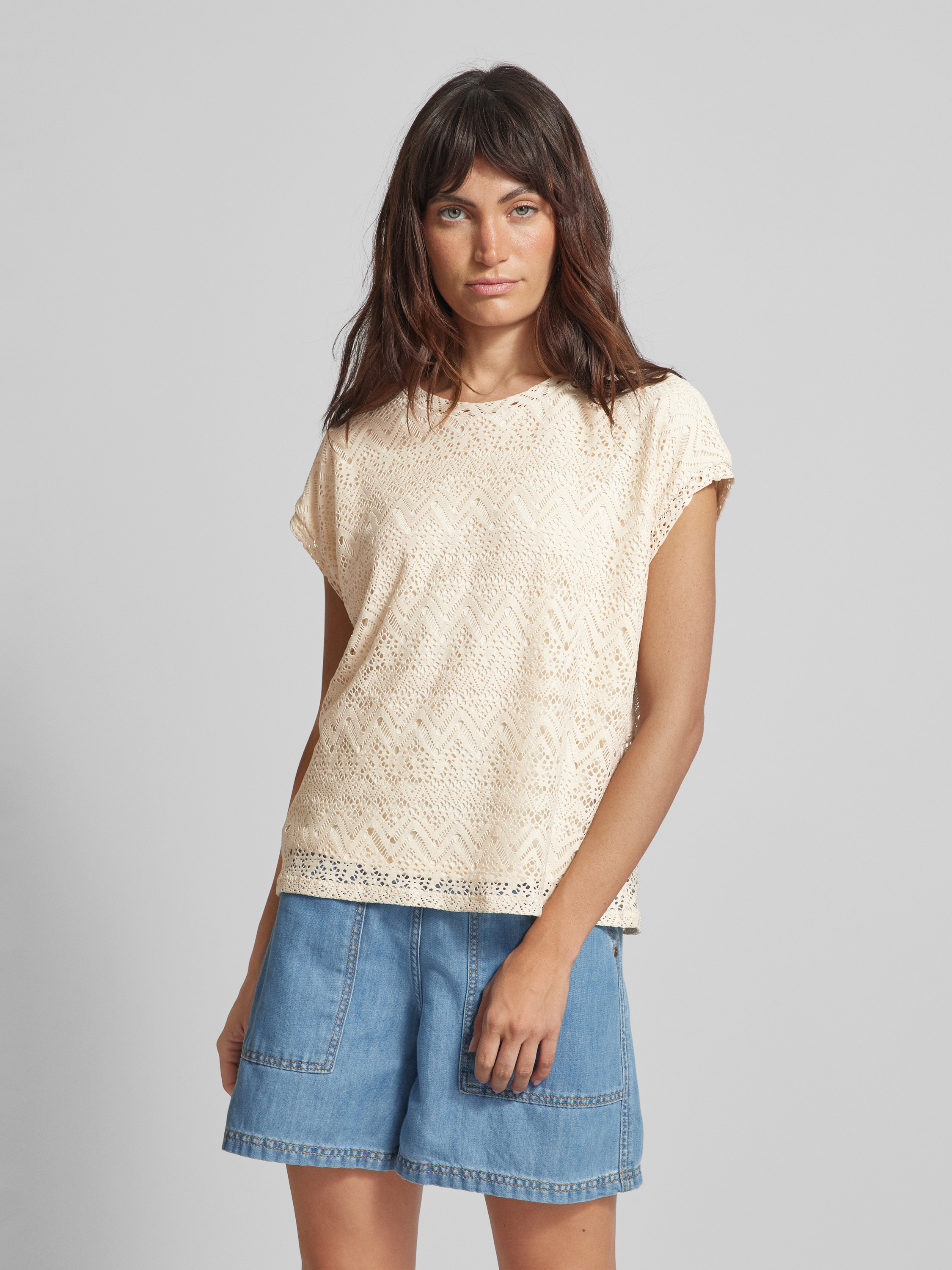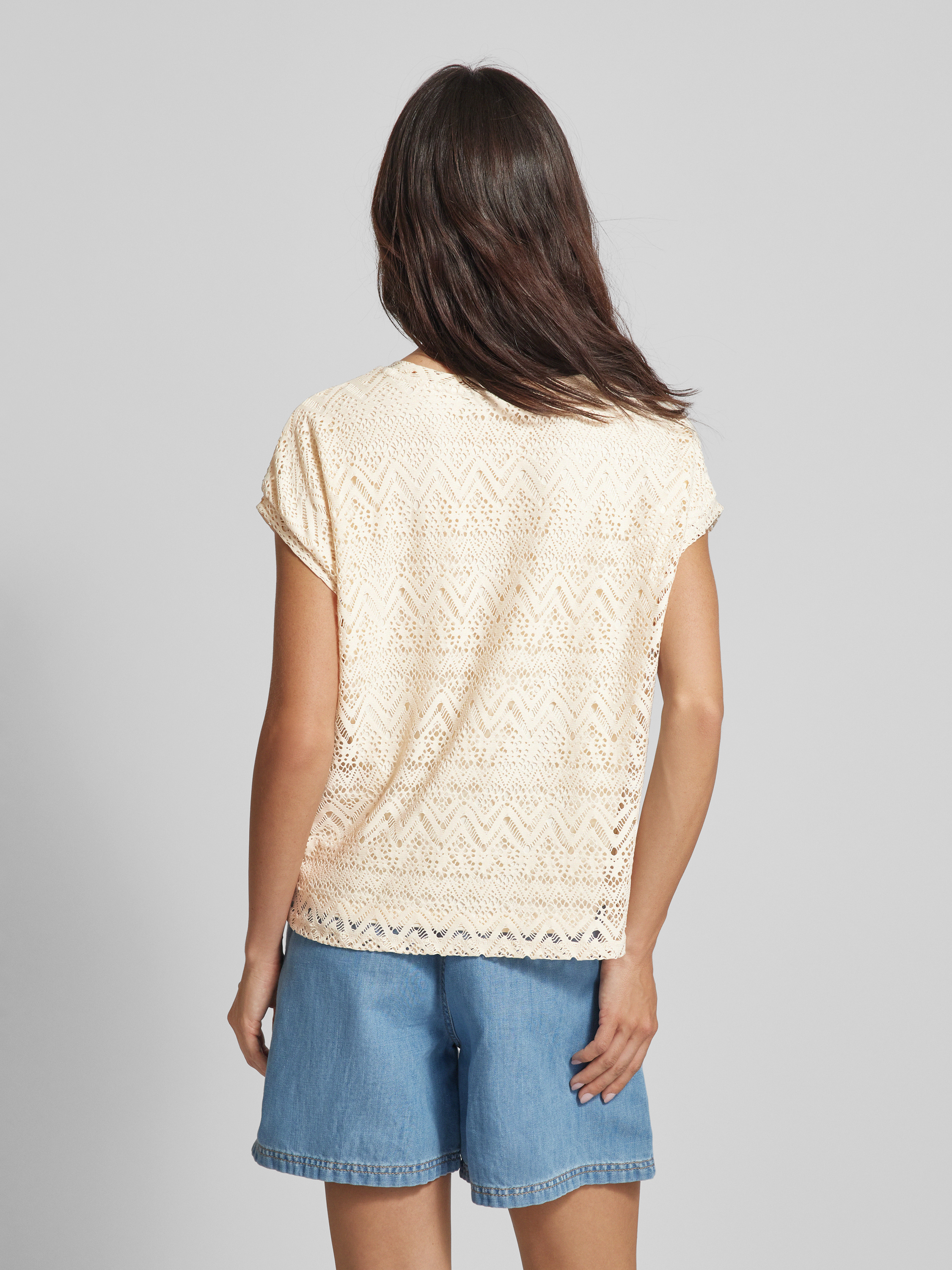 T-shirt z ażurowym wzorem model ‘MAYA’ - beżowy