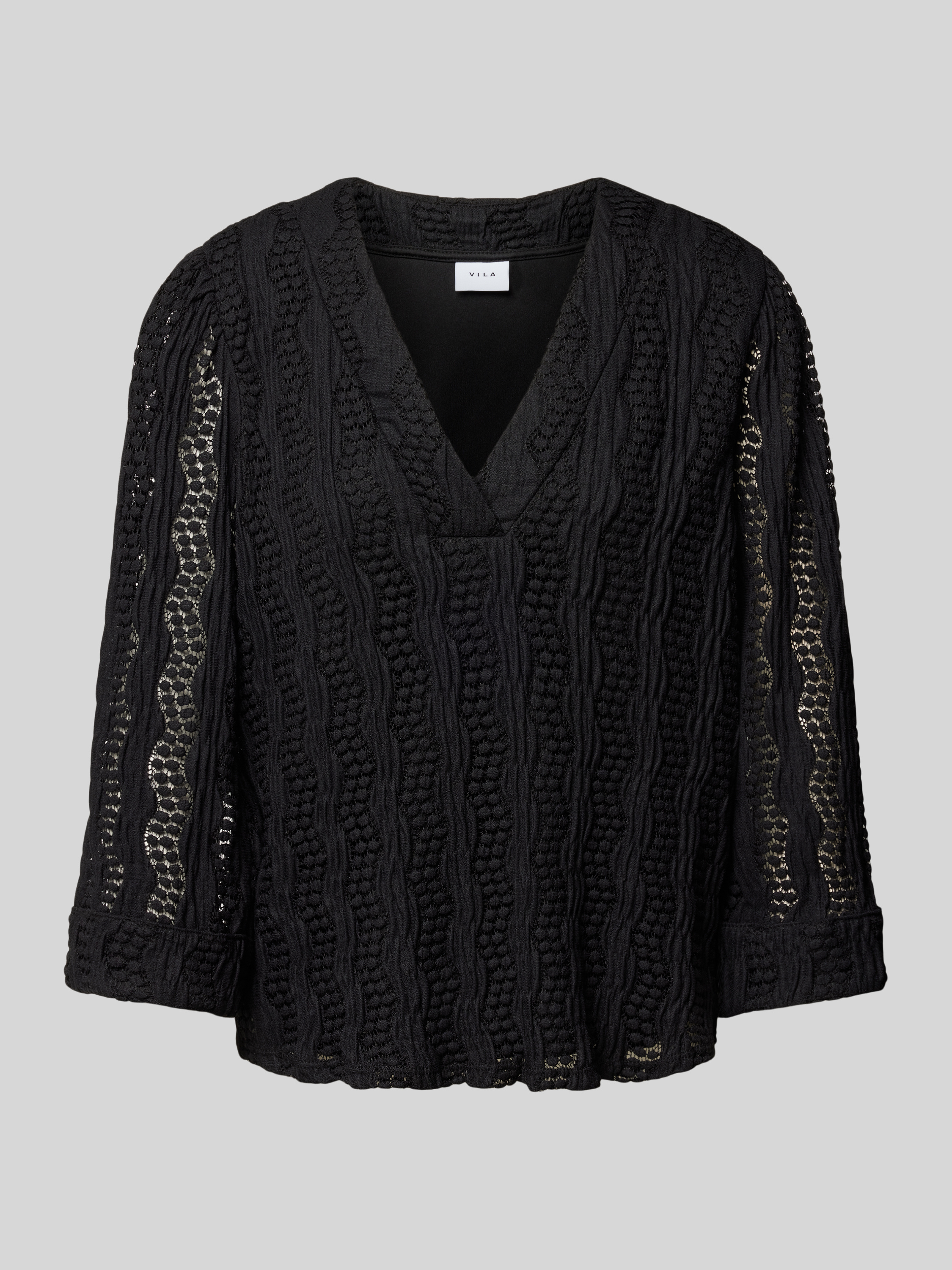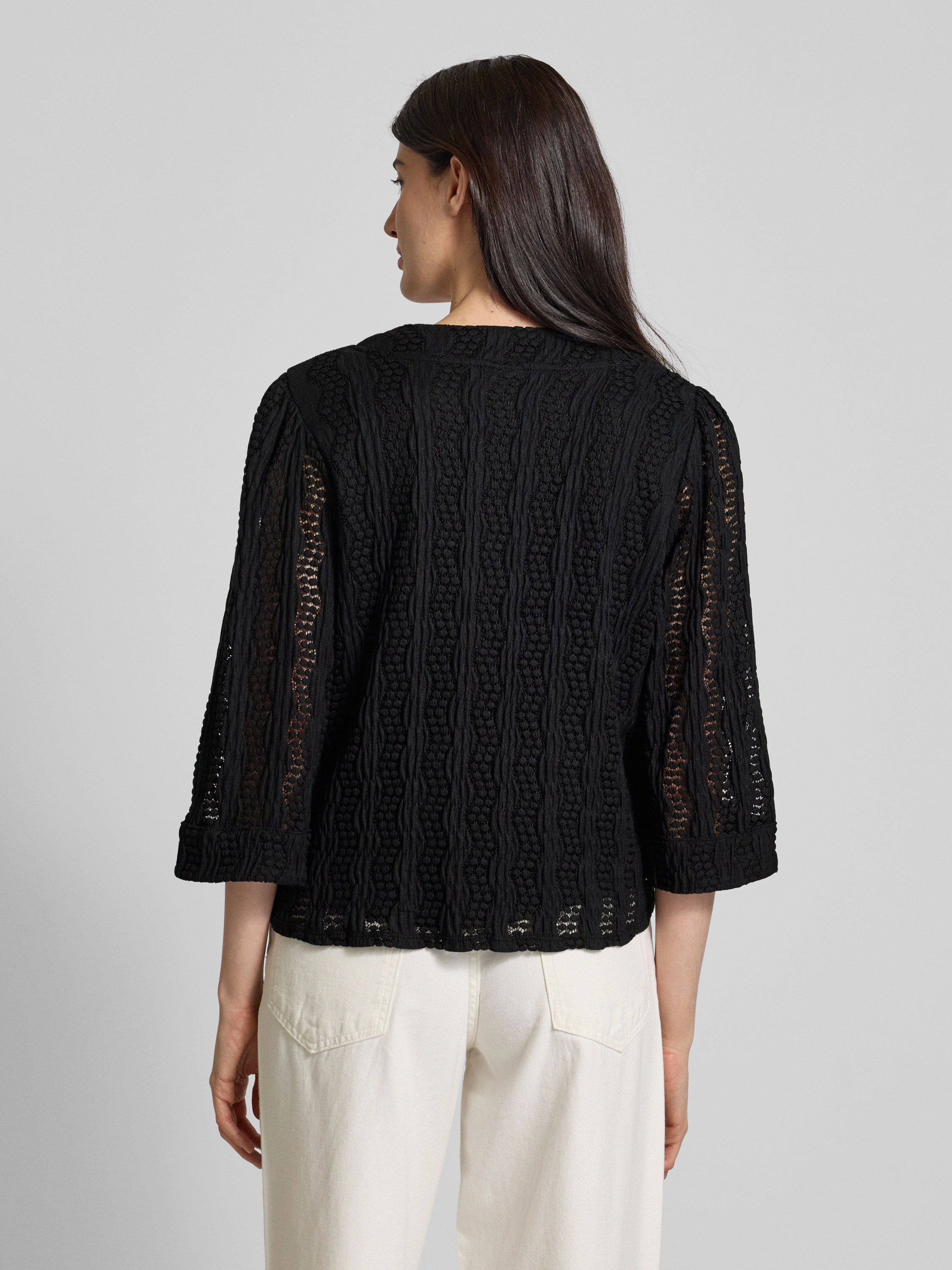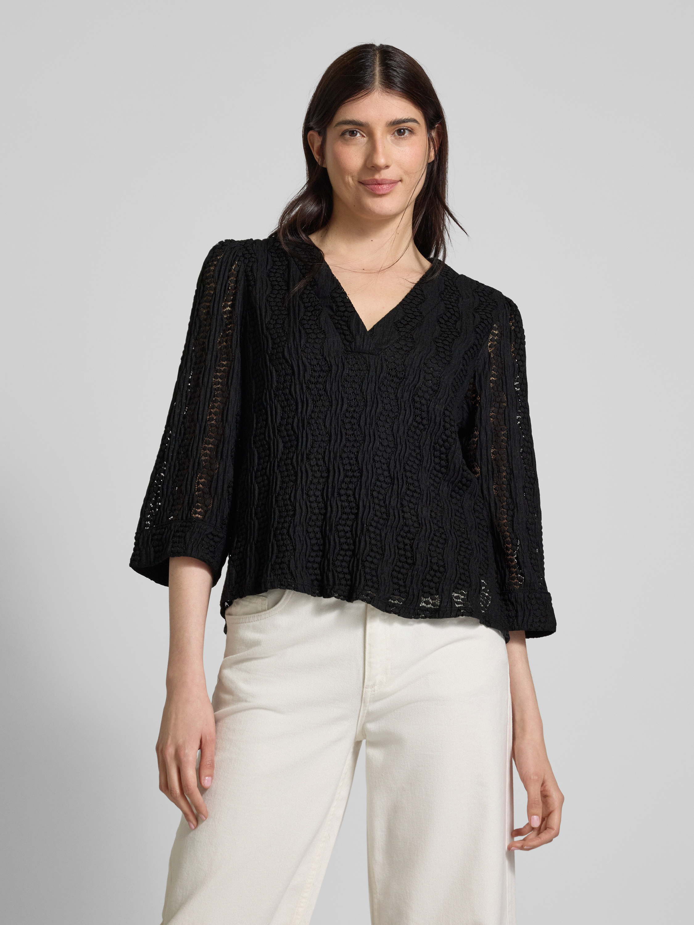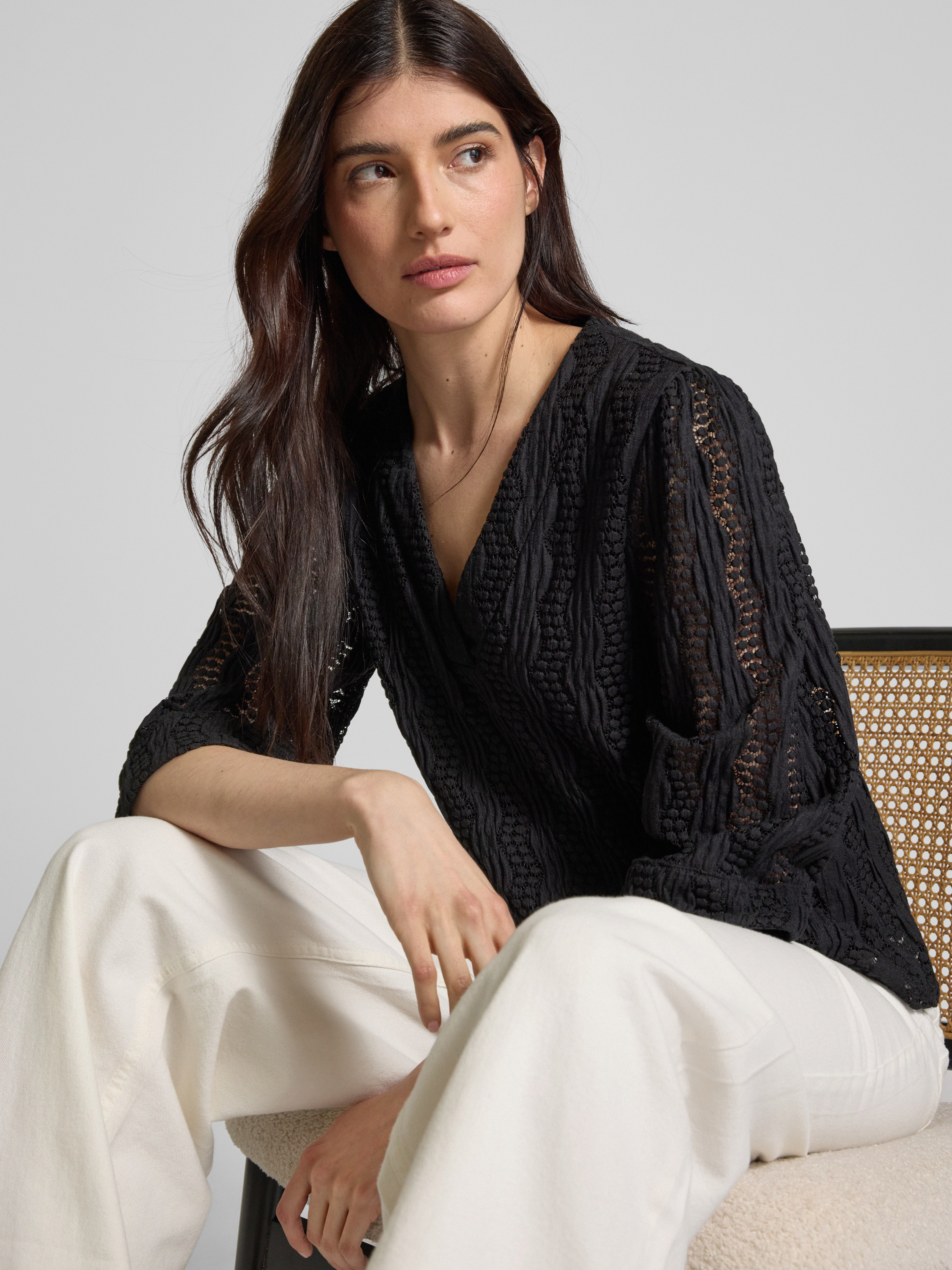 Bluzka o kroju regular fit z dekoltem w serek model ‘LUMENA’ - czarny