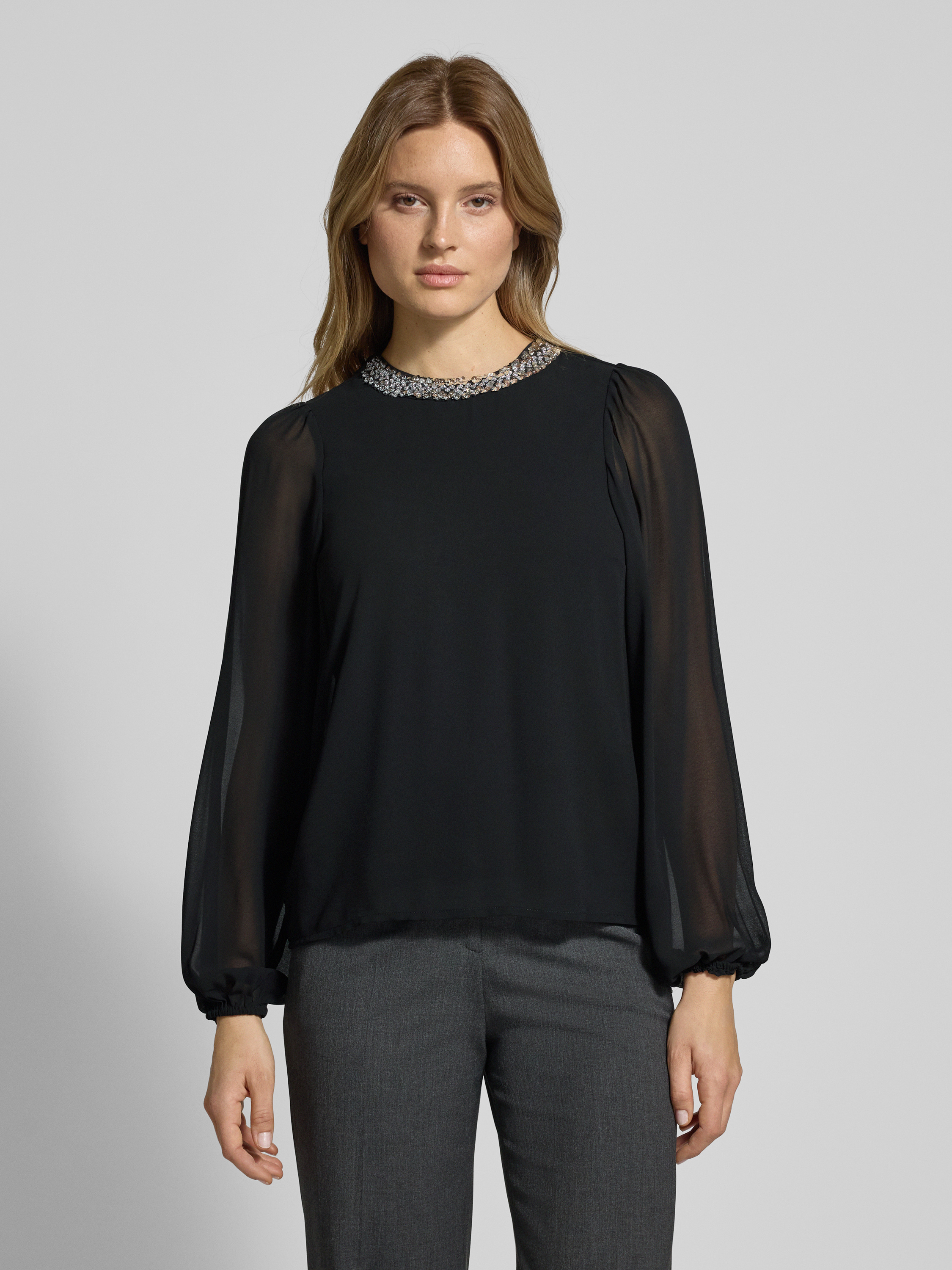 Bluzka o kroju regular fit z obszyciem ozdobnymi kamieniami model ‘WILLY’ - czarny