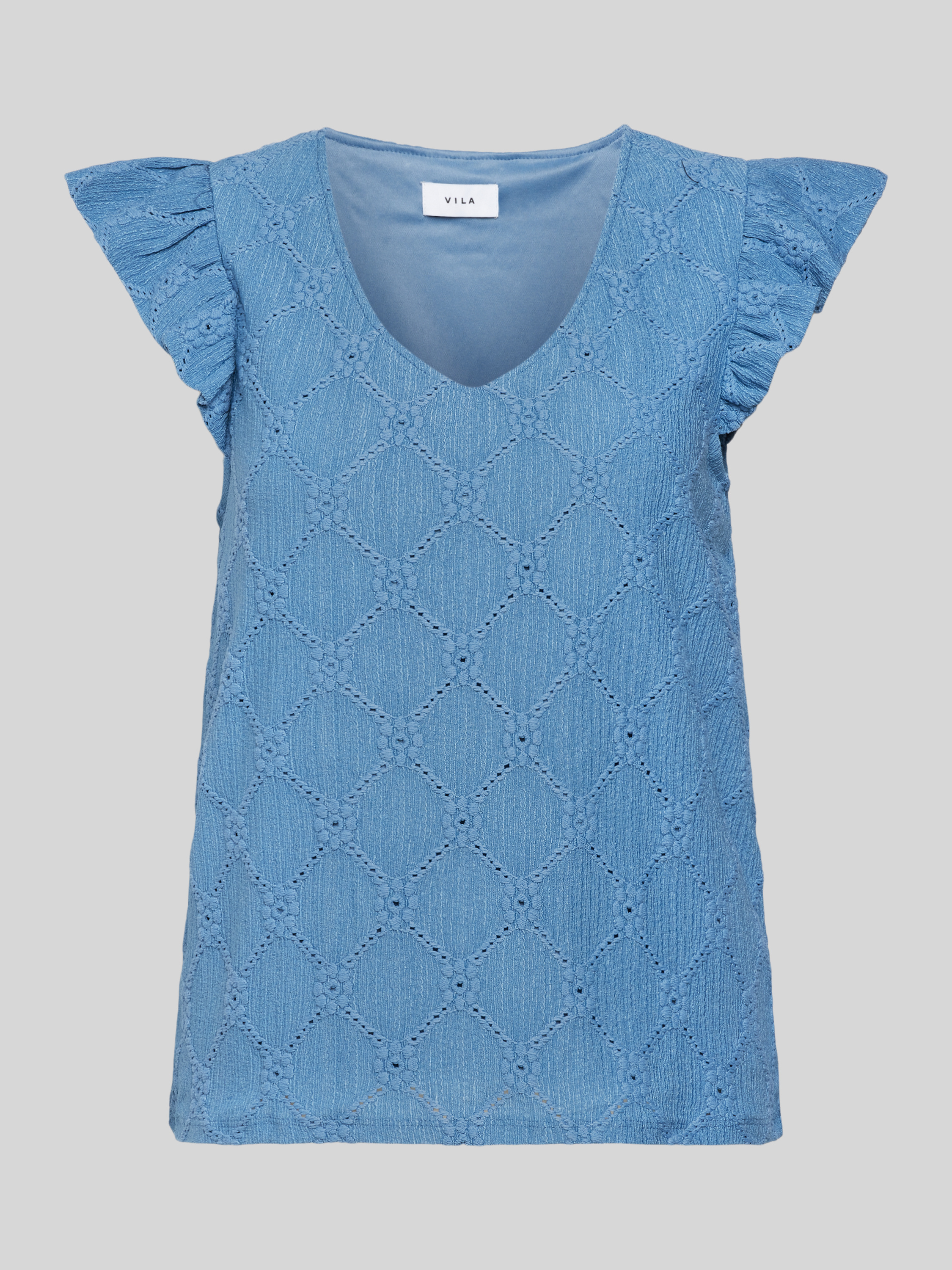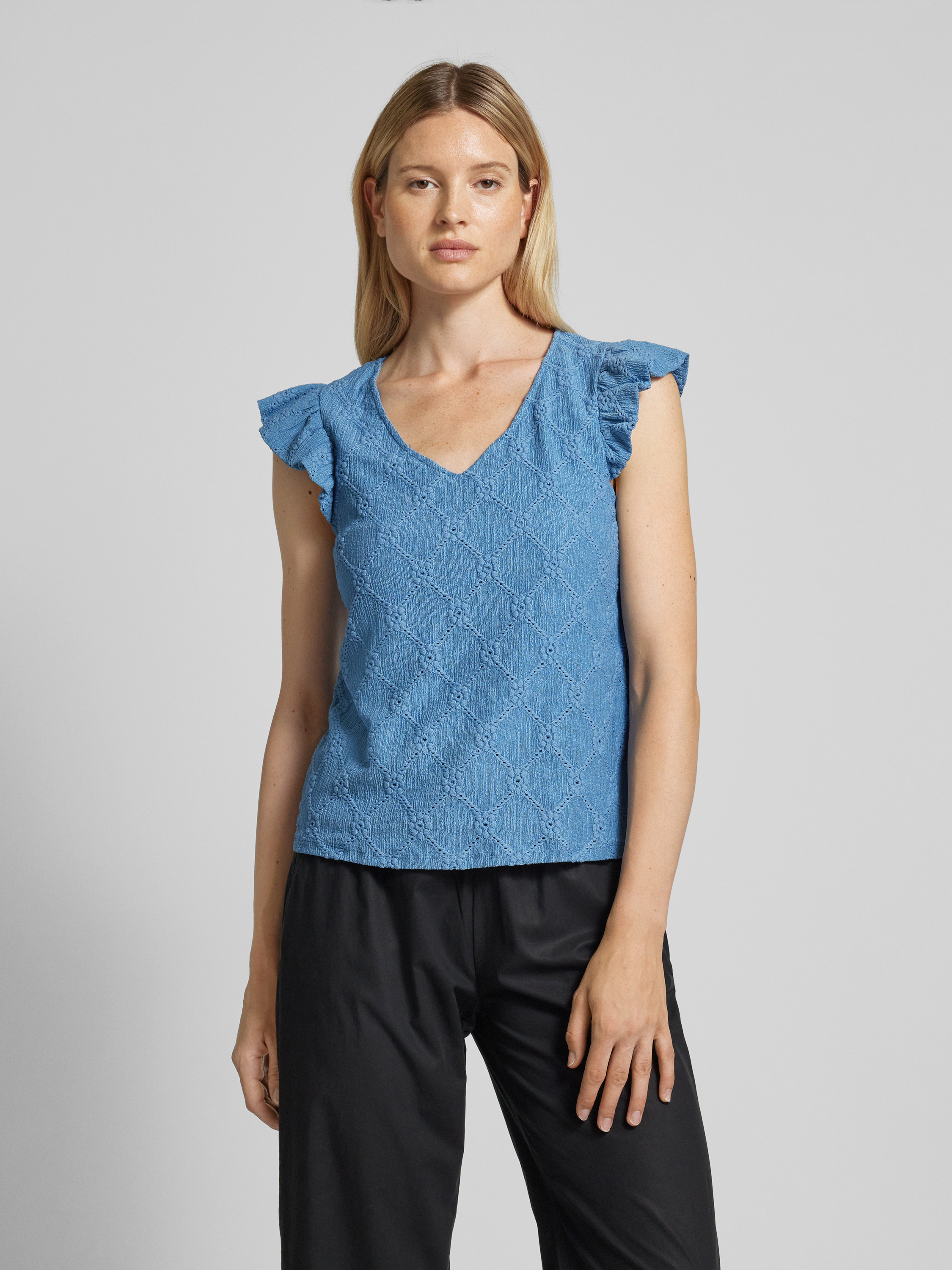 Bluzka z dekoltem w serek model ‘DELEA’ - szaroniebieski