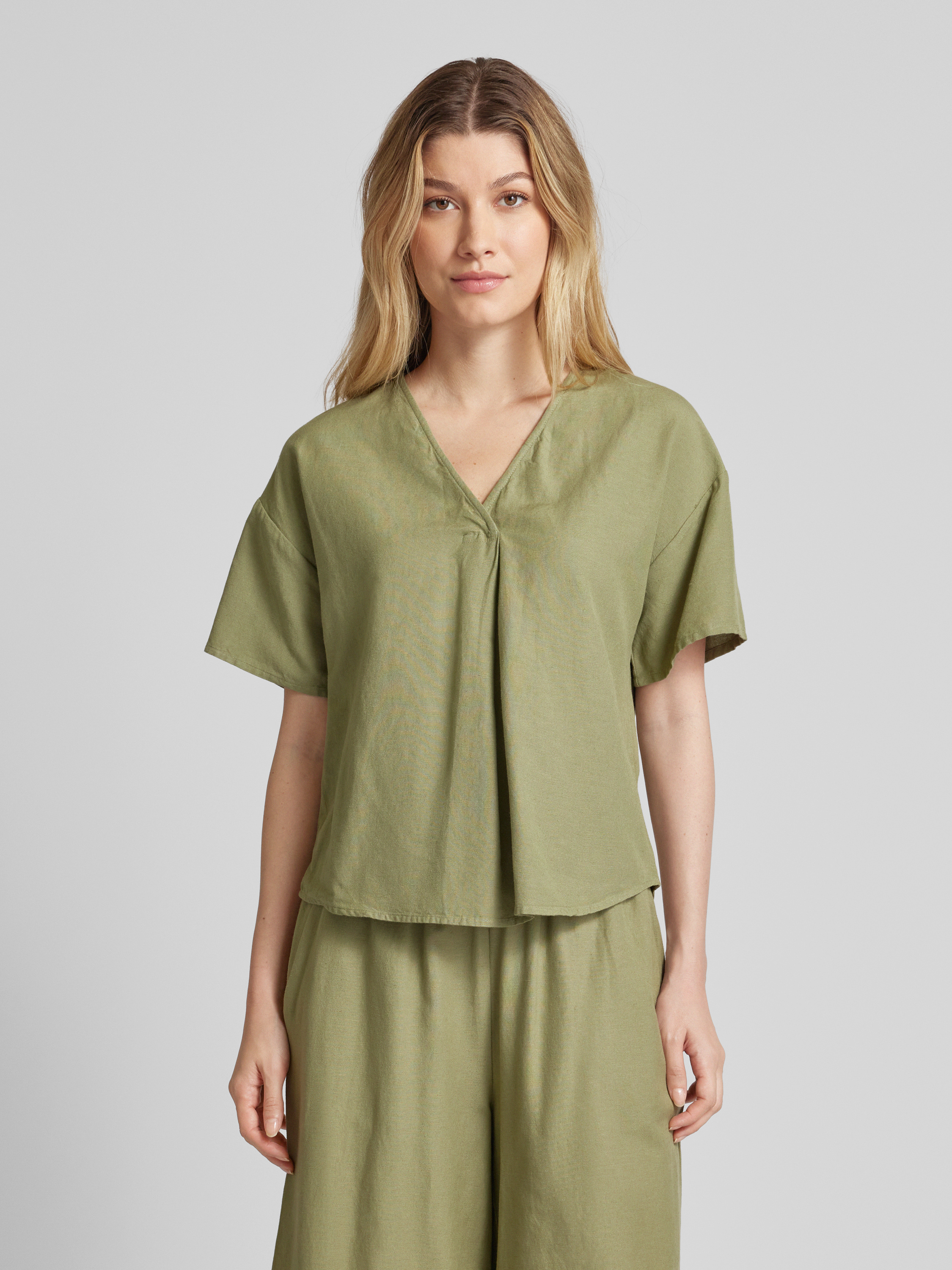 Bluzka z dekoltem w serek model ‘PRISILLA’ - limonkowy