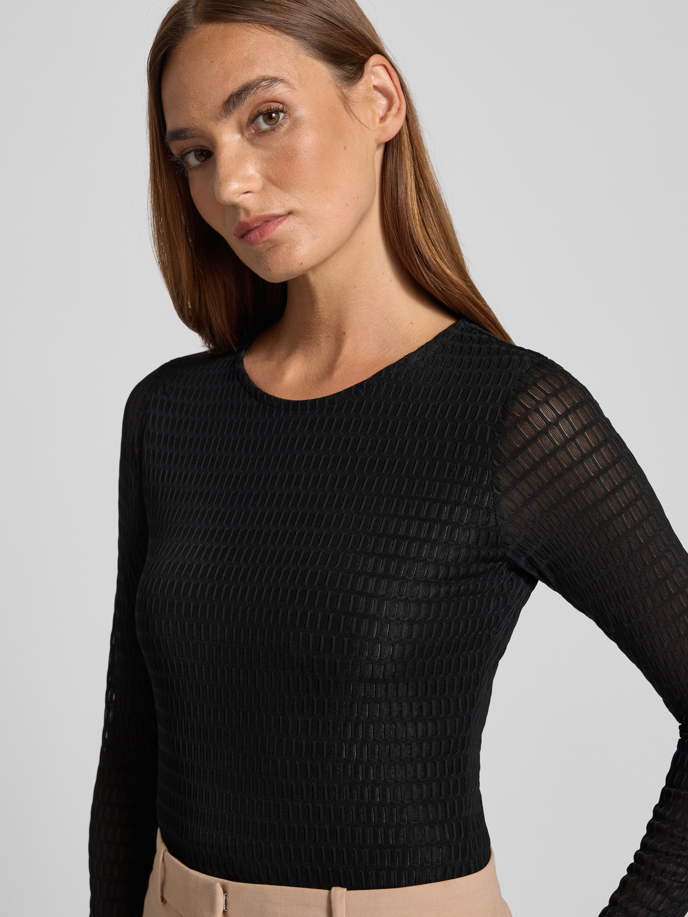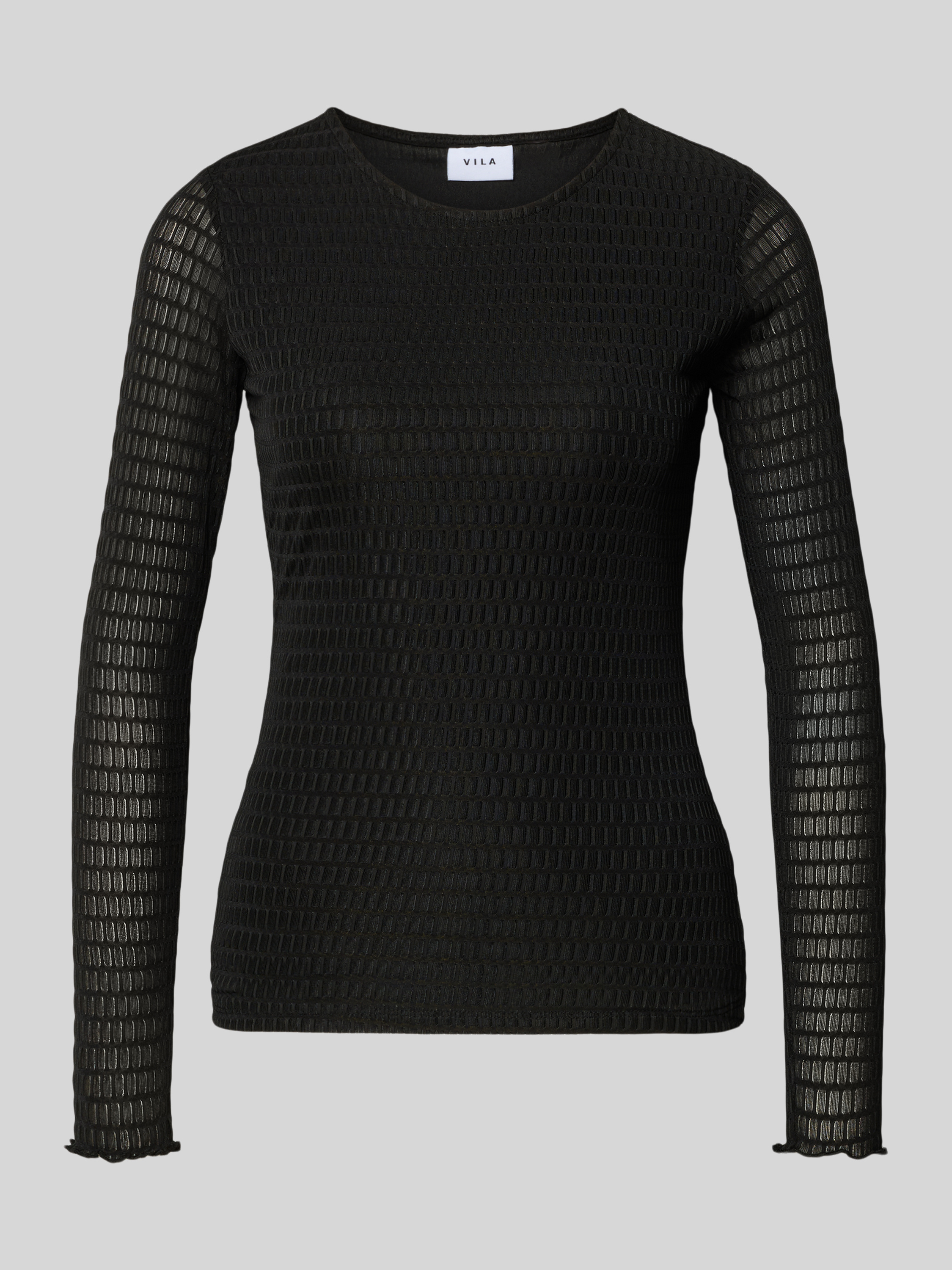 Bluzka z długim rękawem i okrągłym dekoltem model ‘LARINE’ - czarny