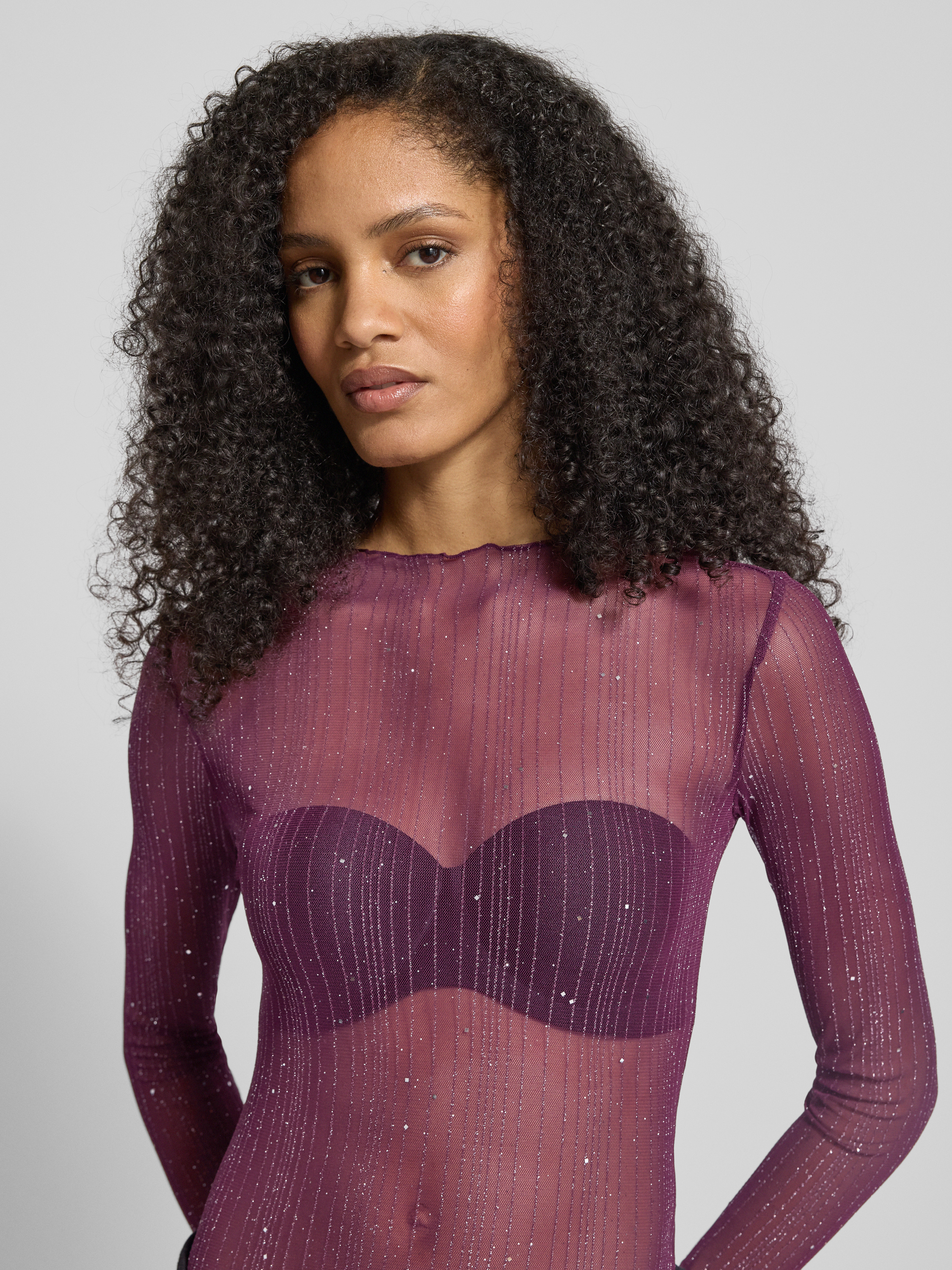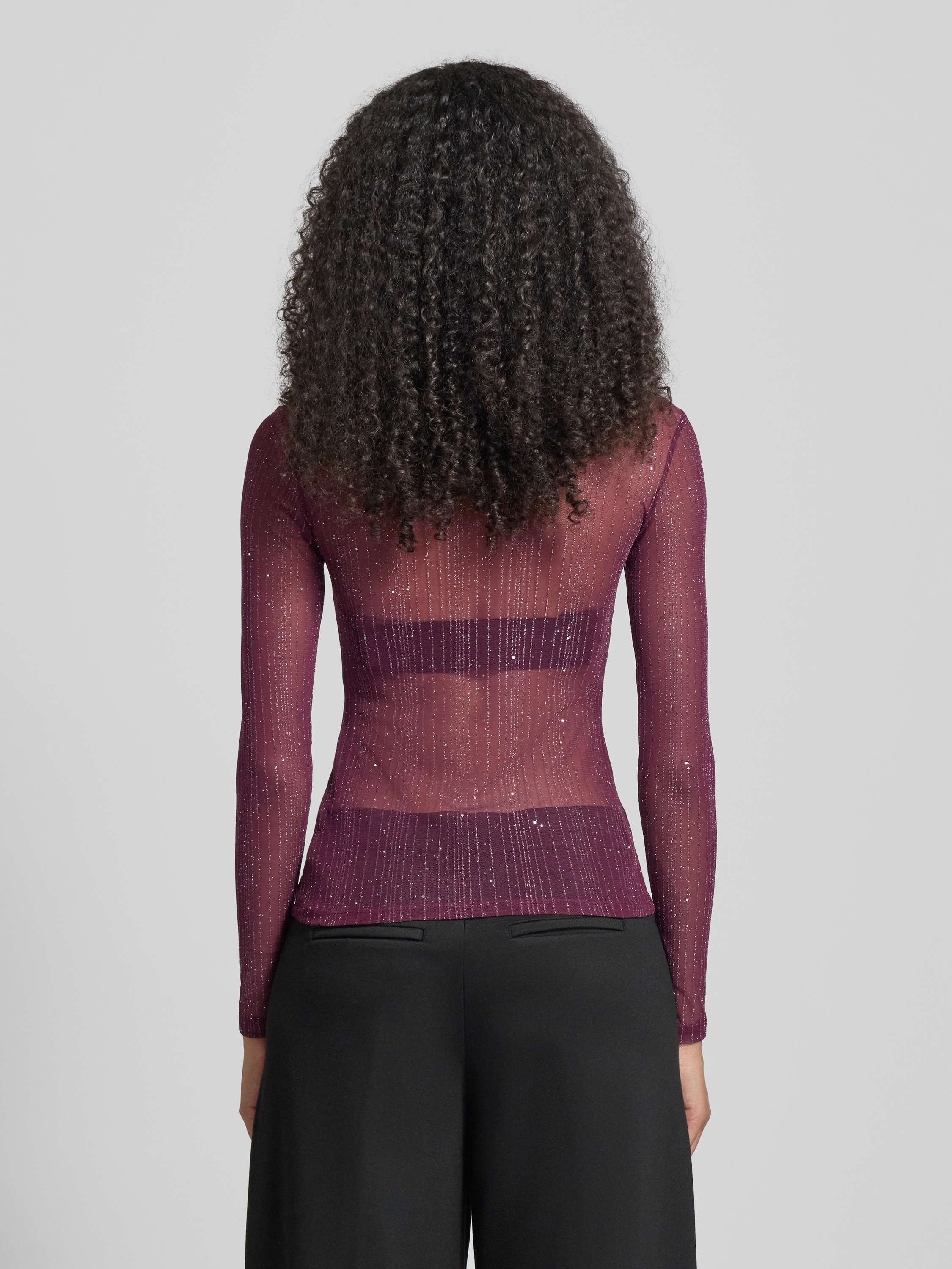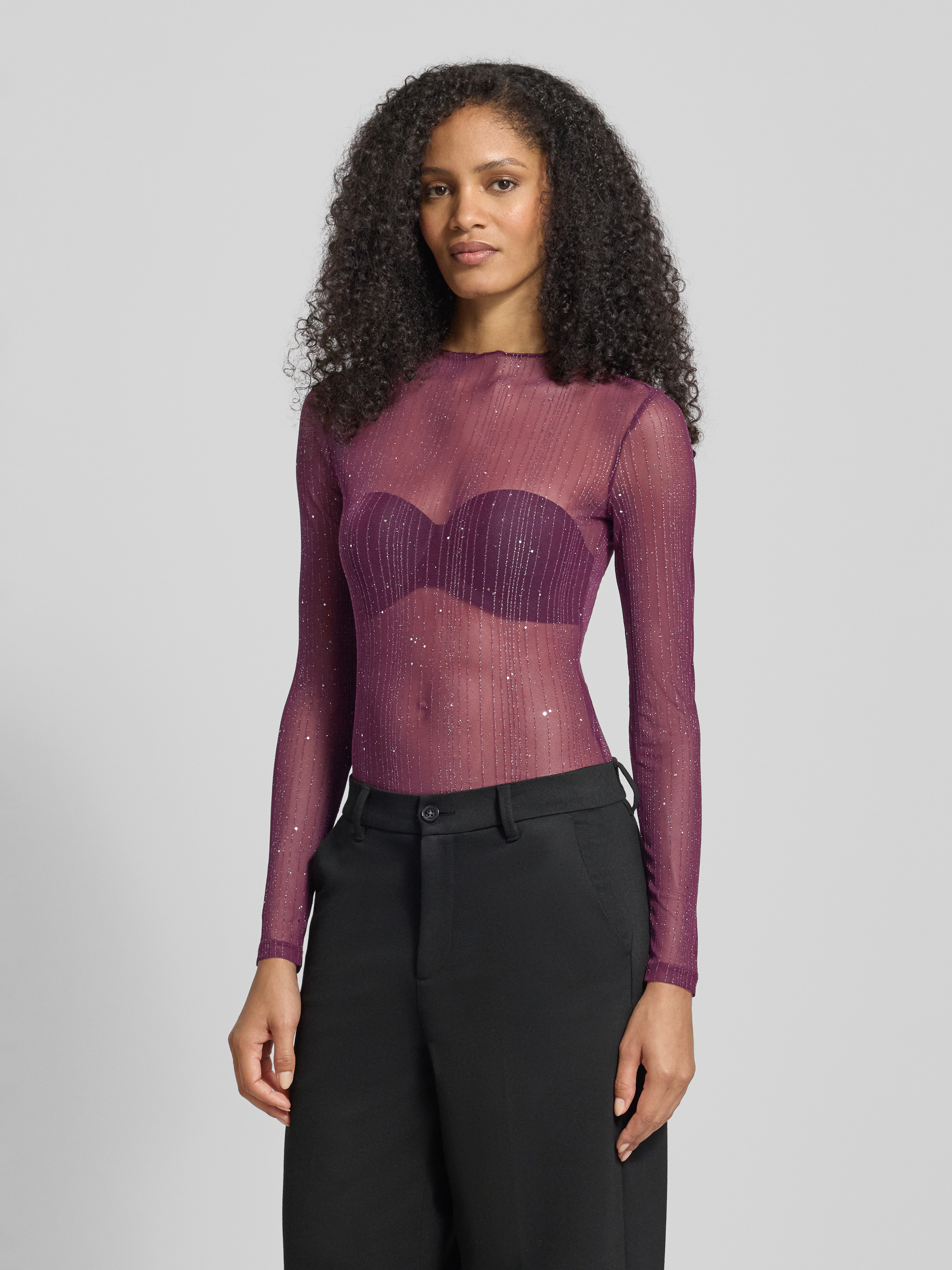Bluzka z długim rękawem o półprzezroczystym designie model ‘TURNO’ - śliwkowy