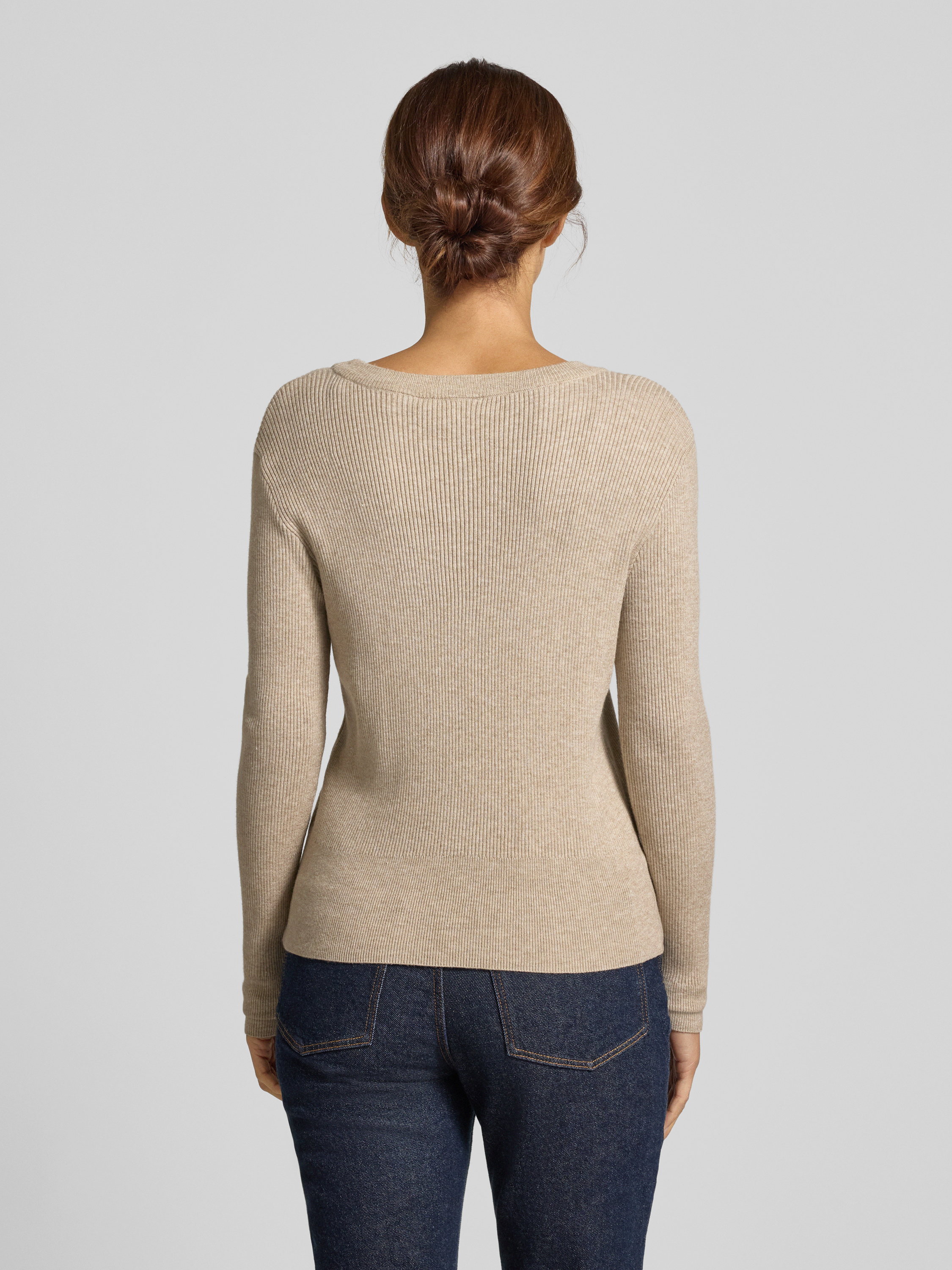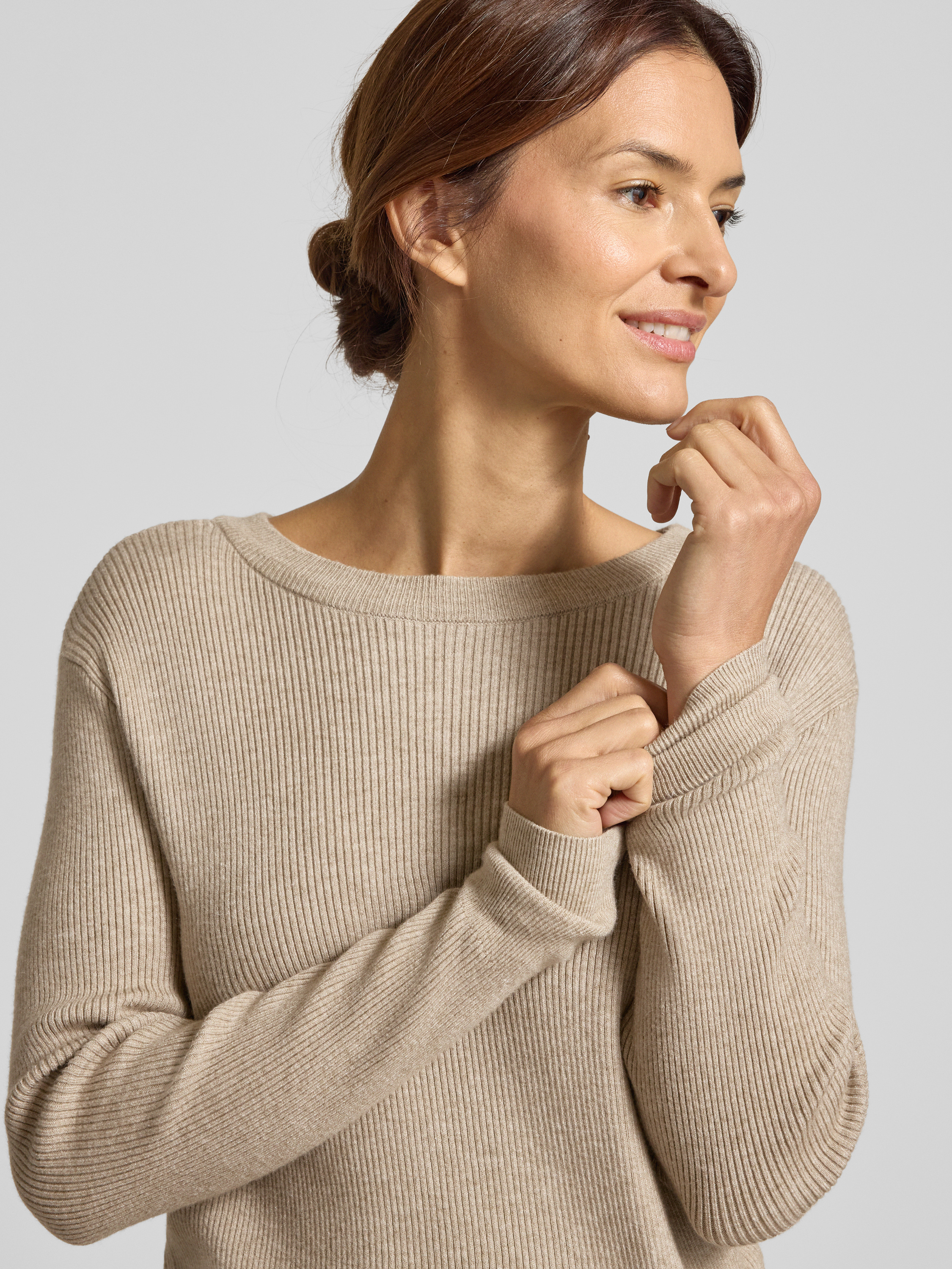 Bluzka z długim rękawem z imitacji dzianiny model ‘Vicomfy’ - beżowy