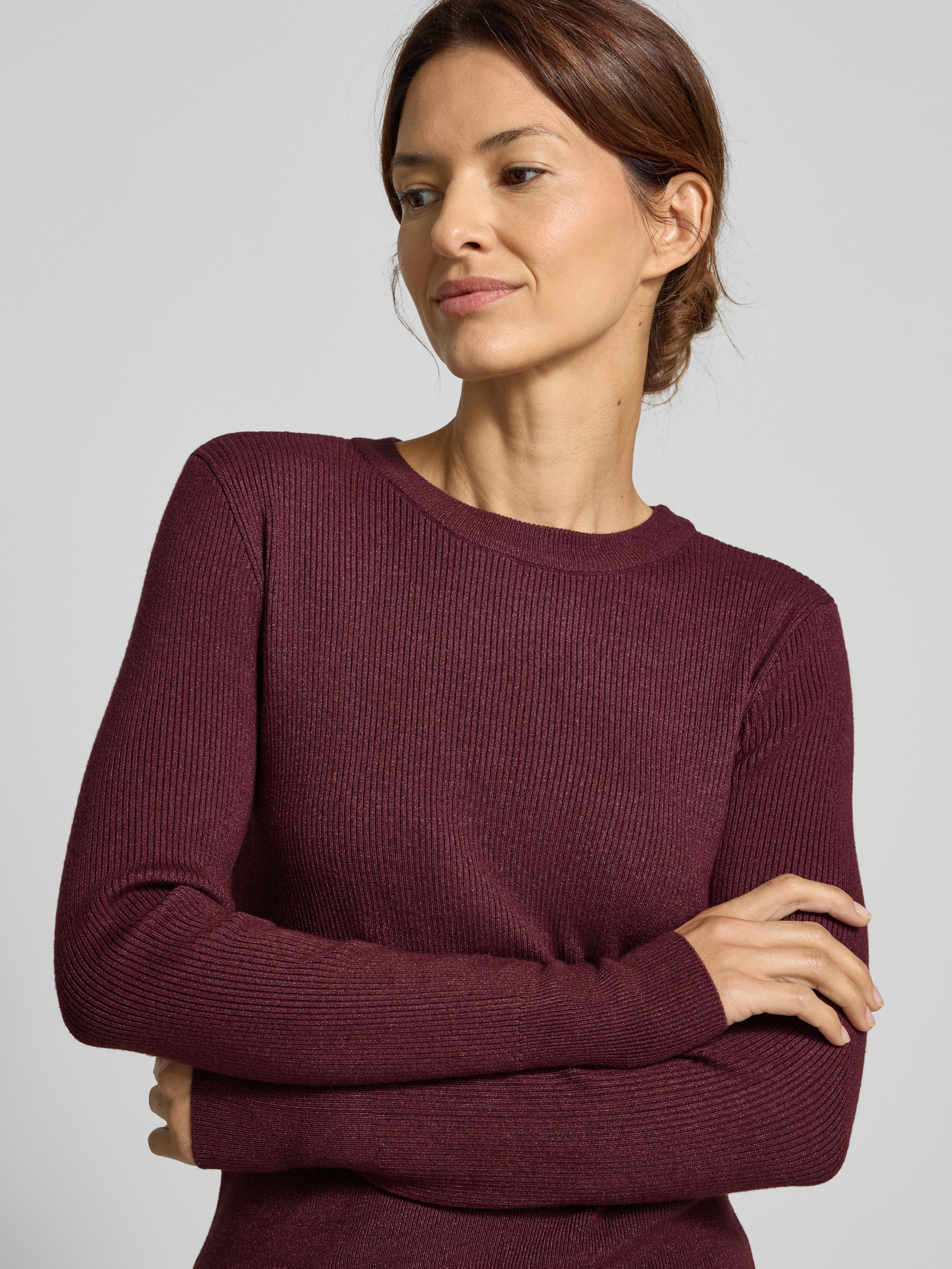 Bluzka z długim rękawem z imitacji dzianiny model ‘Vicomfy’ - śliwkowy