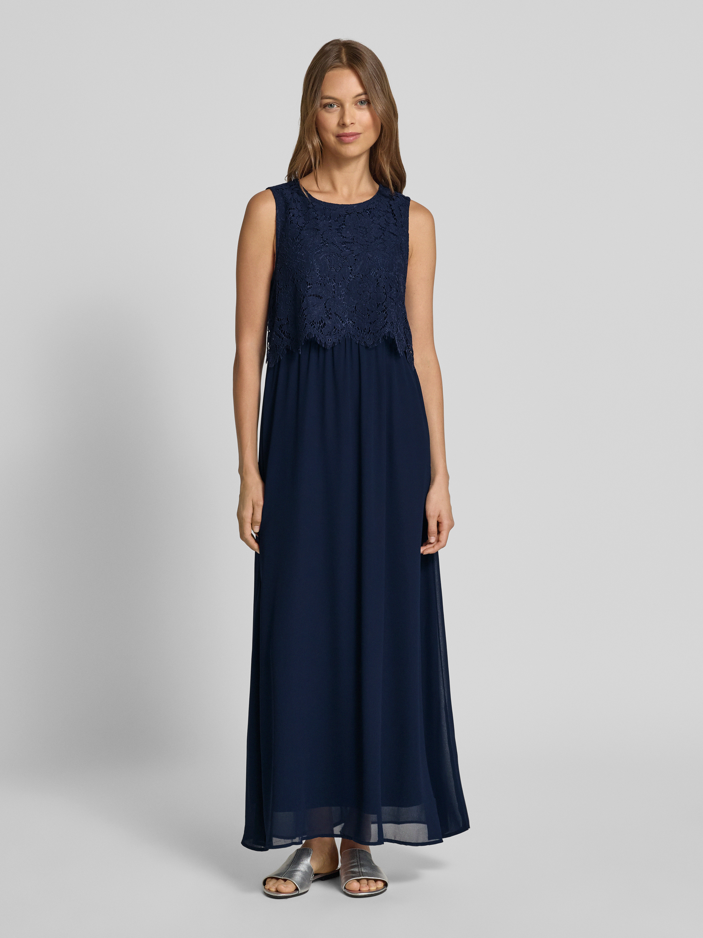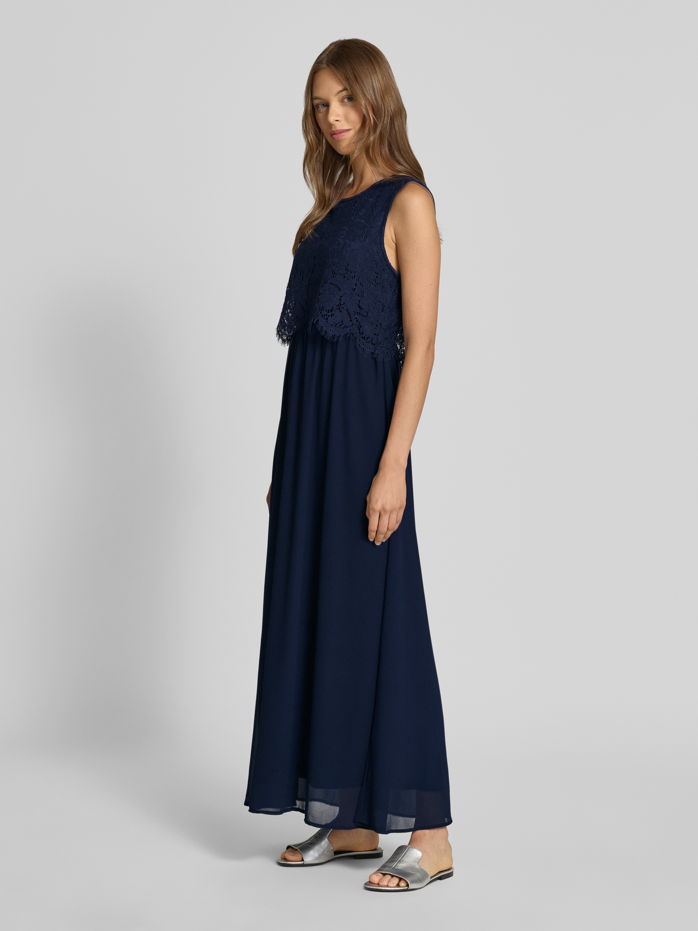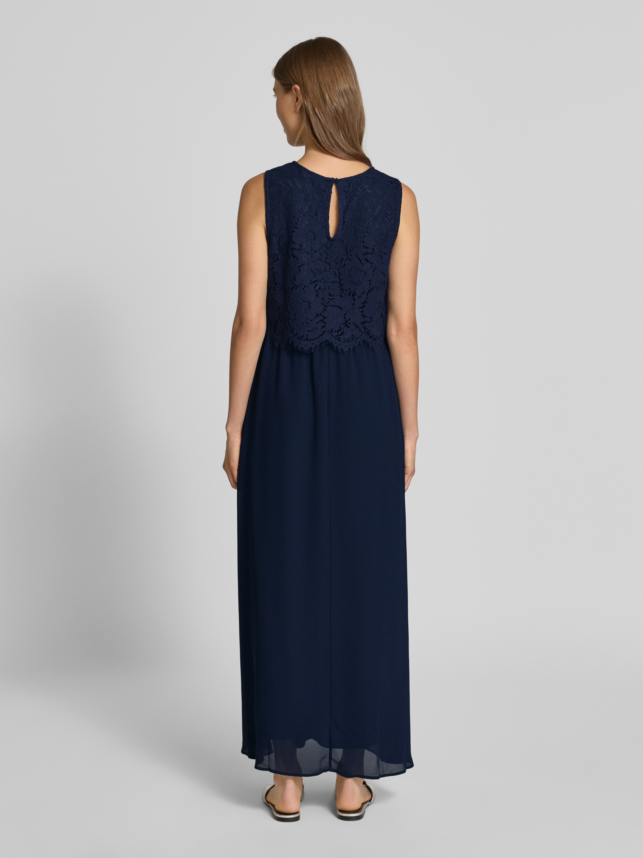 Długa sukienka z koronką i wycięciem z tyłu - granatowy