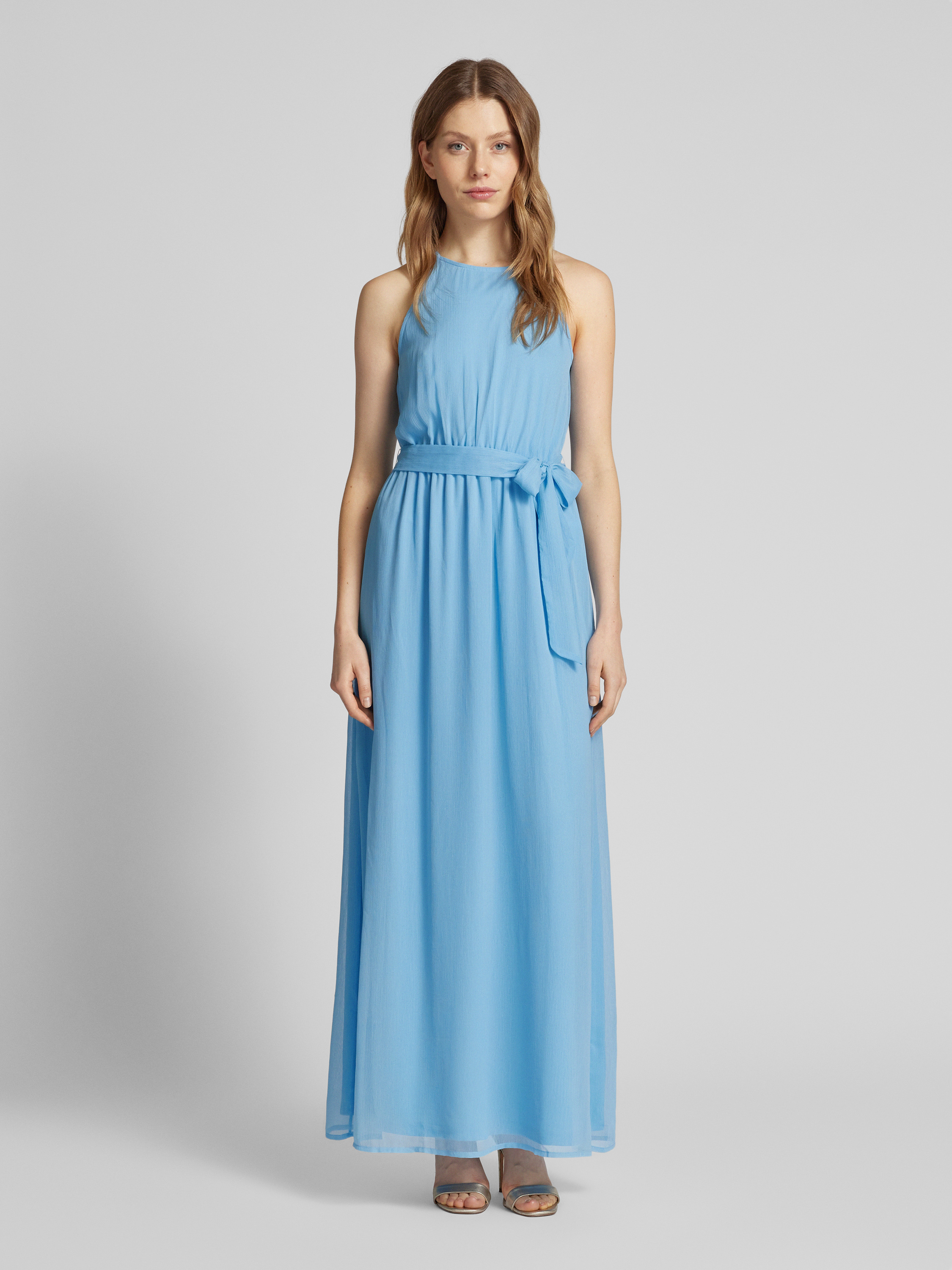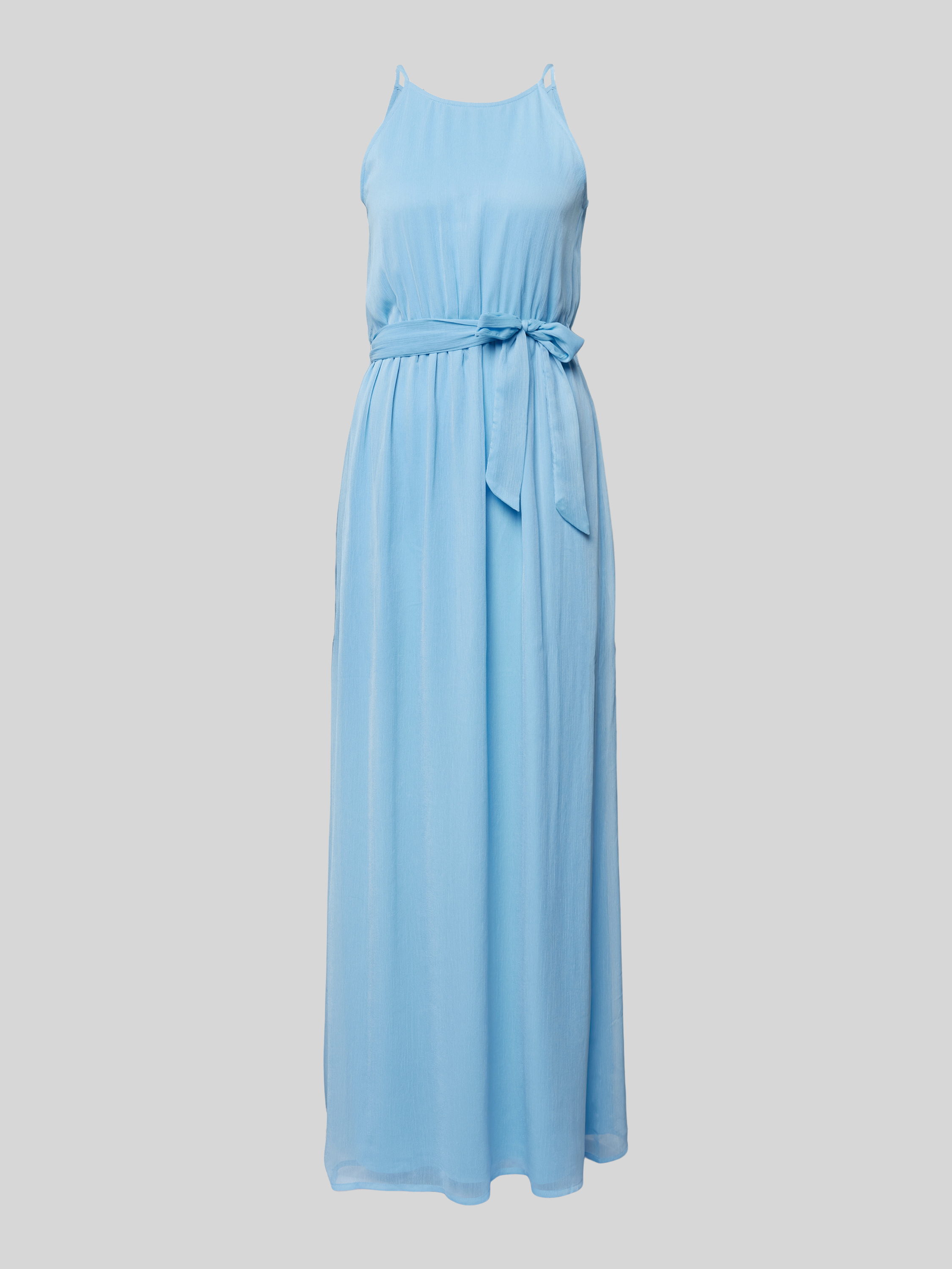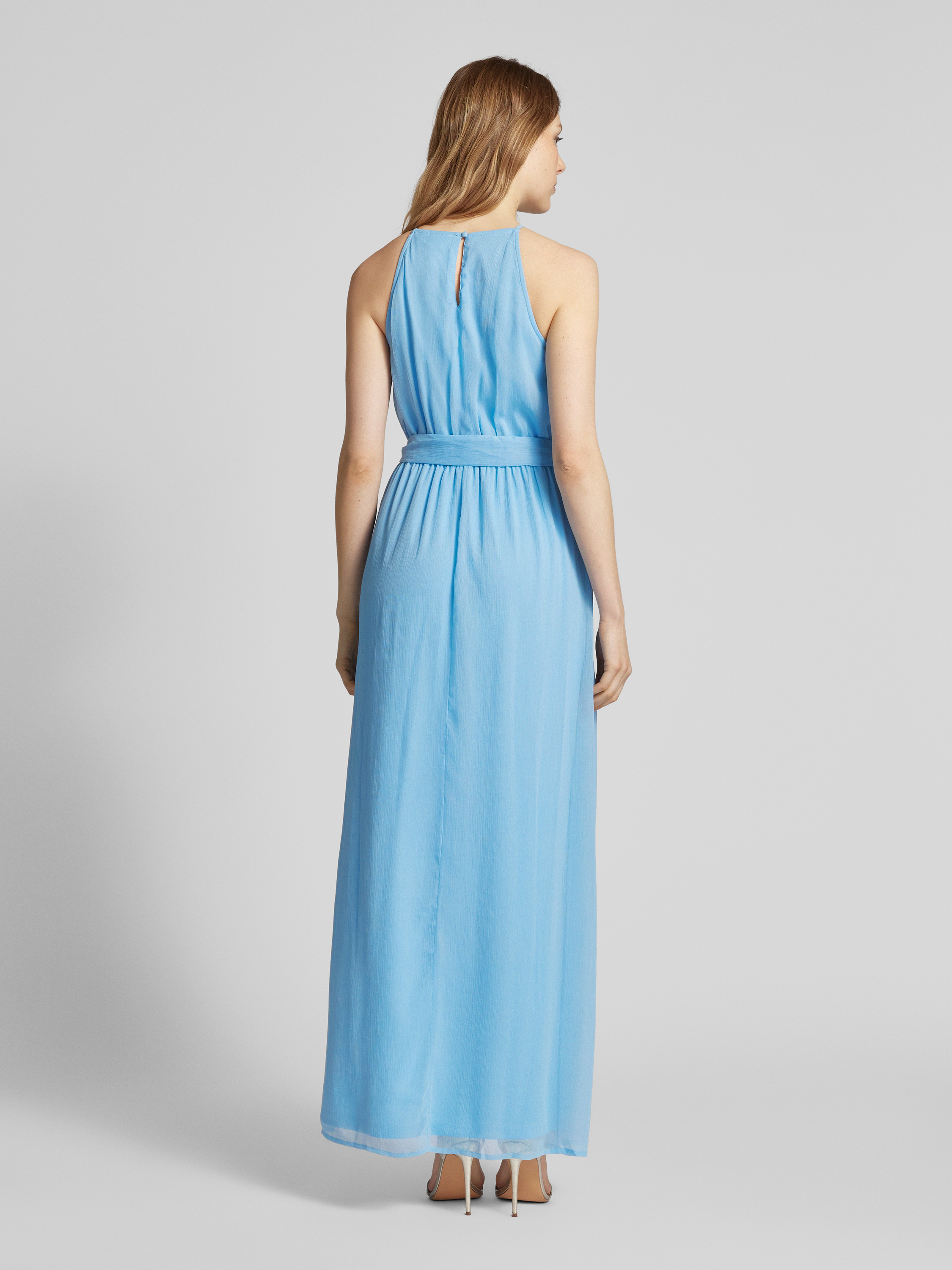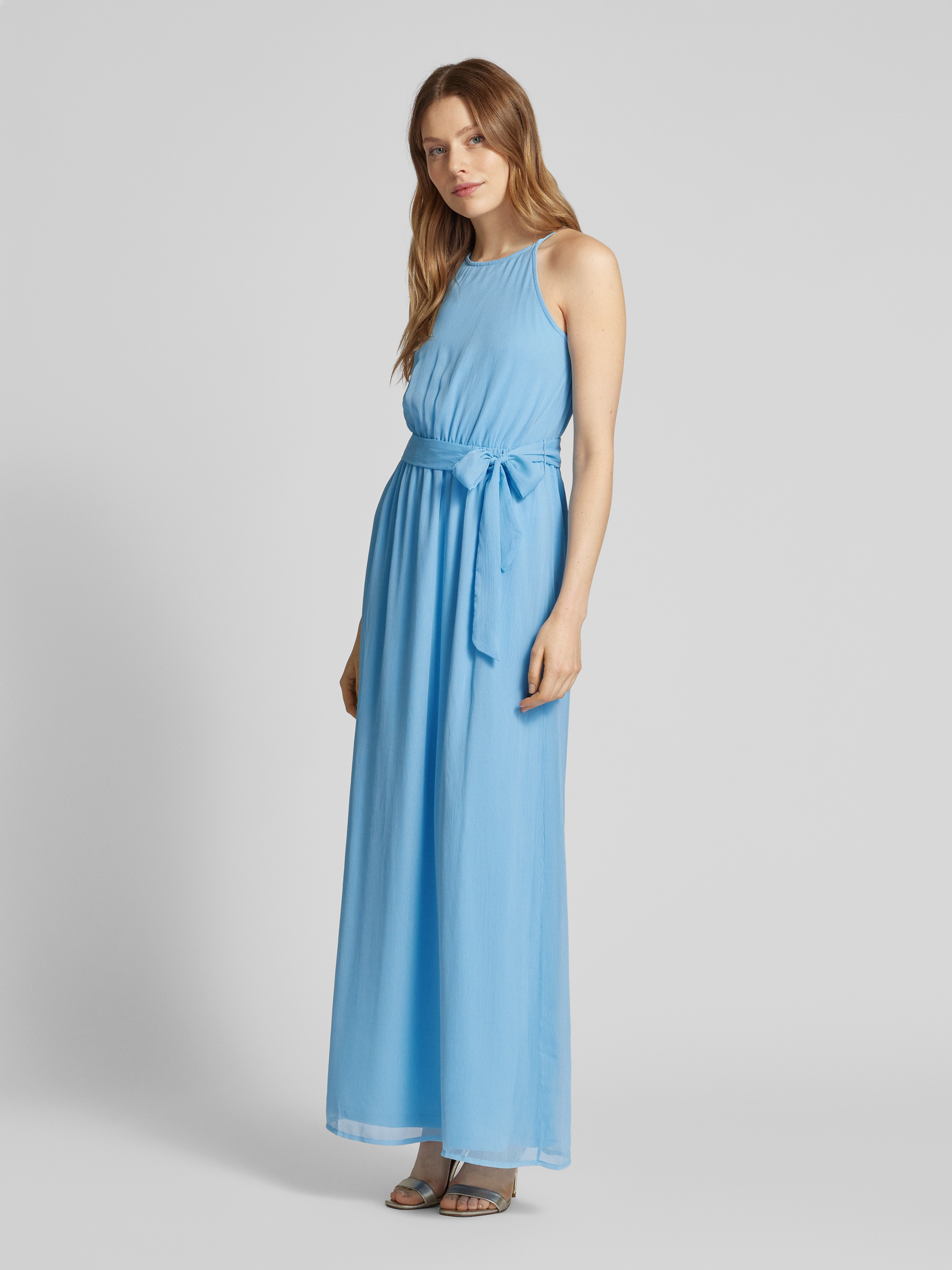 Długa sukienka z wiązanym paskiem model ‘FALIA’ - jasnoniebieski