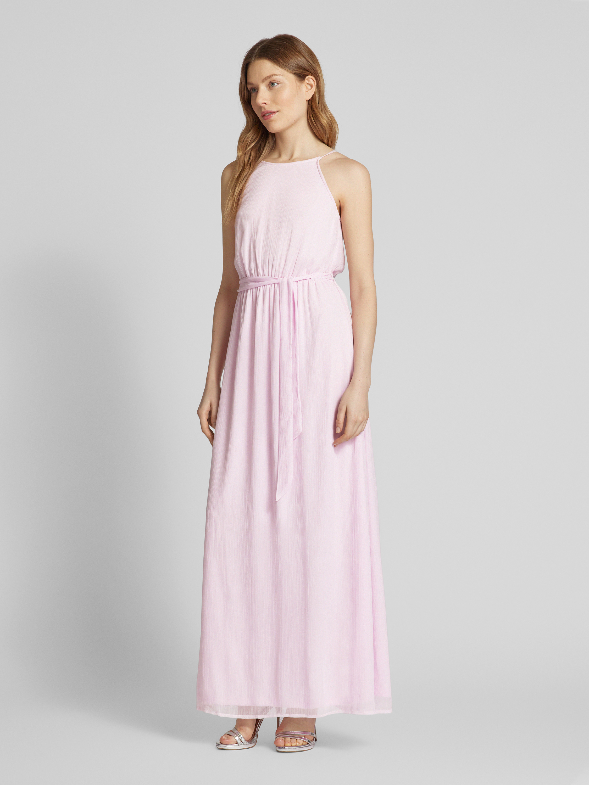 Długa sukienka z wiązanym paskiem model ‘FALIA’ - różowy