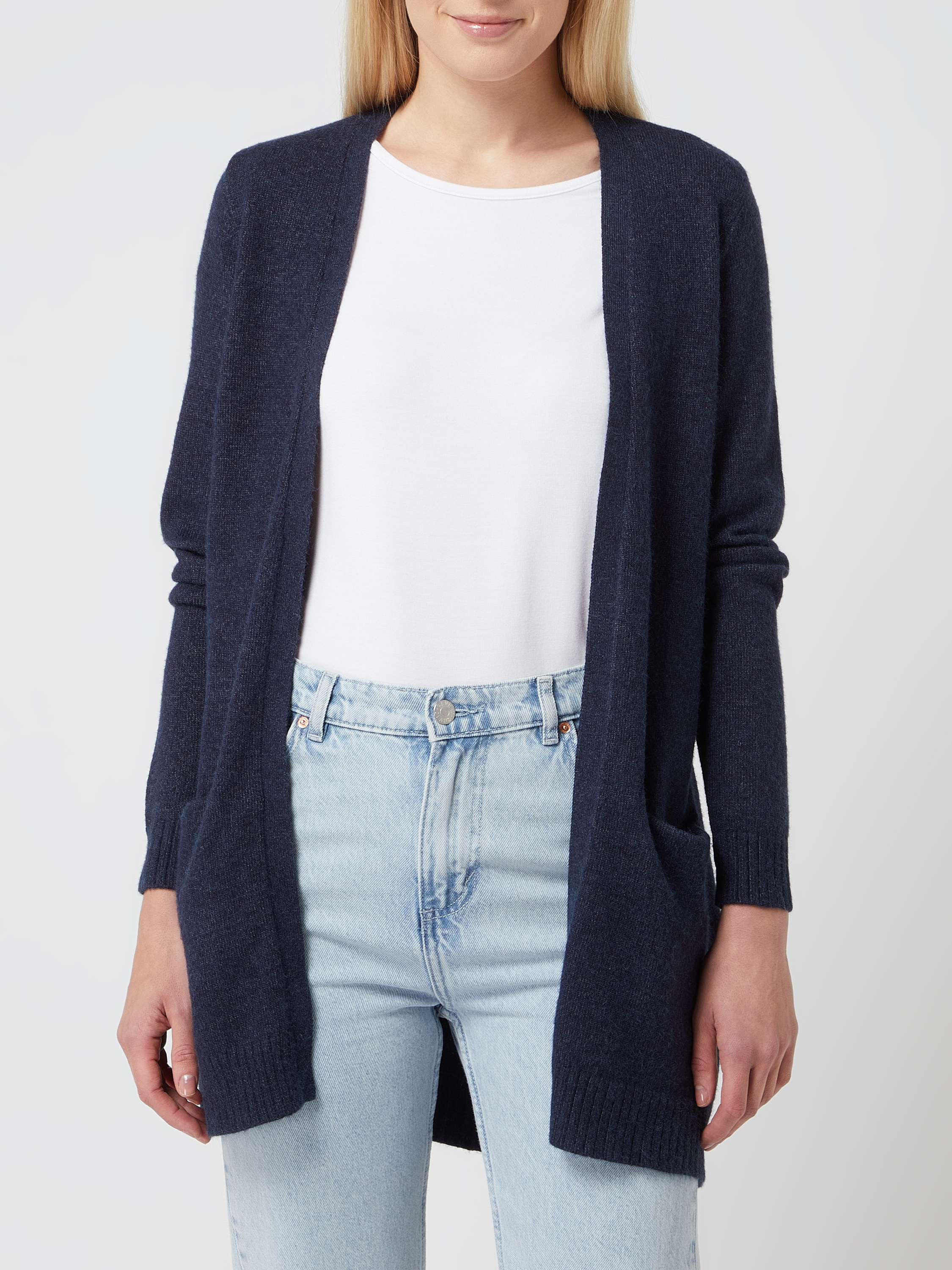 Kardigan z dzianiny z wpuszczanymi kieszeniami model ‘VIRIL’ - ciemnoniebieski