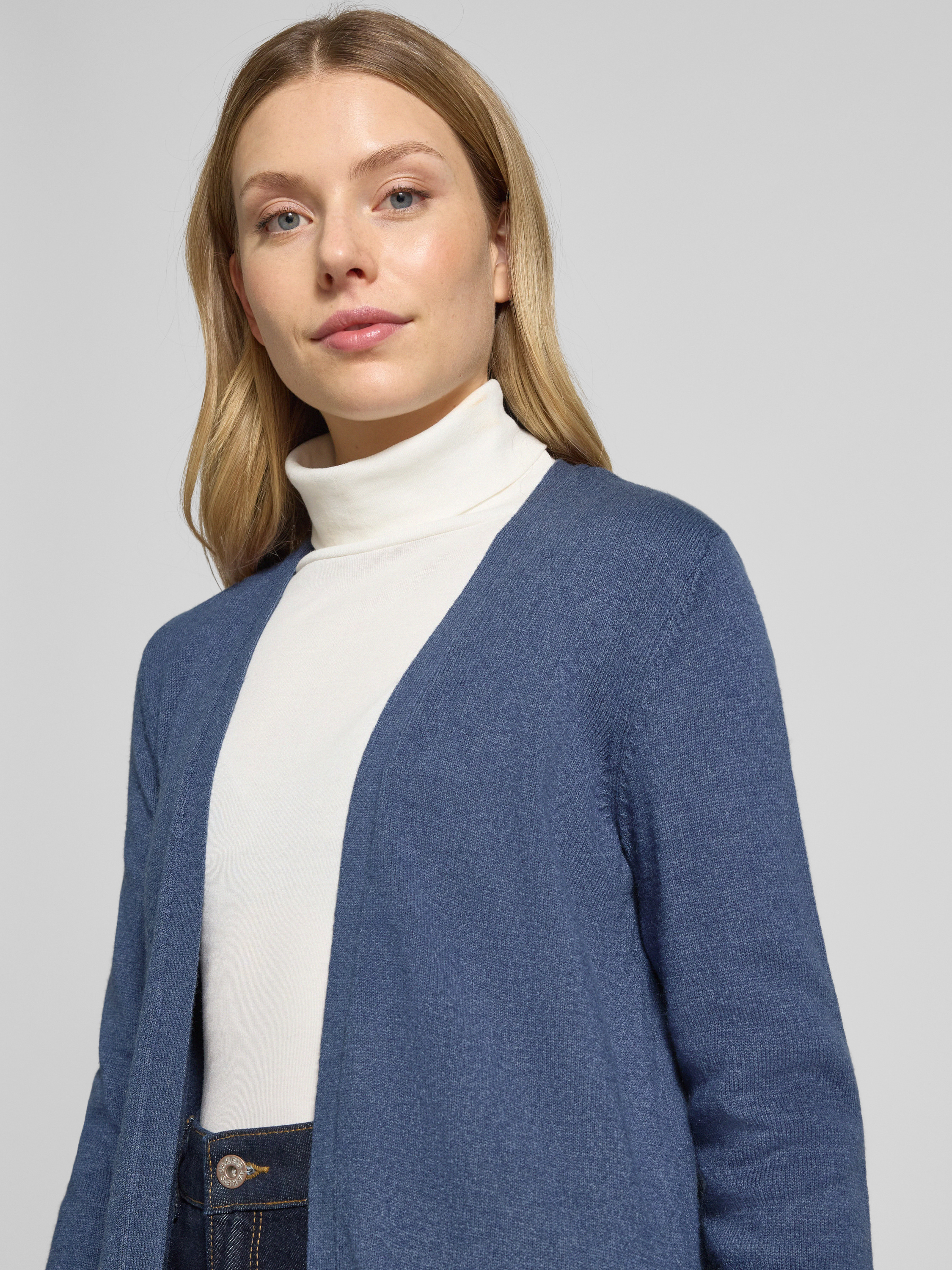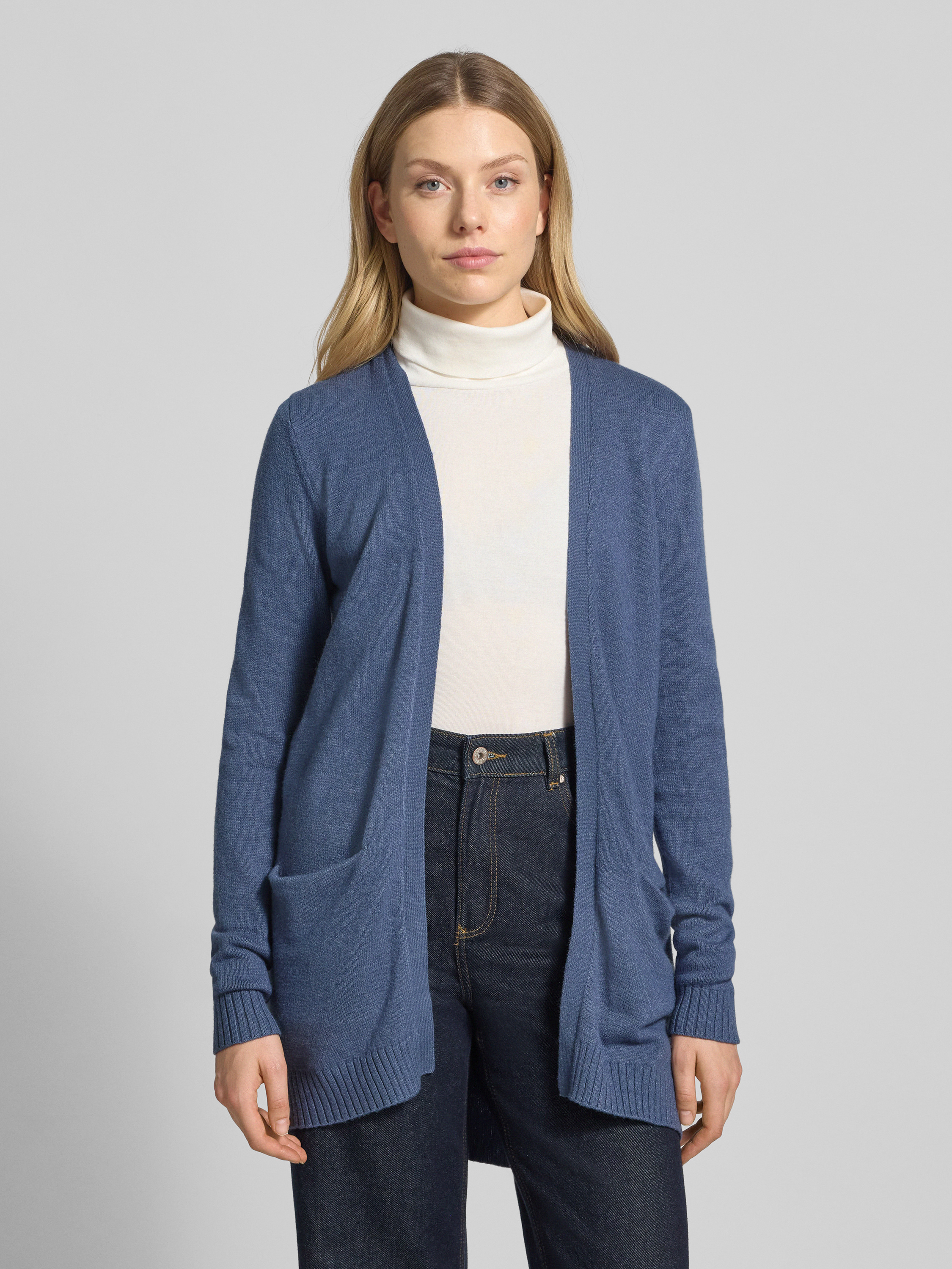Kurtka z dzianiny z przodem bez zapięcia model ‘RIL’ - szaroniebieski