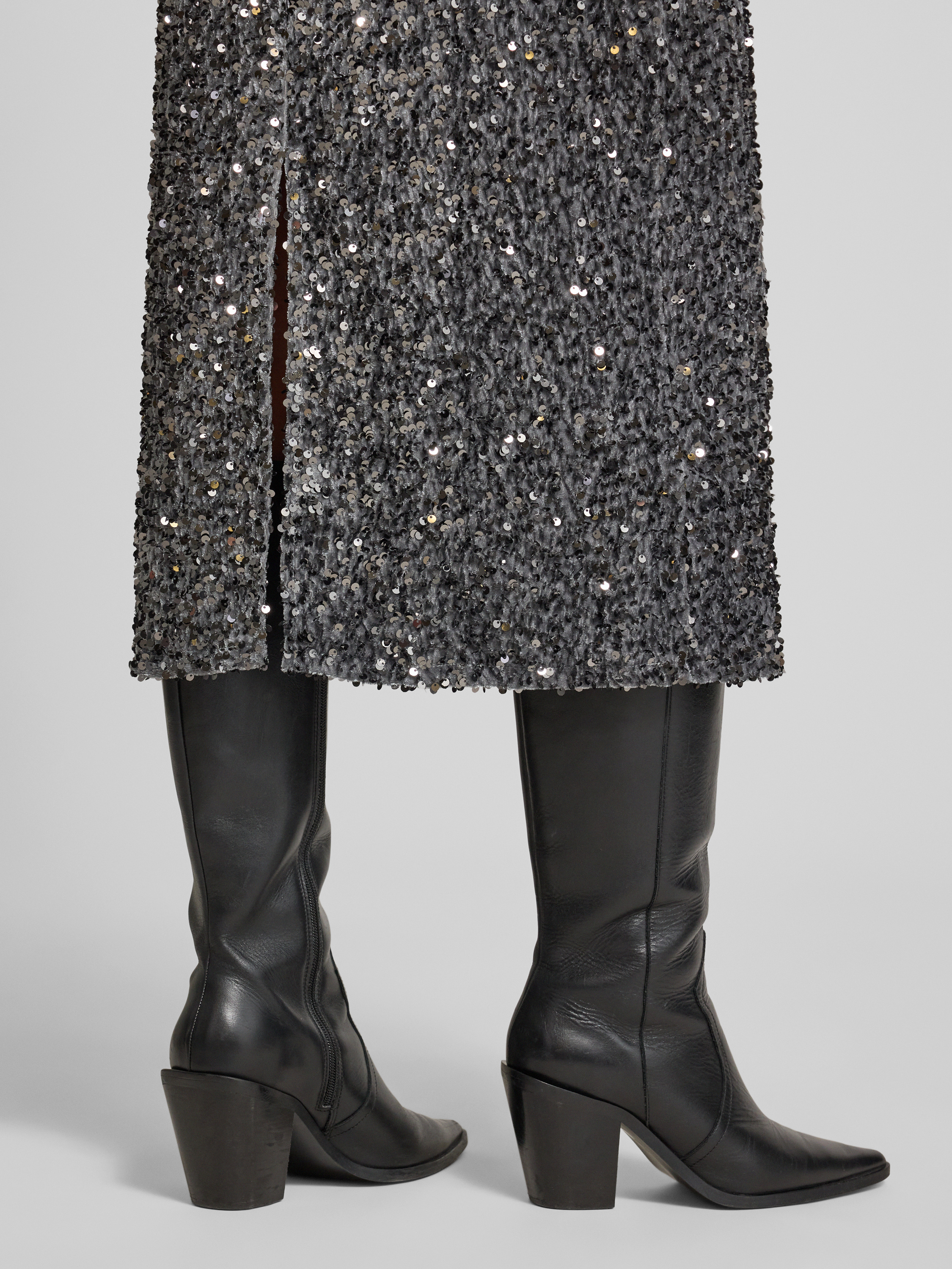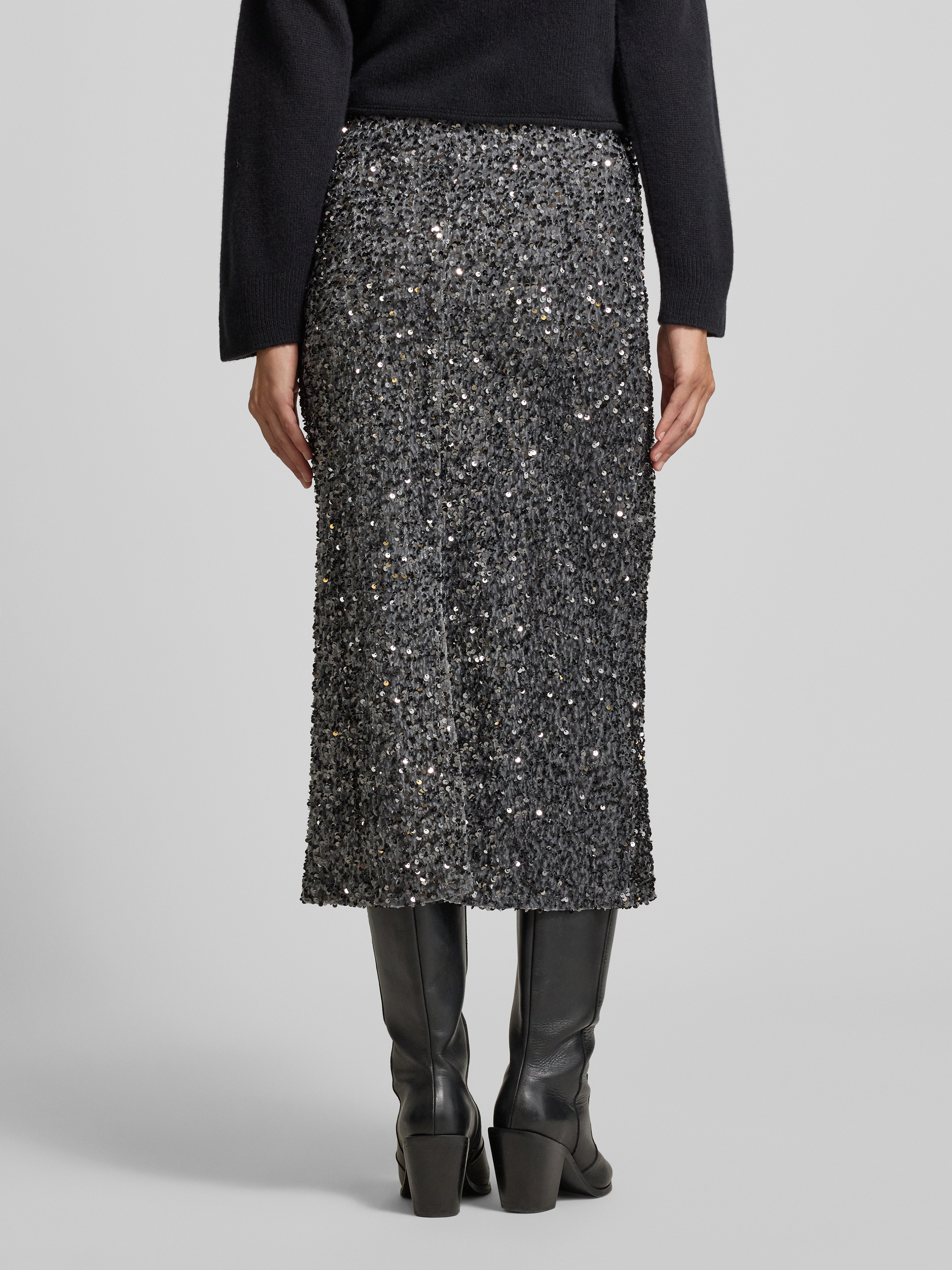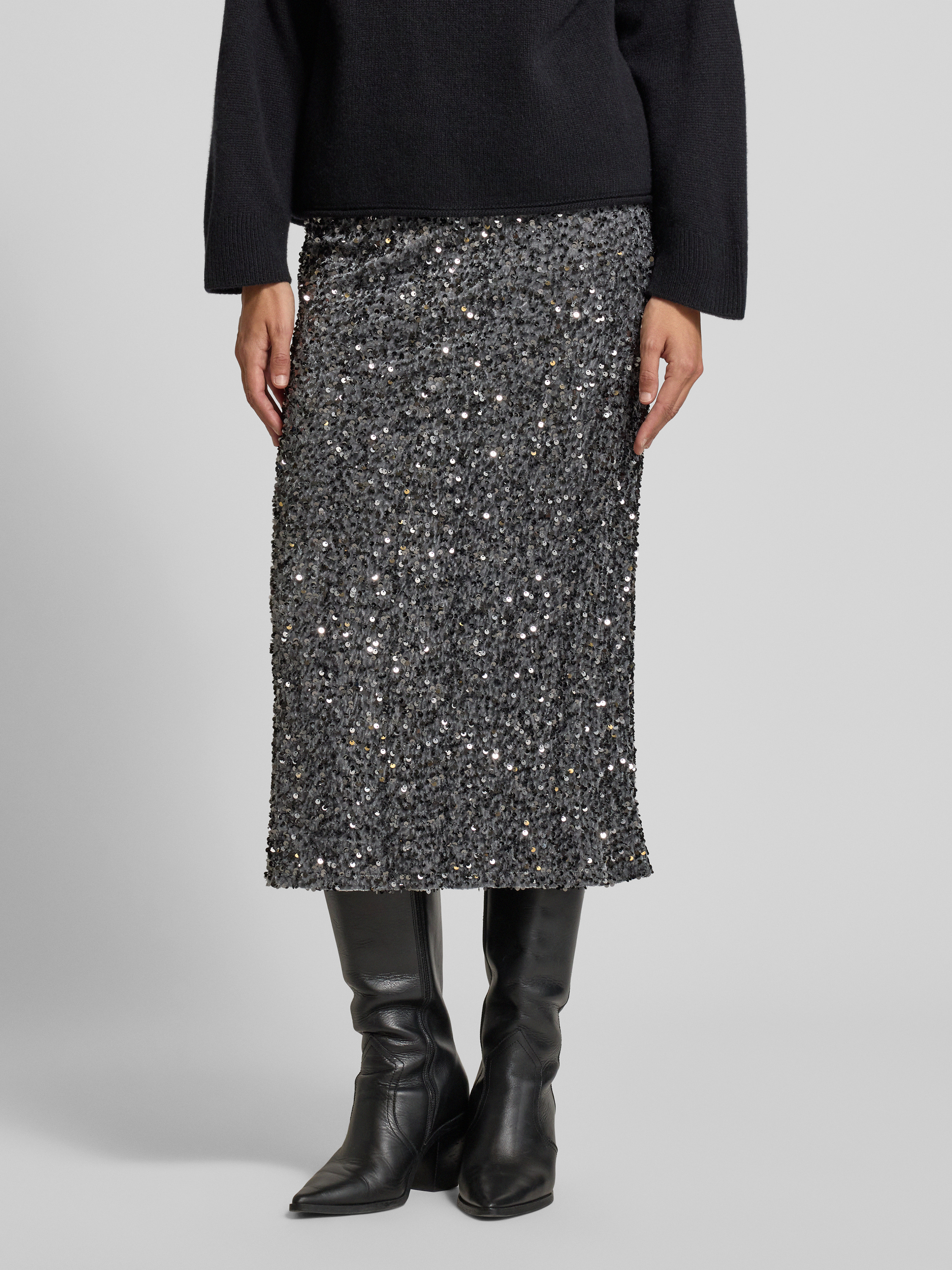 Spódnica midi z wysokim stanem i cekinami model ‘FAITH’ - srebrny