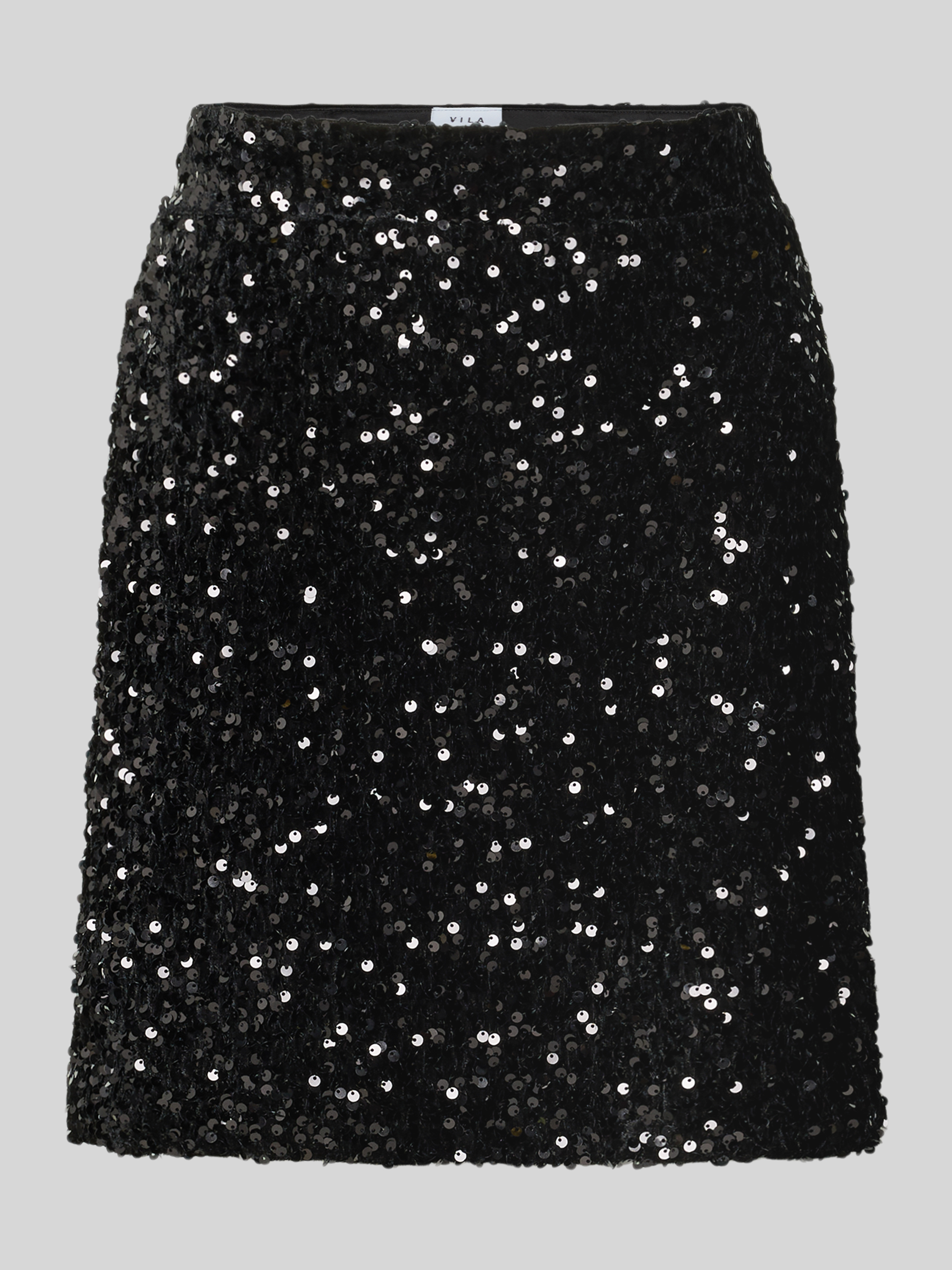 Spódnica mini z wysokim stanem i cekinami model ‘FAITH’ - czarny