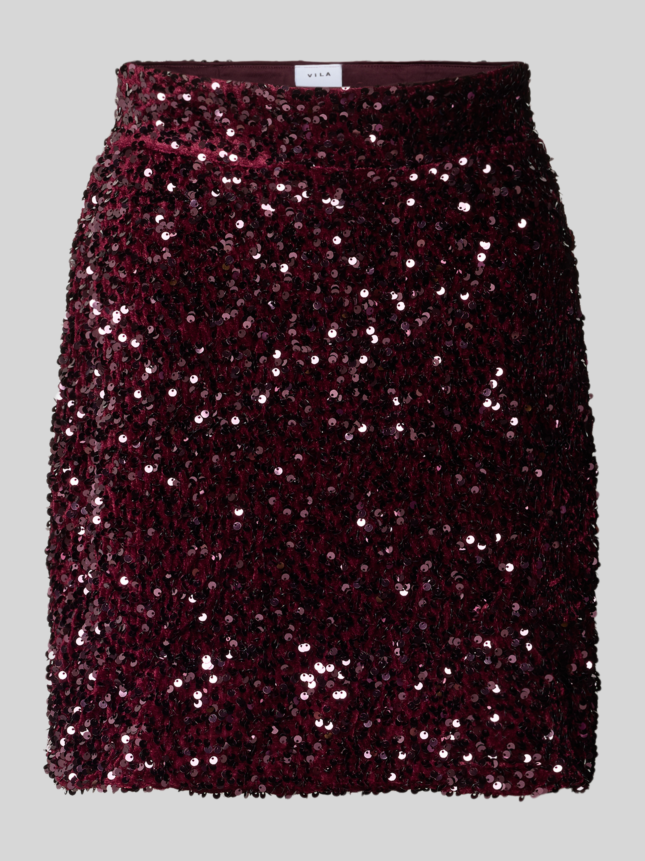 Spódnica mini z wysokim stanem i cekinami model ‘FAITH’ - śliwkowy