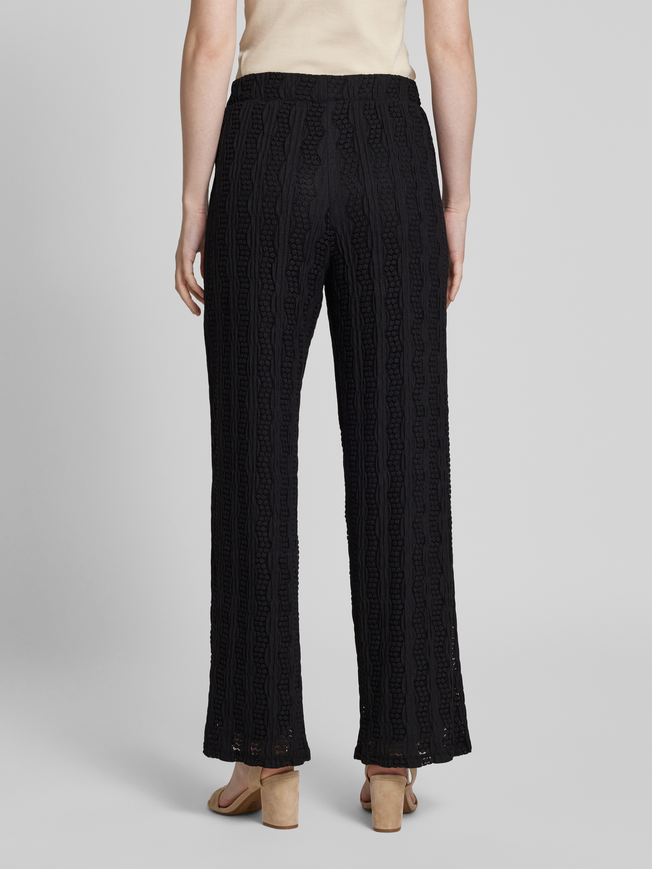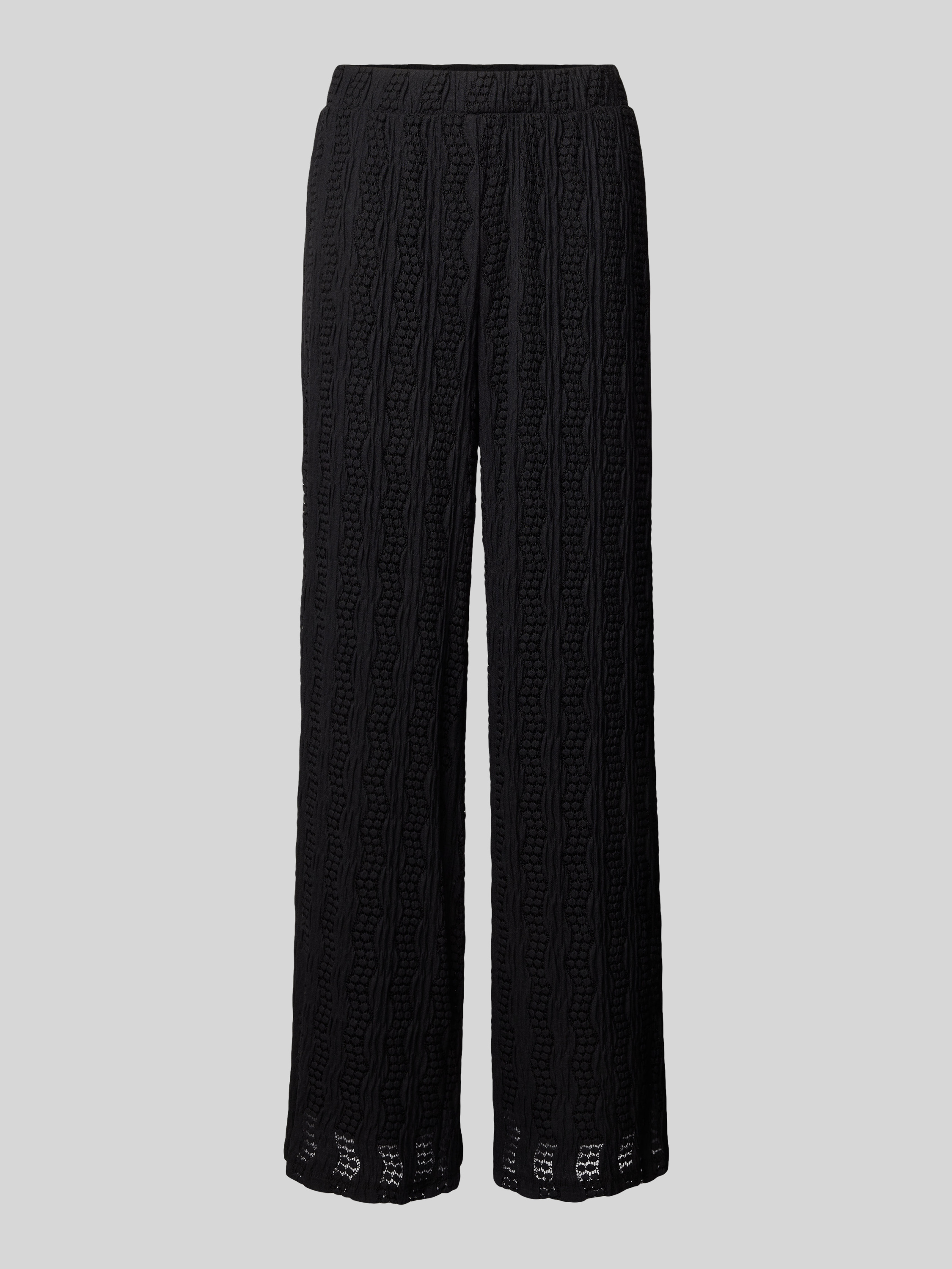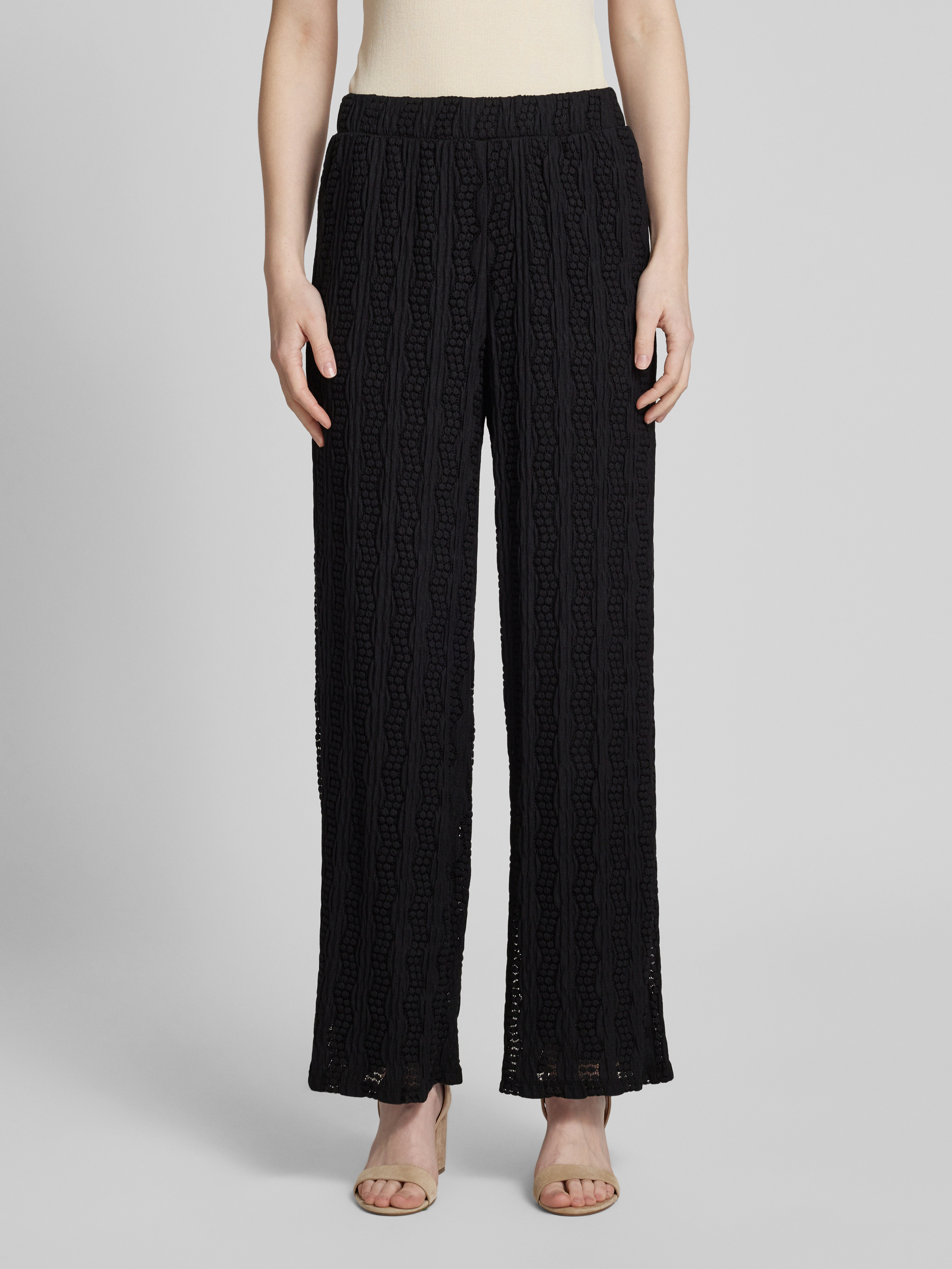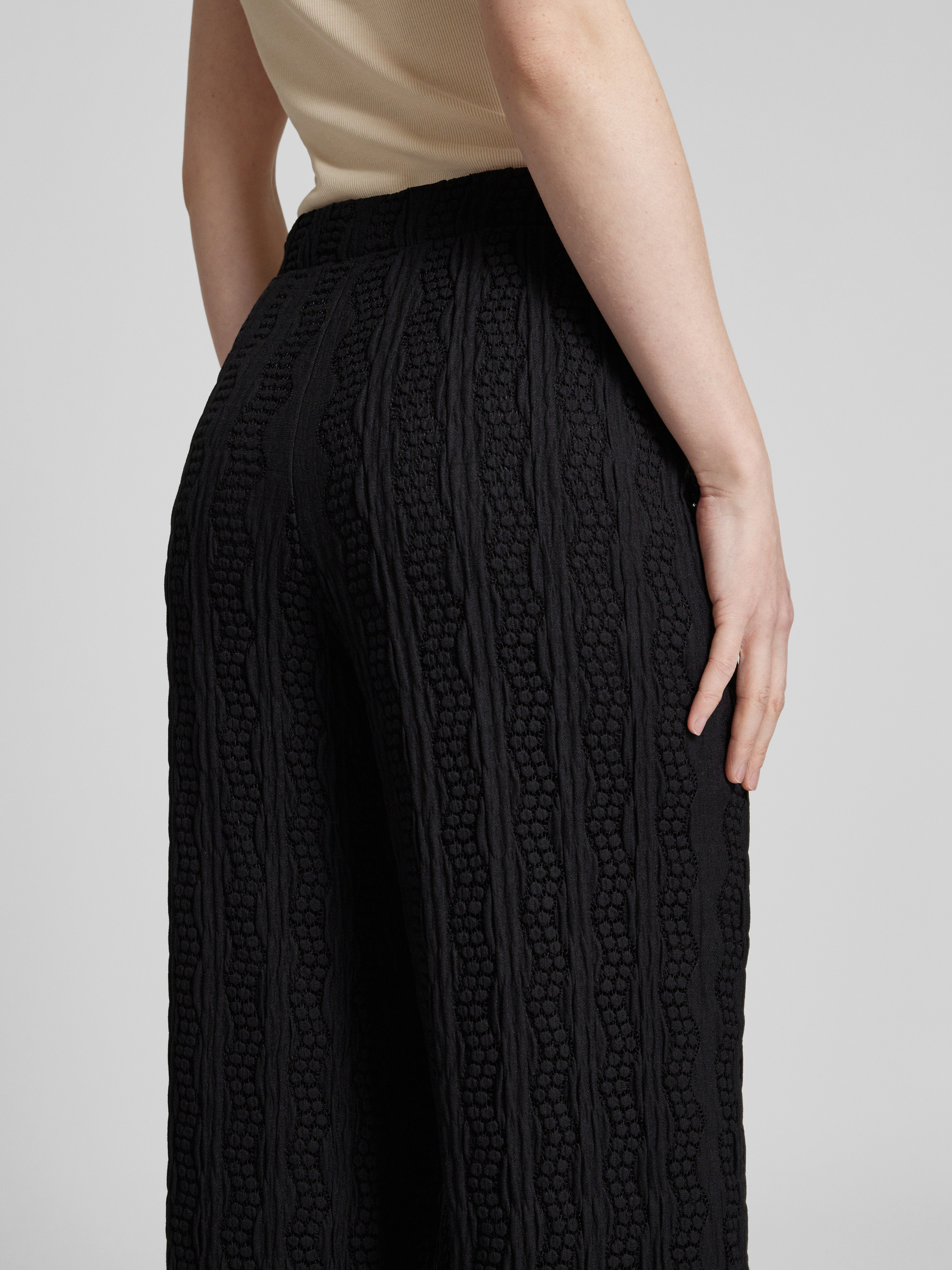 Spodnie materiałowe z szeroką nogawką i fakturowanym wzorem model ‘LUMENA’ - czarny