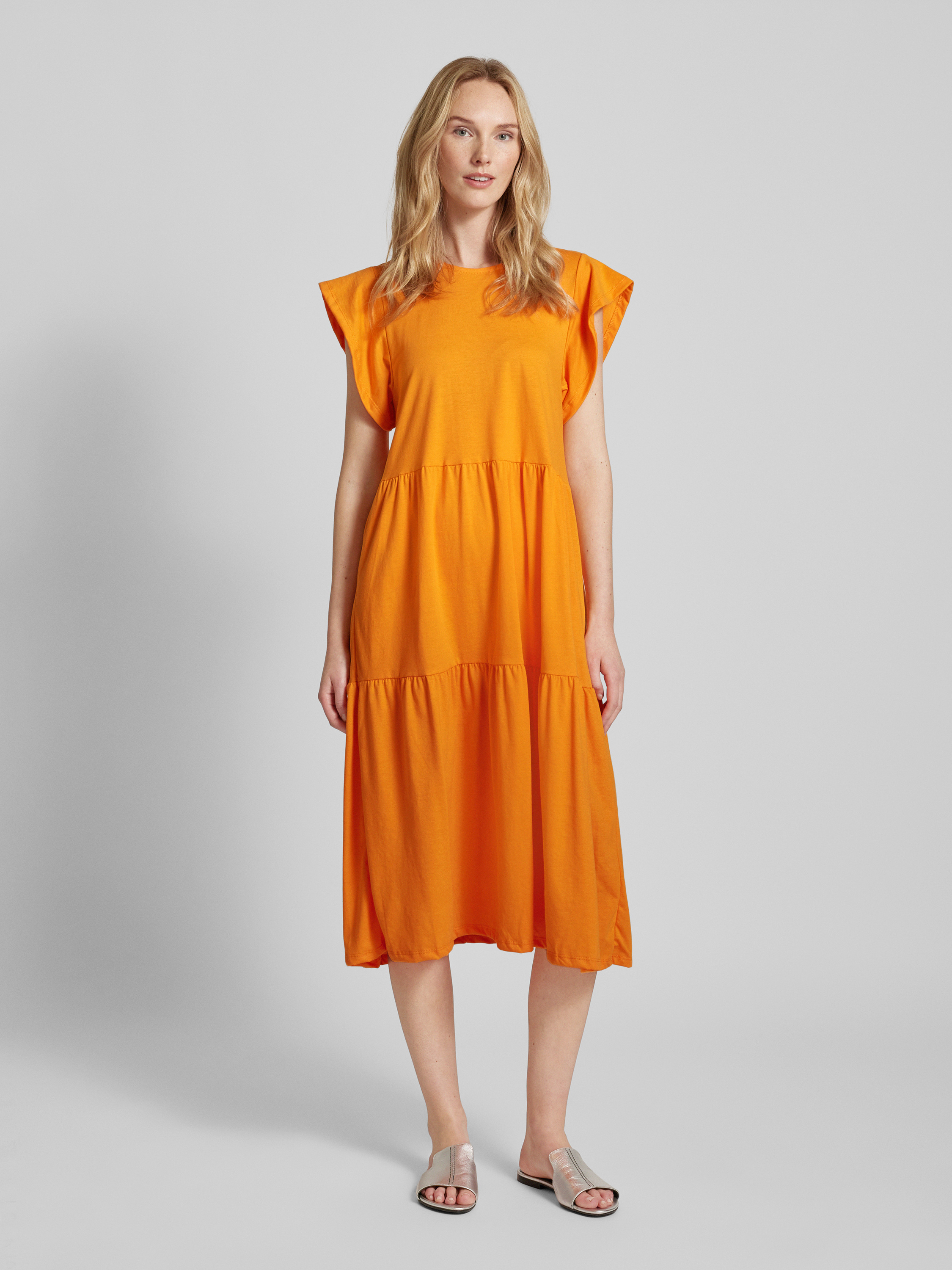 Sukienka midi z krótkim rękawem model ‘SUMMER’ - pomarańczowy