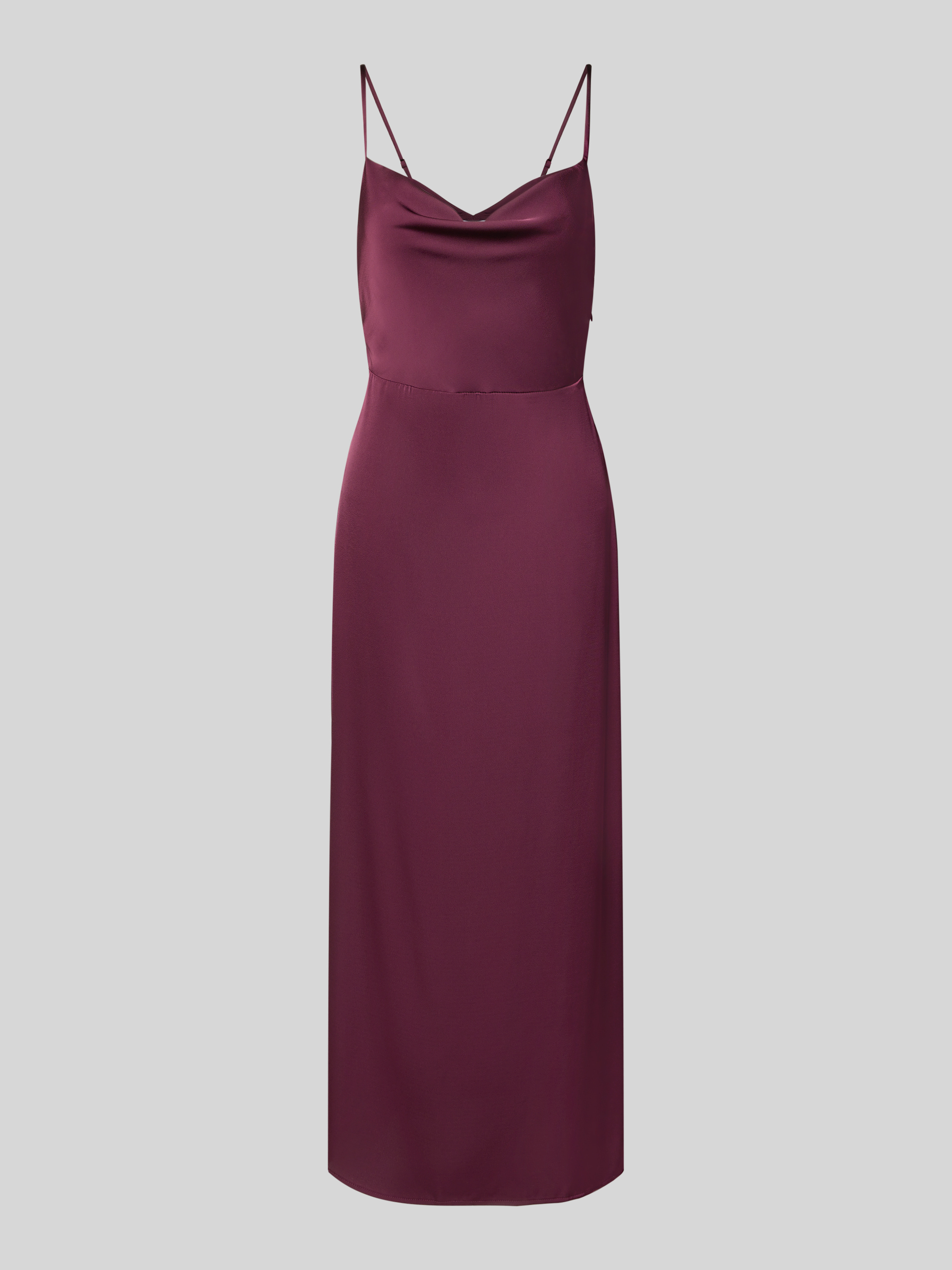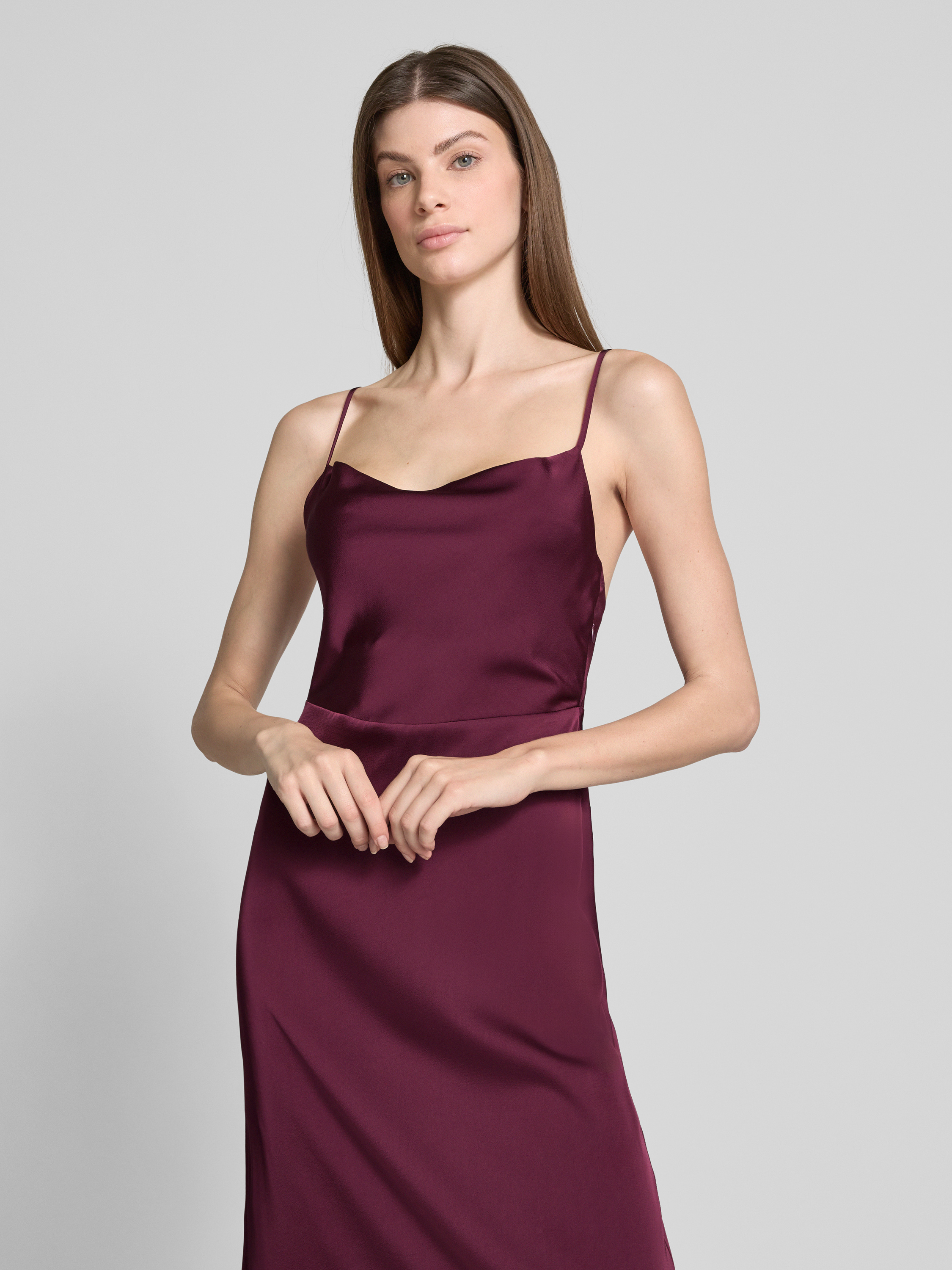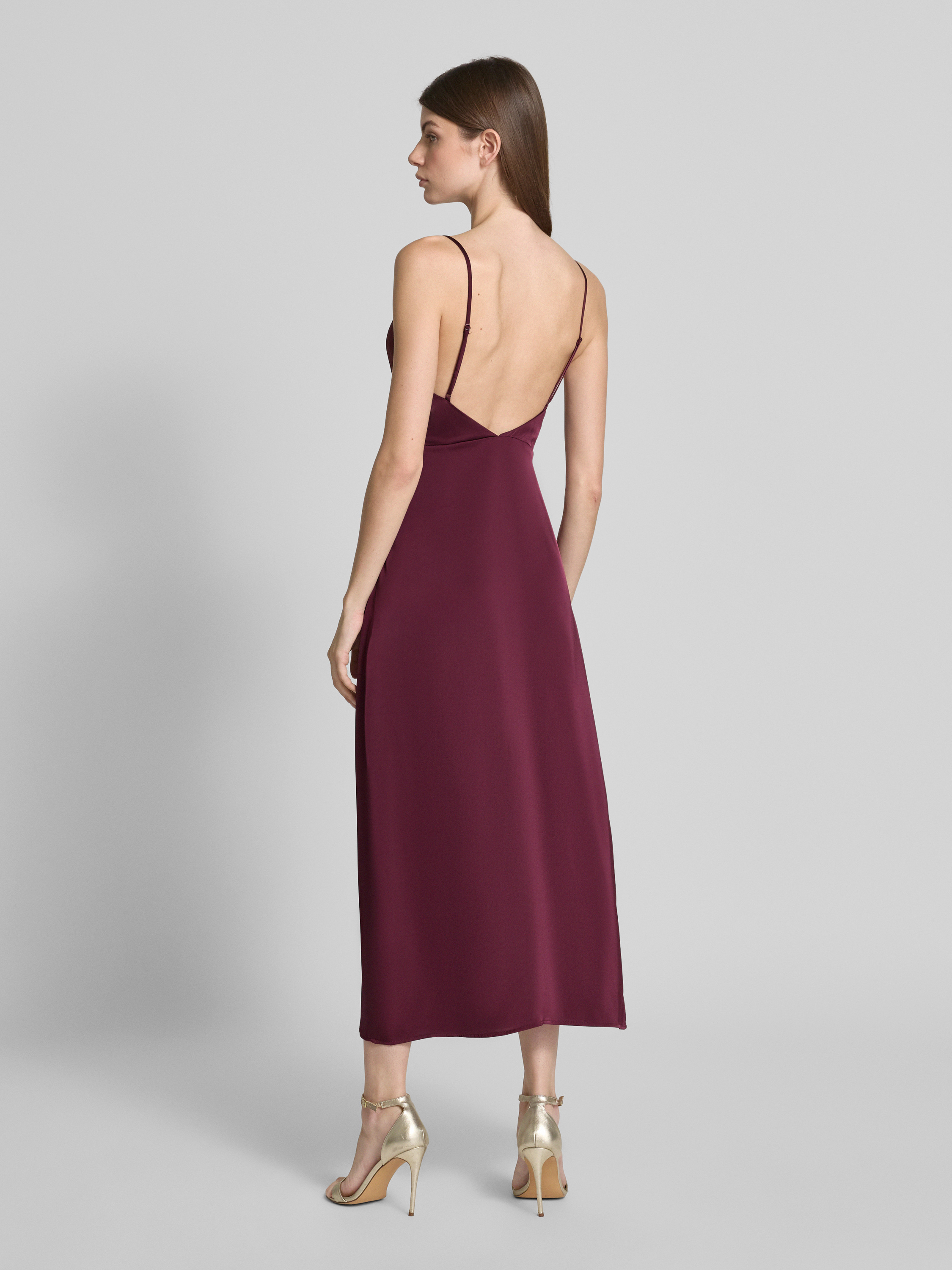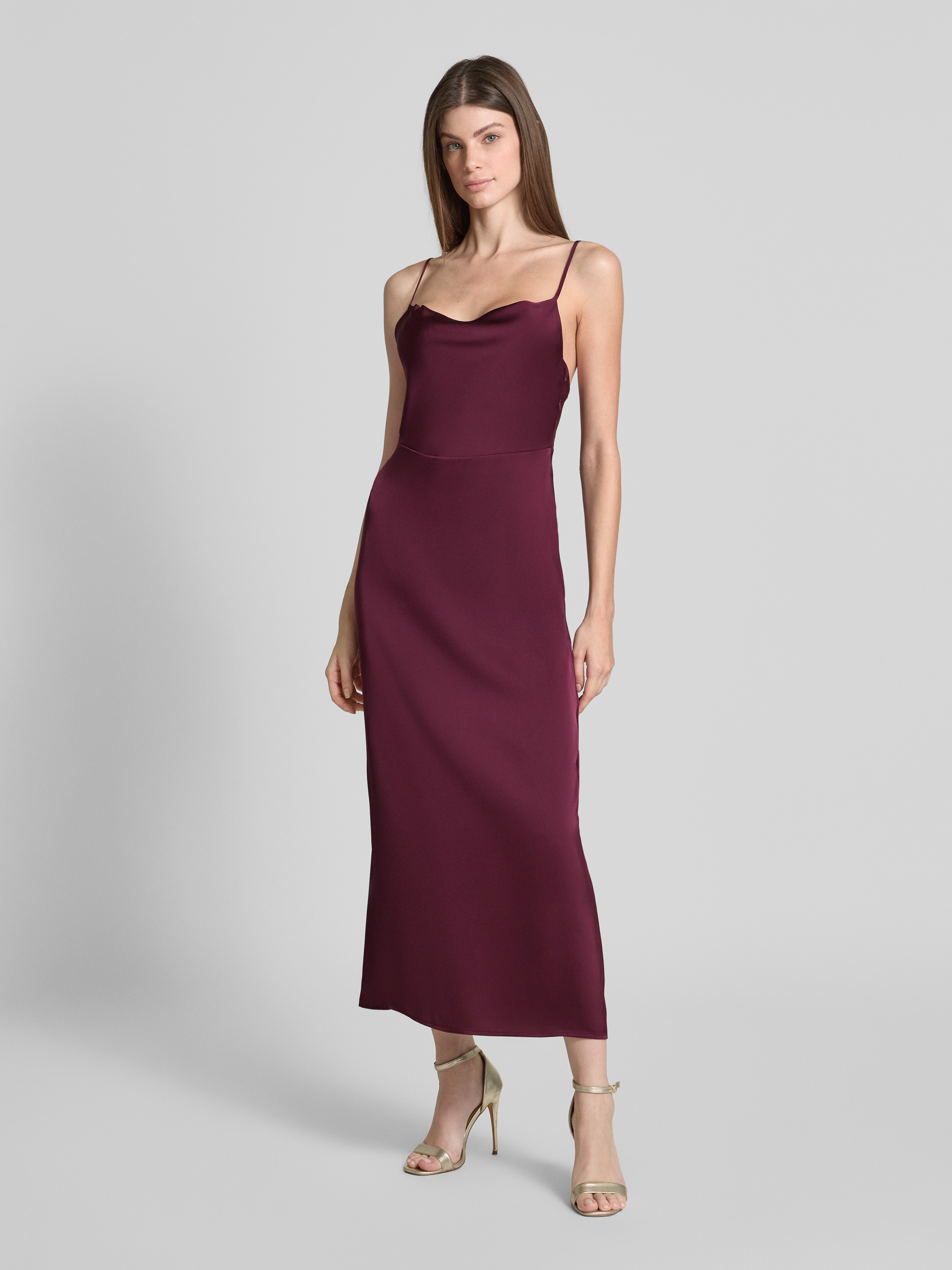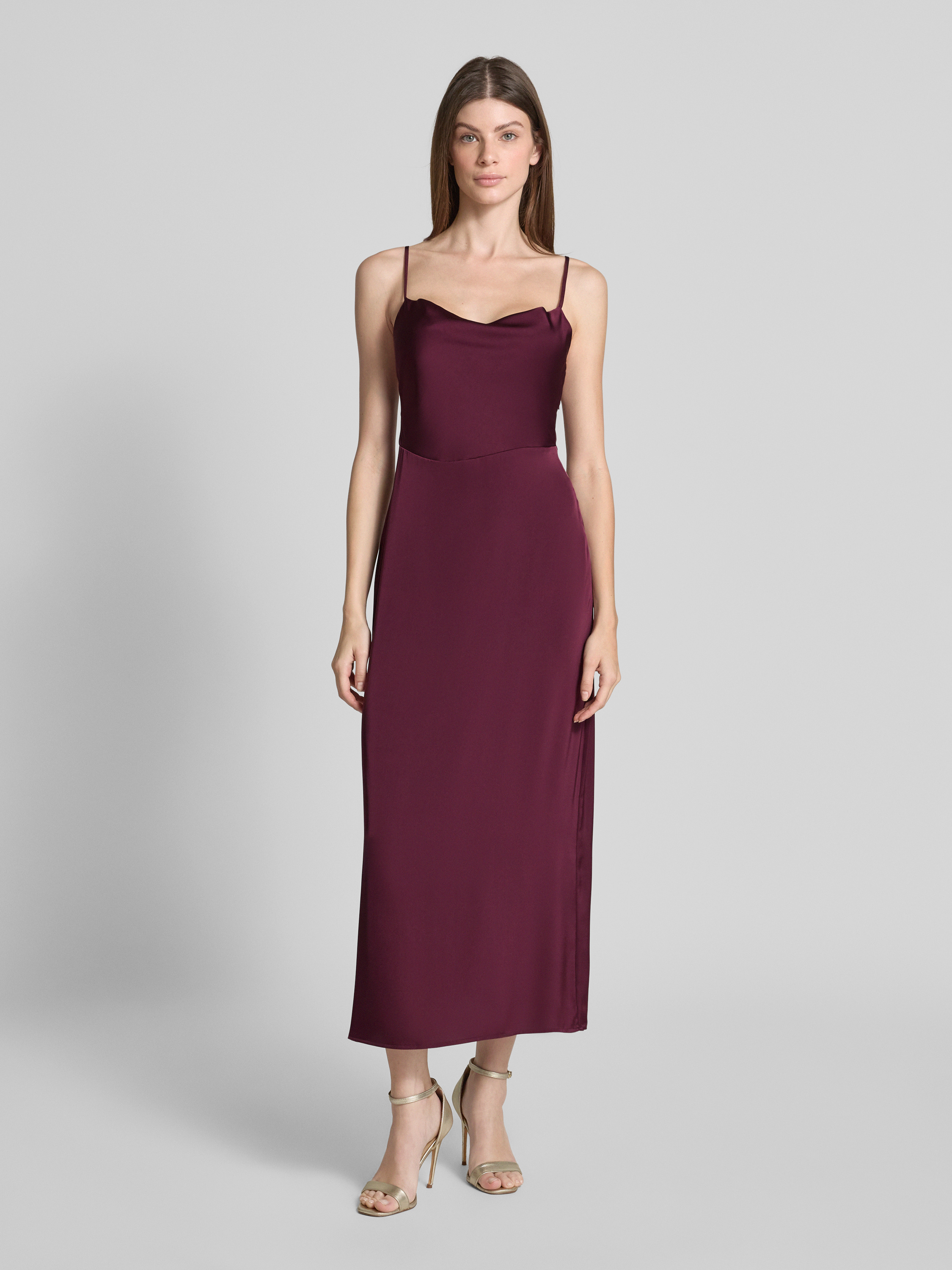 Sukienka midi z satyny z lejącym dekoltem model ‘RAVENNA’ - śliwkowy