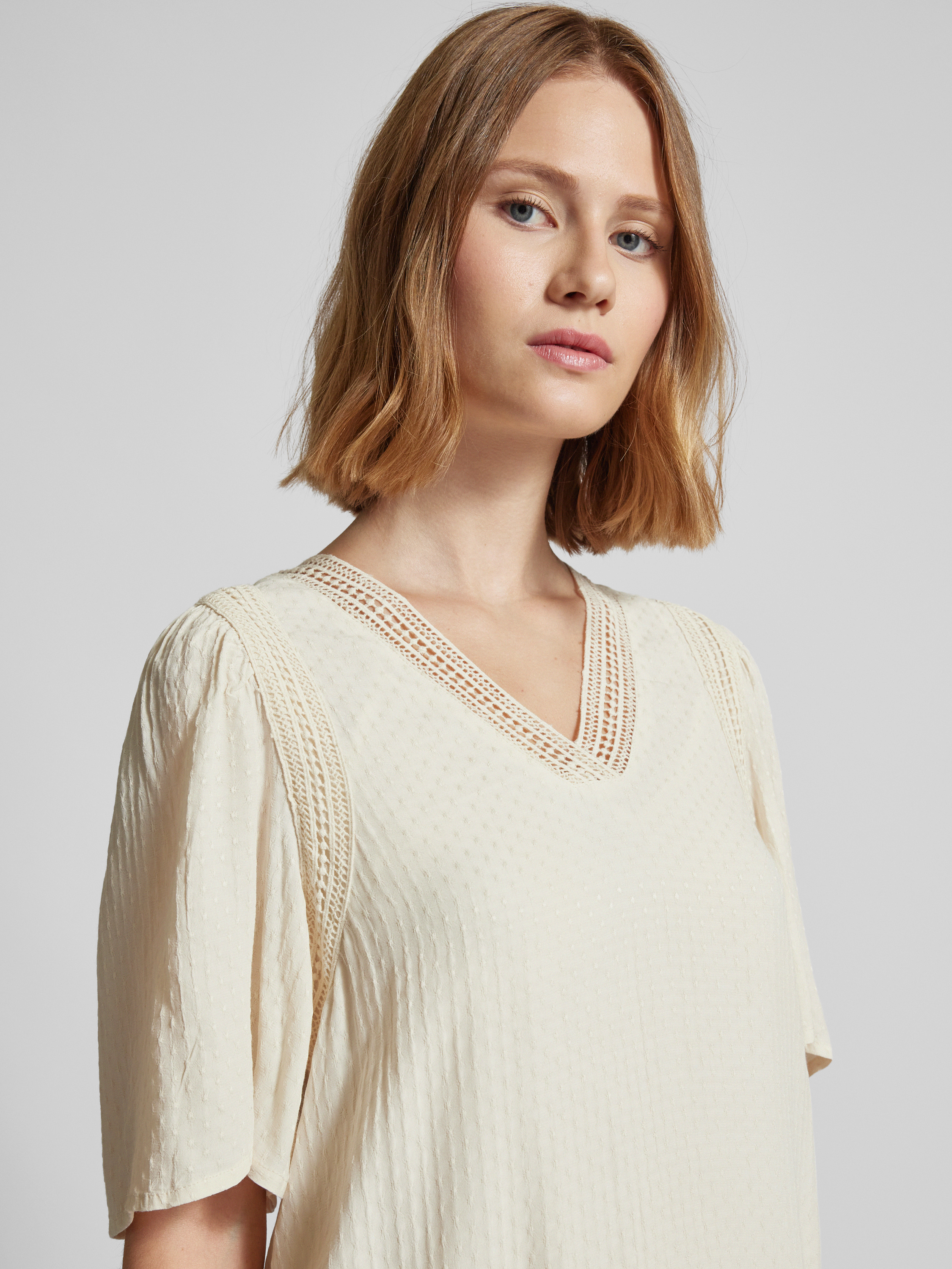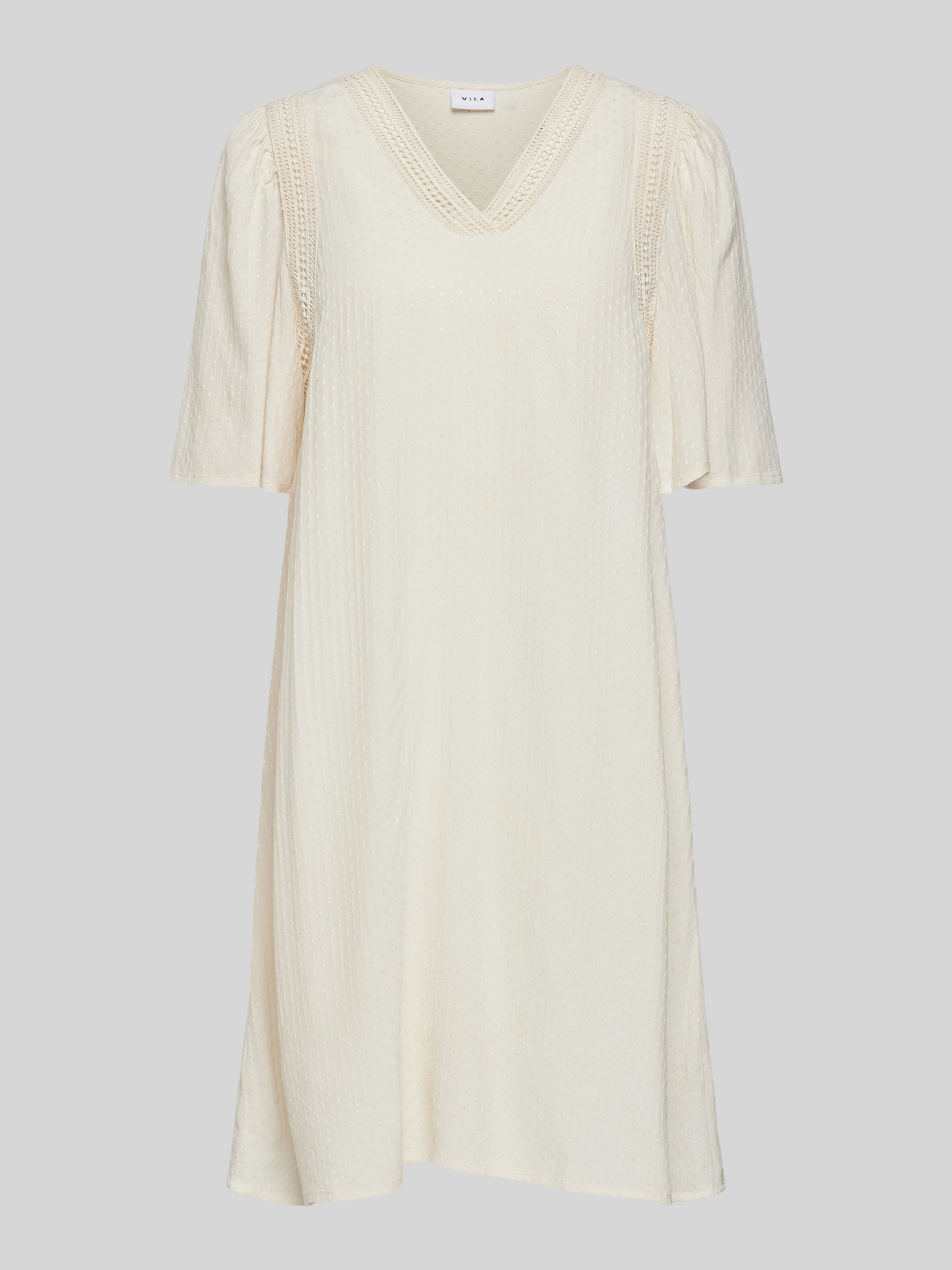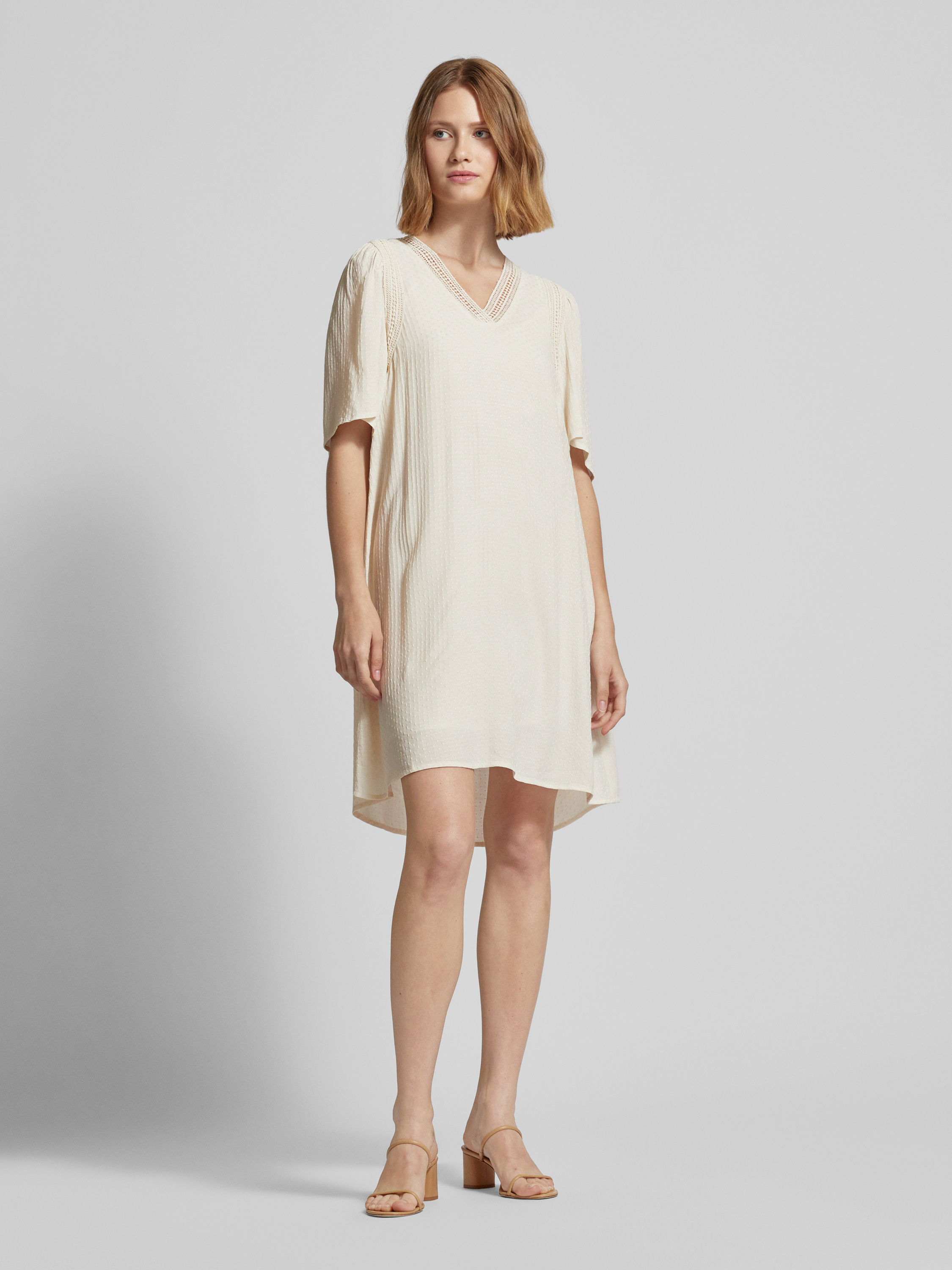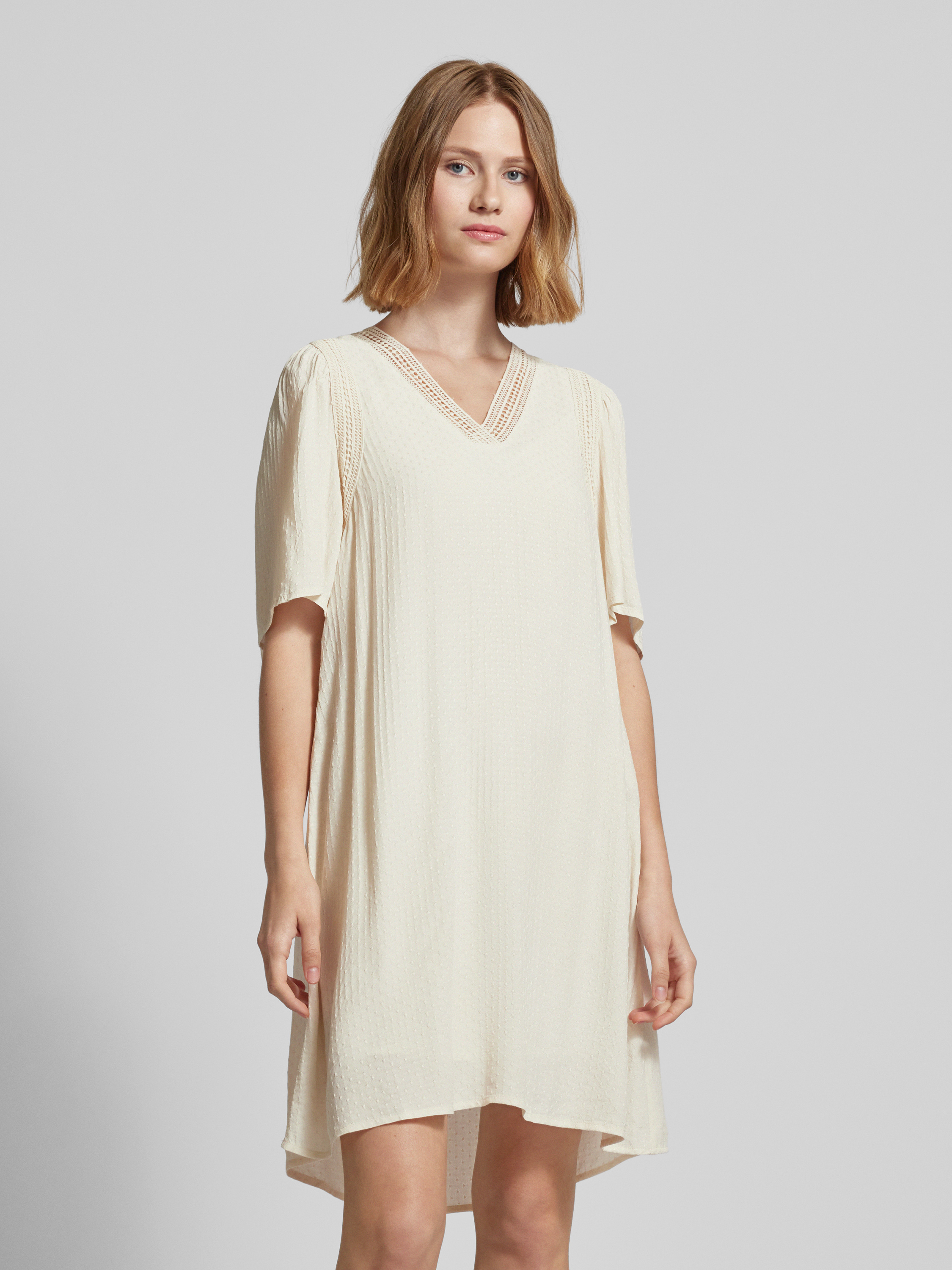 Sukienka o długości do kolan z dekoltem w serek model ‘SAKI’ - écru