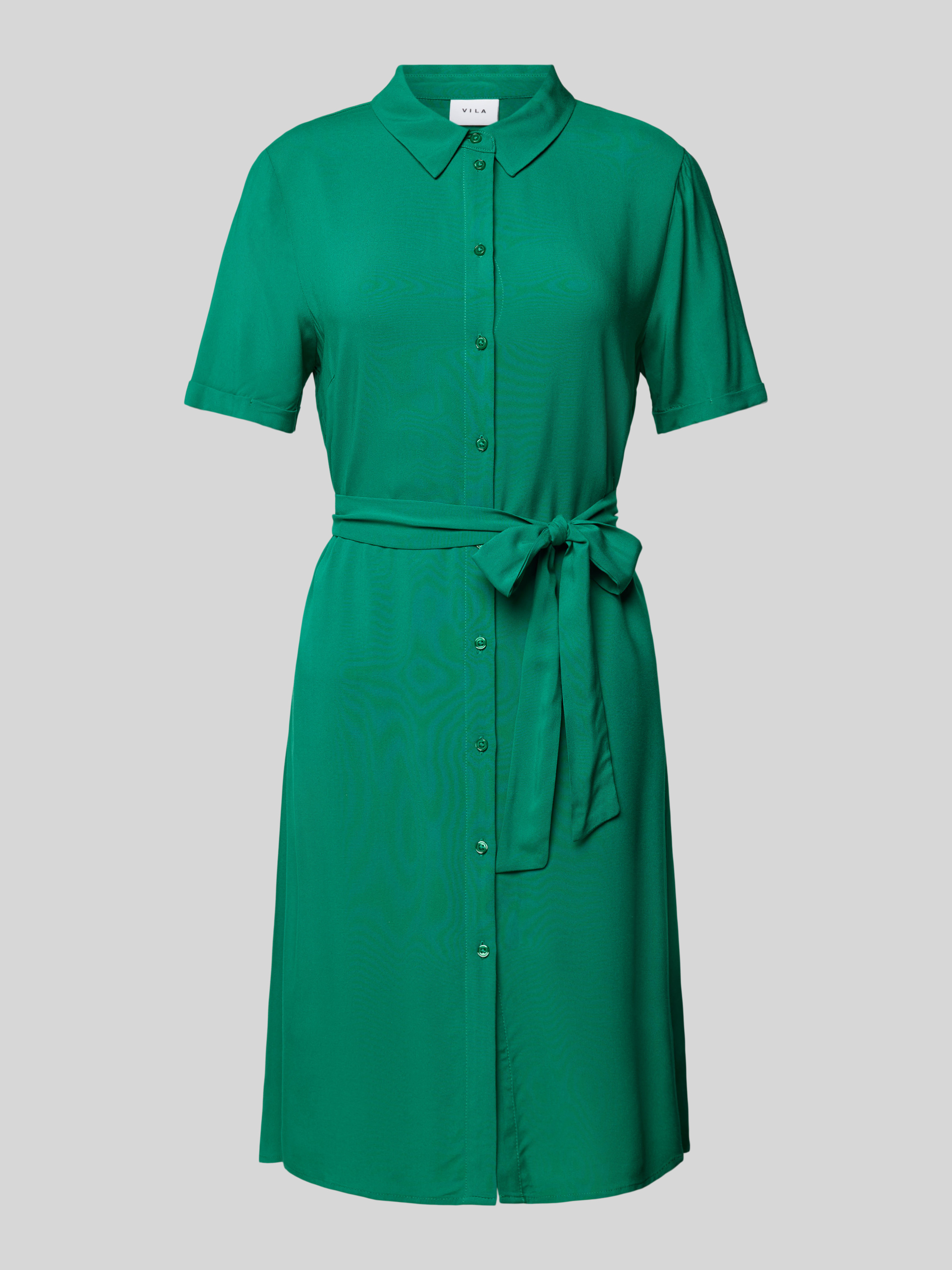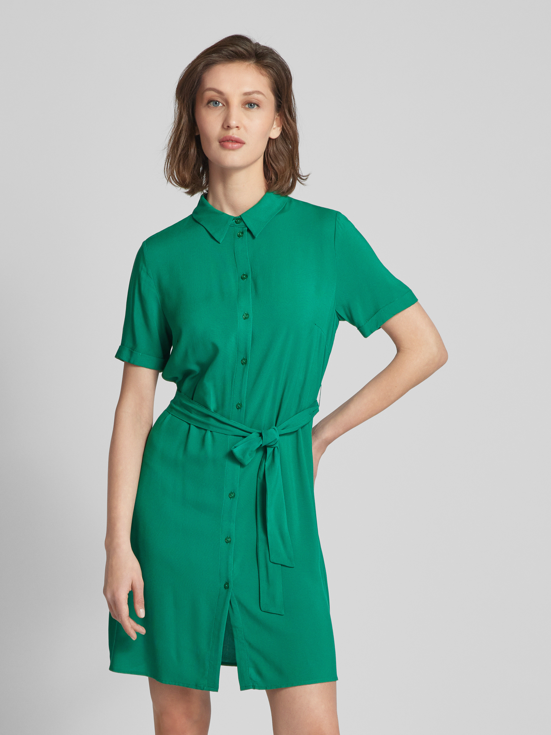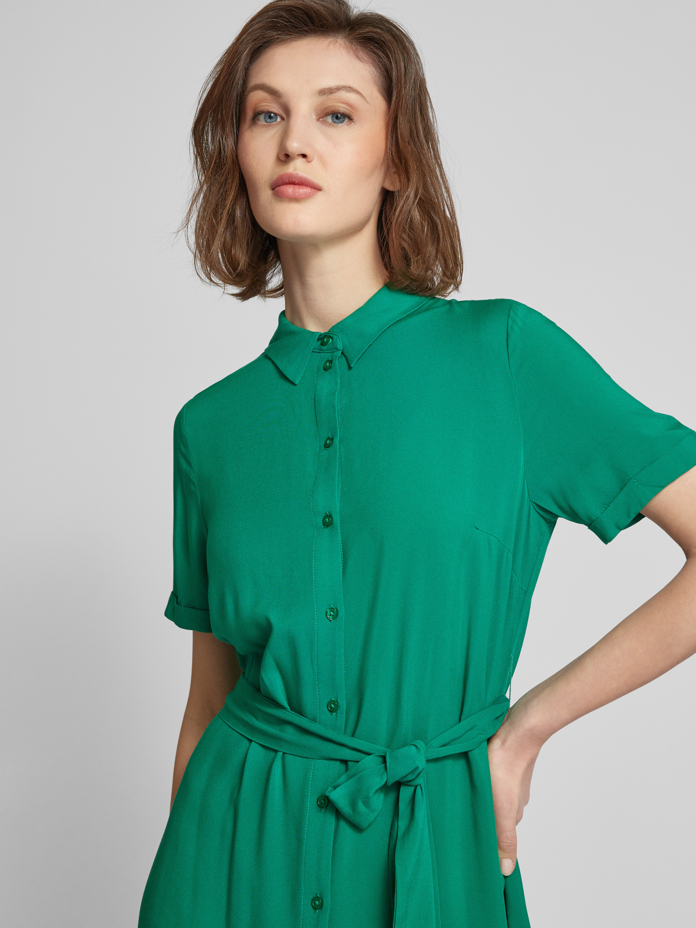 Sukienka T-shirtowa o długości do kolan z wykładanym kołnierzem model ‘paya’ - zielony