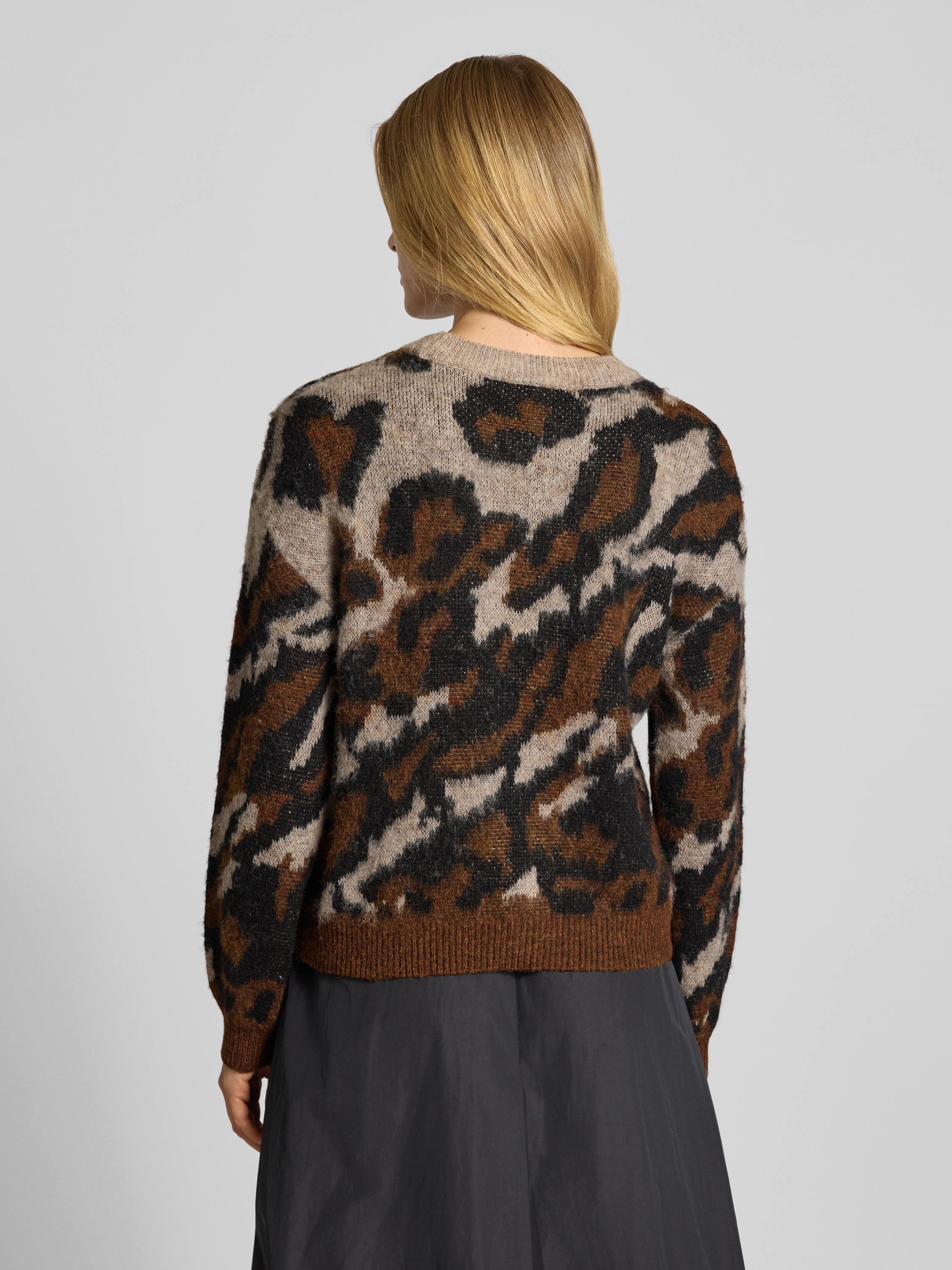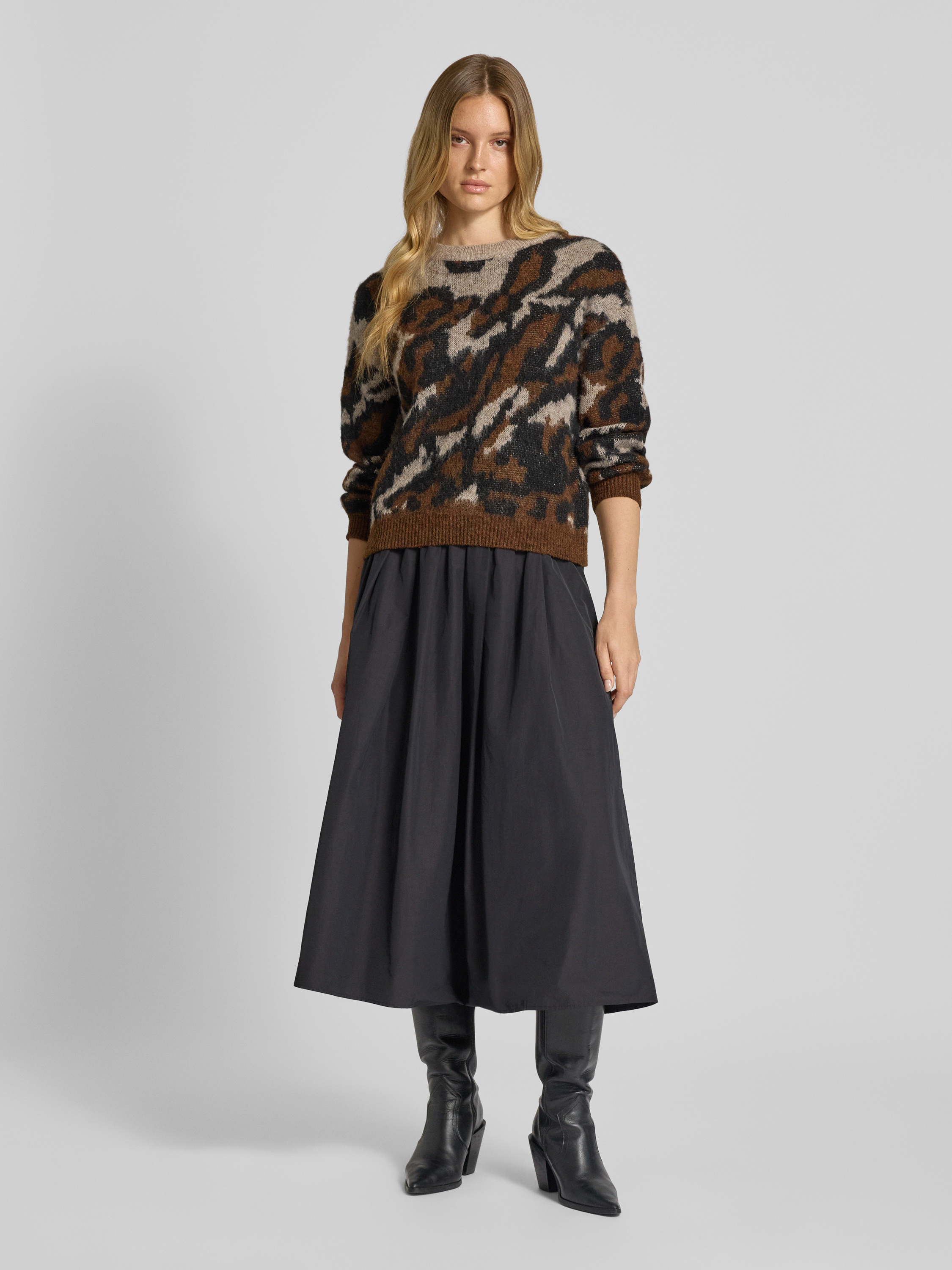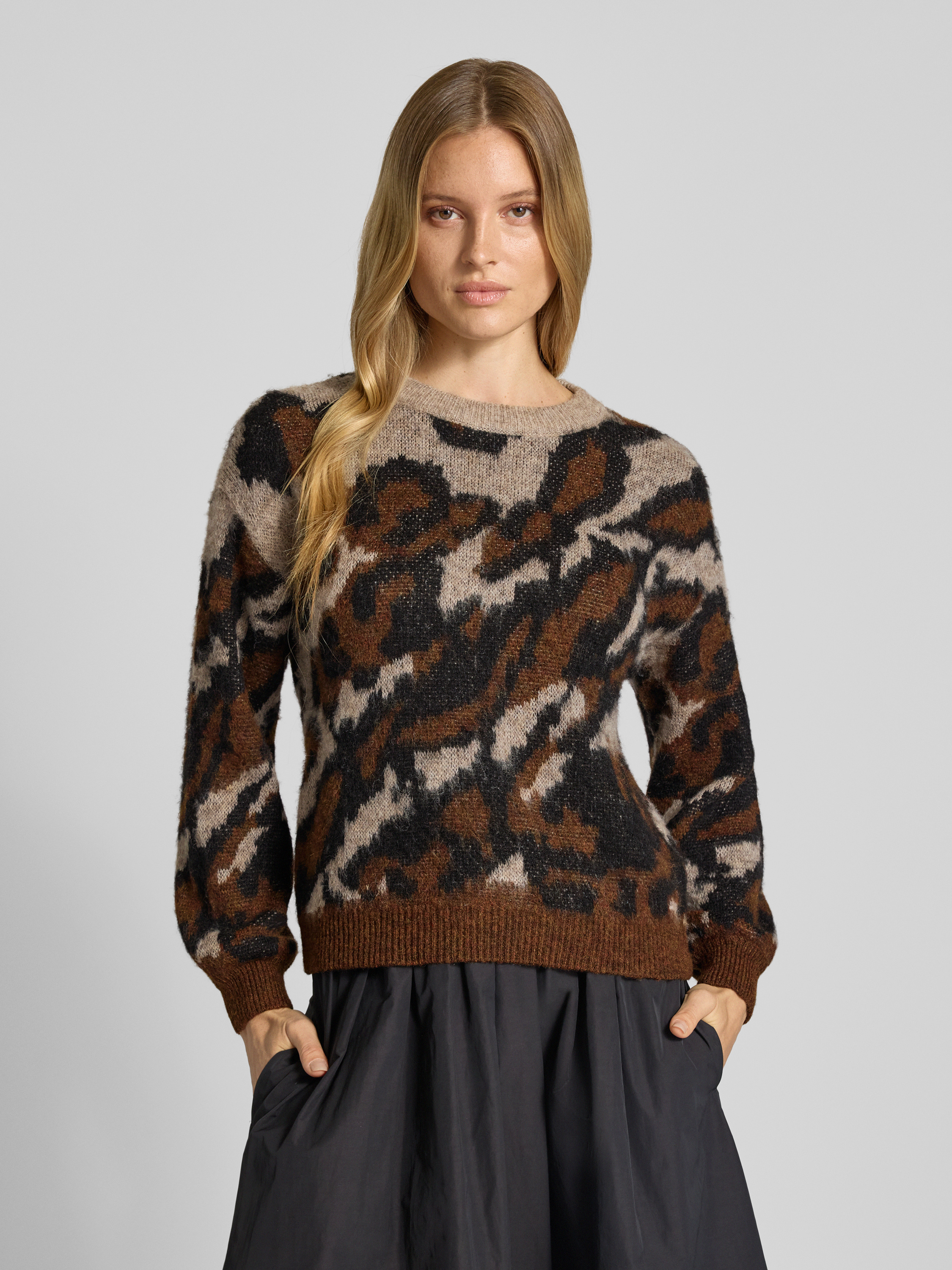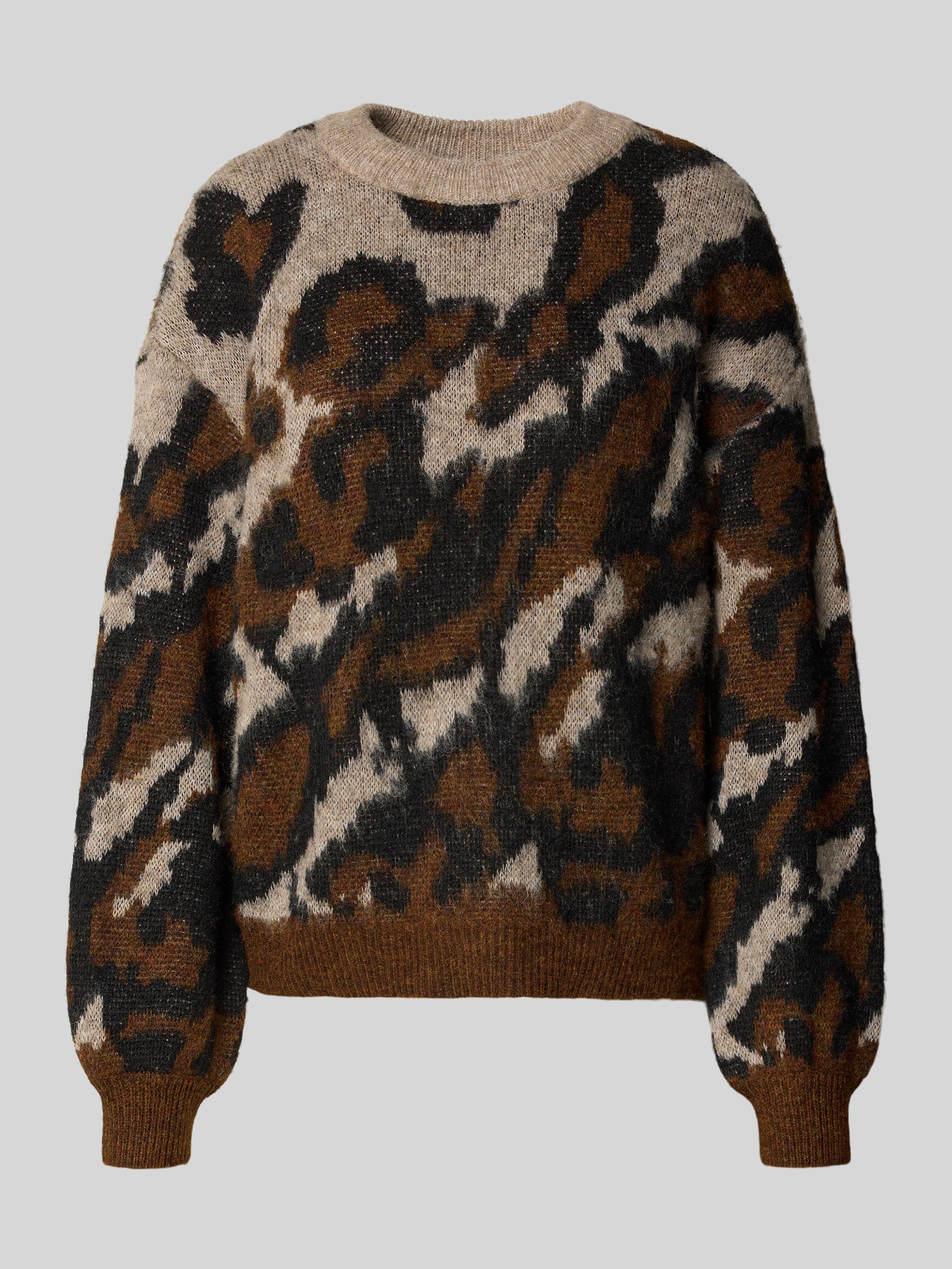 Sweter z dzianiny o kroju oversized z prążkowanymi wykończeniami model ‘LOMA’ - ciemnobrązowy