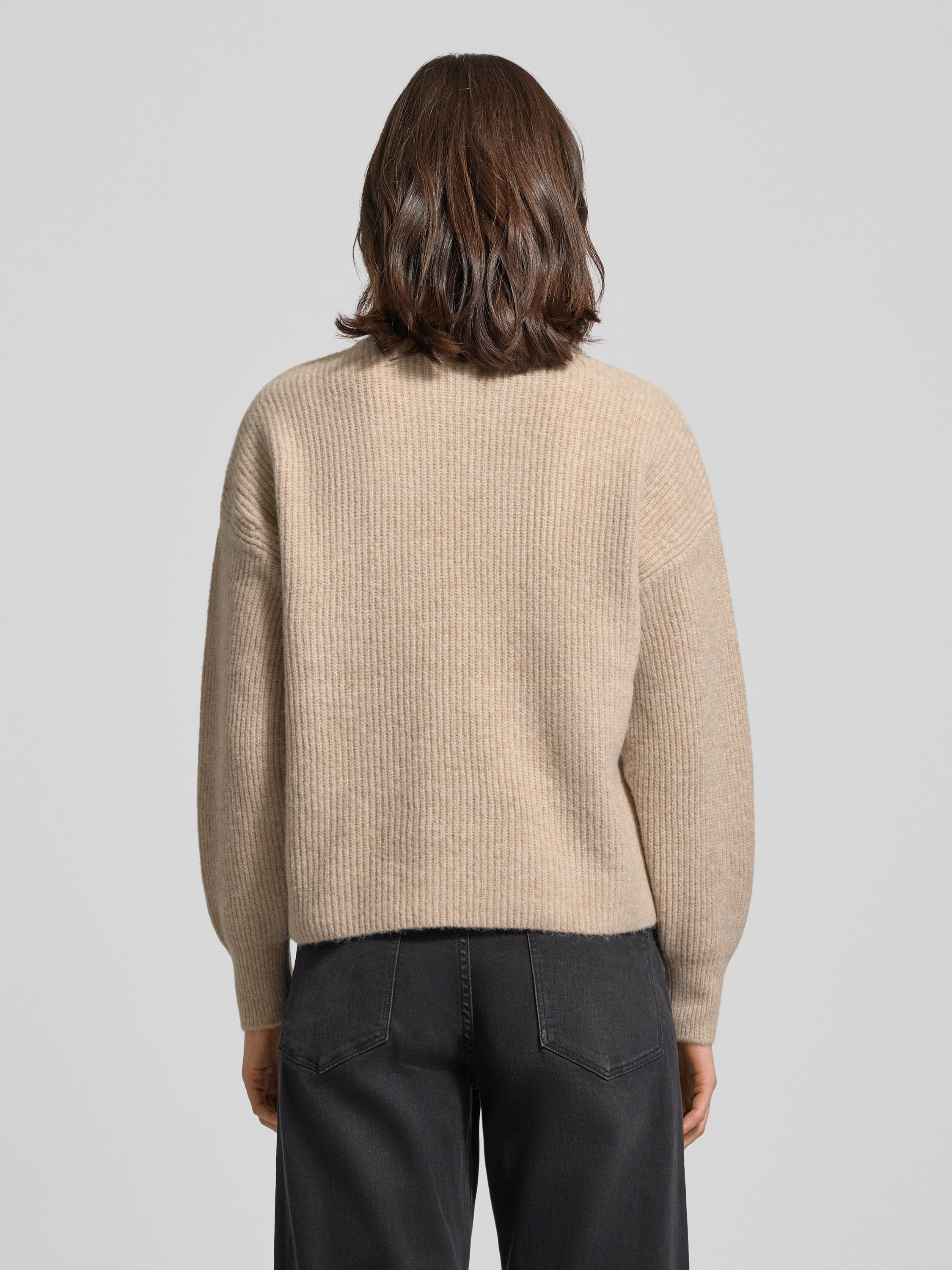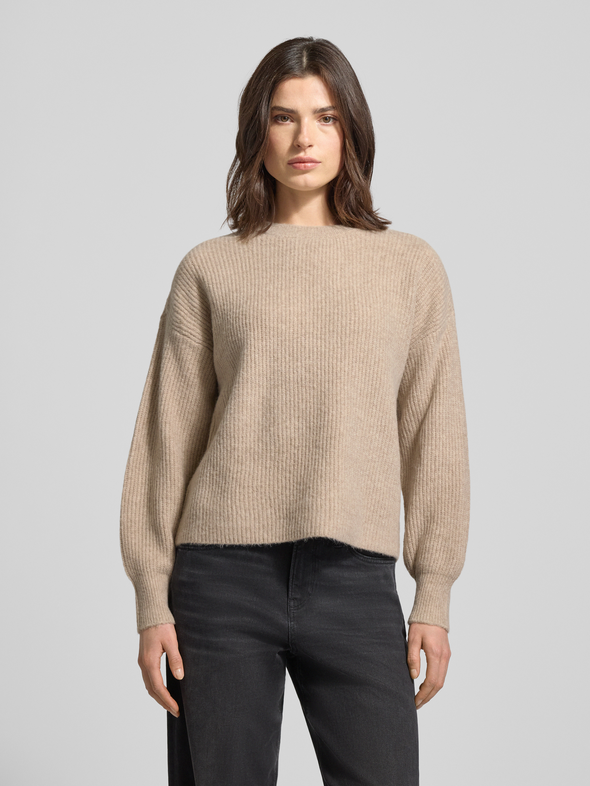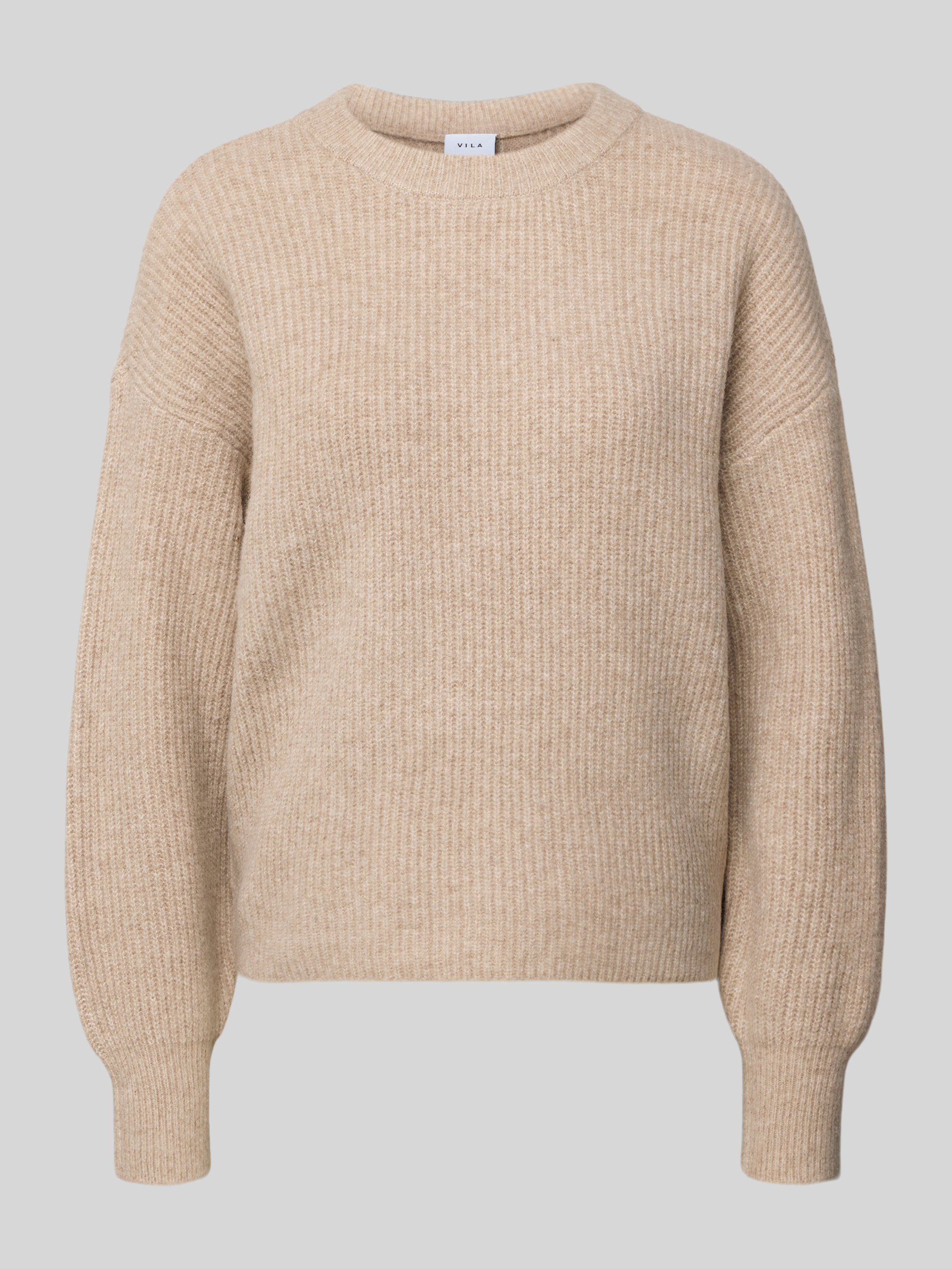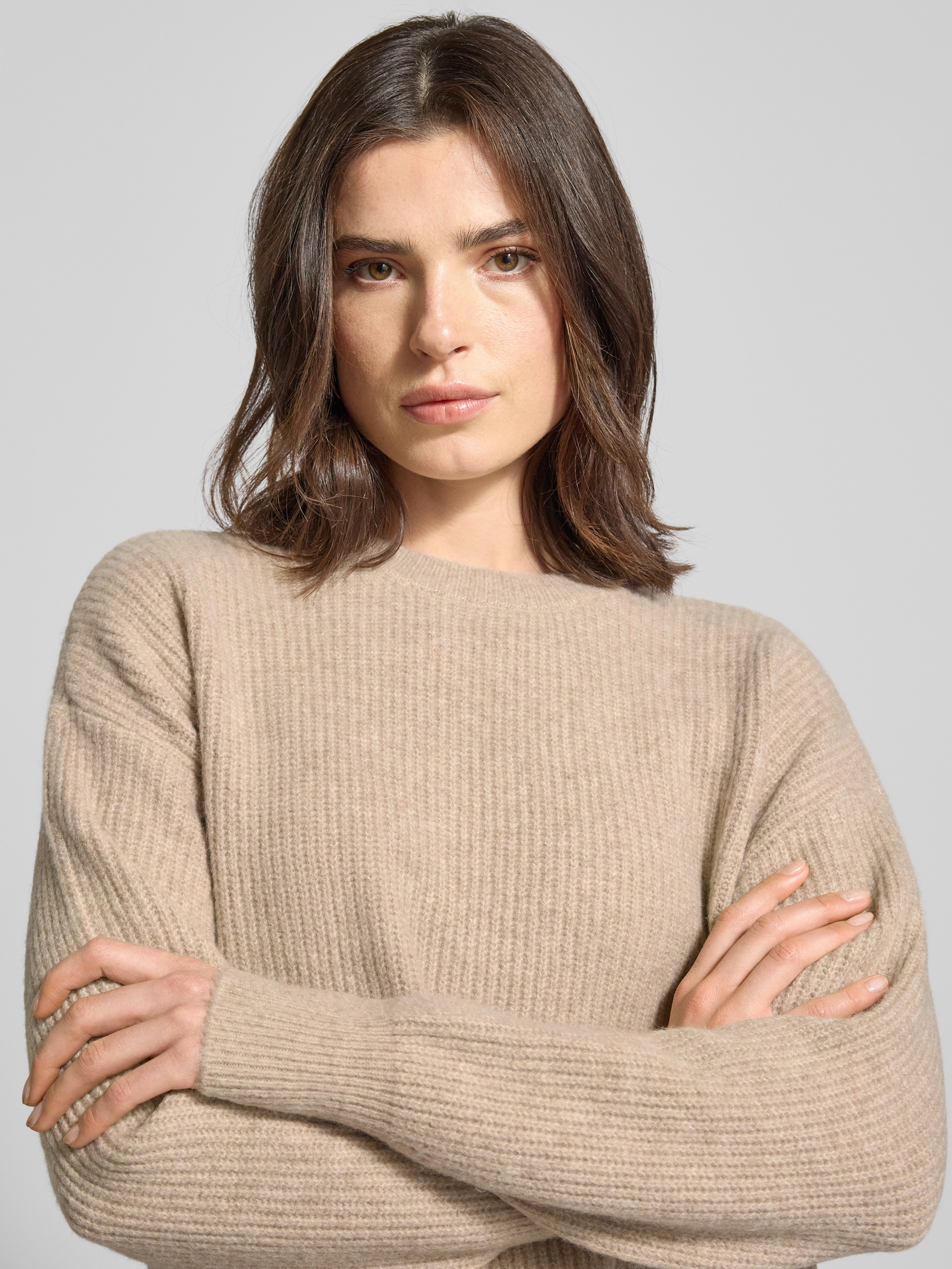 Sweter z dzianiny z okrągłym dekoltem model ‘KACHEL’ - beżowy