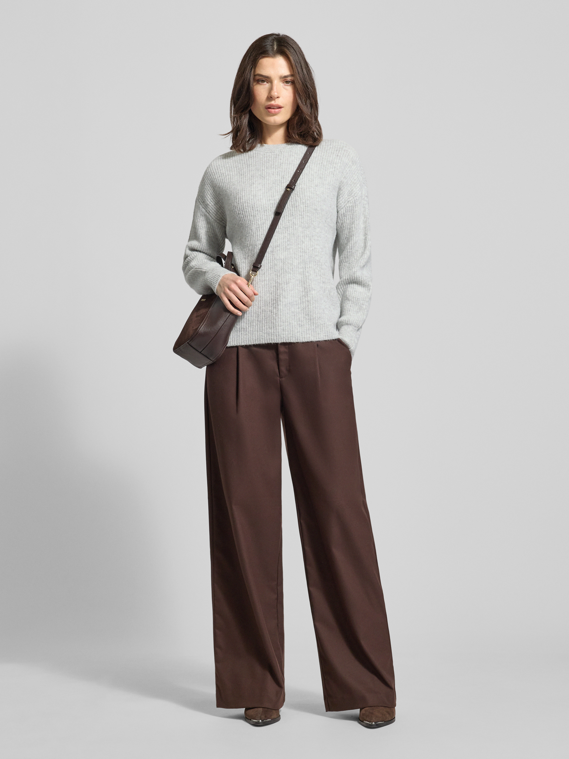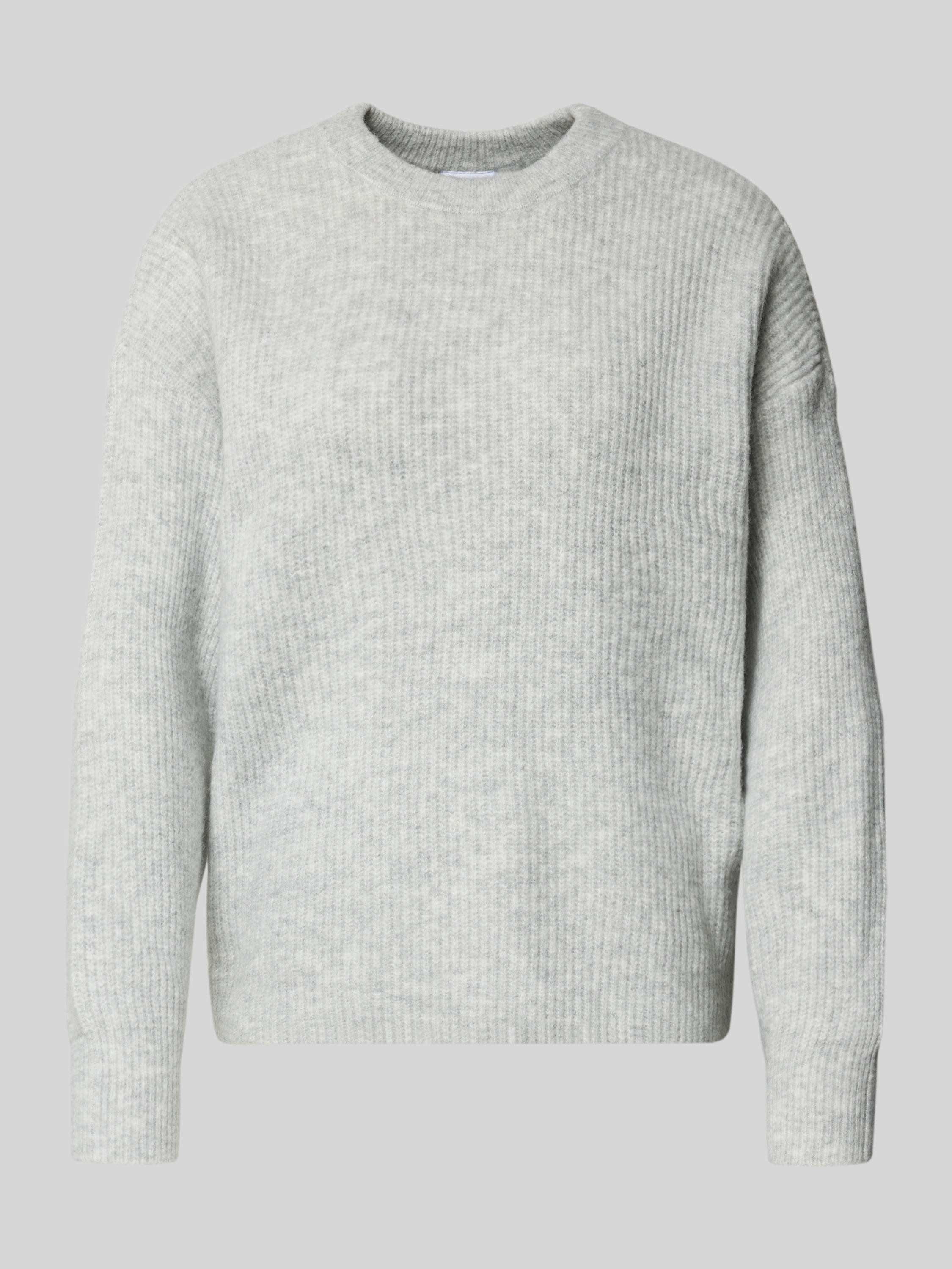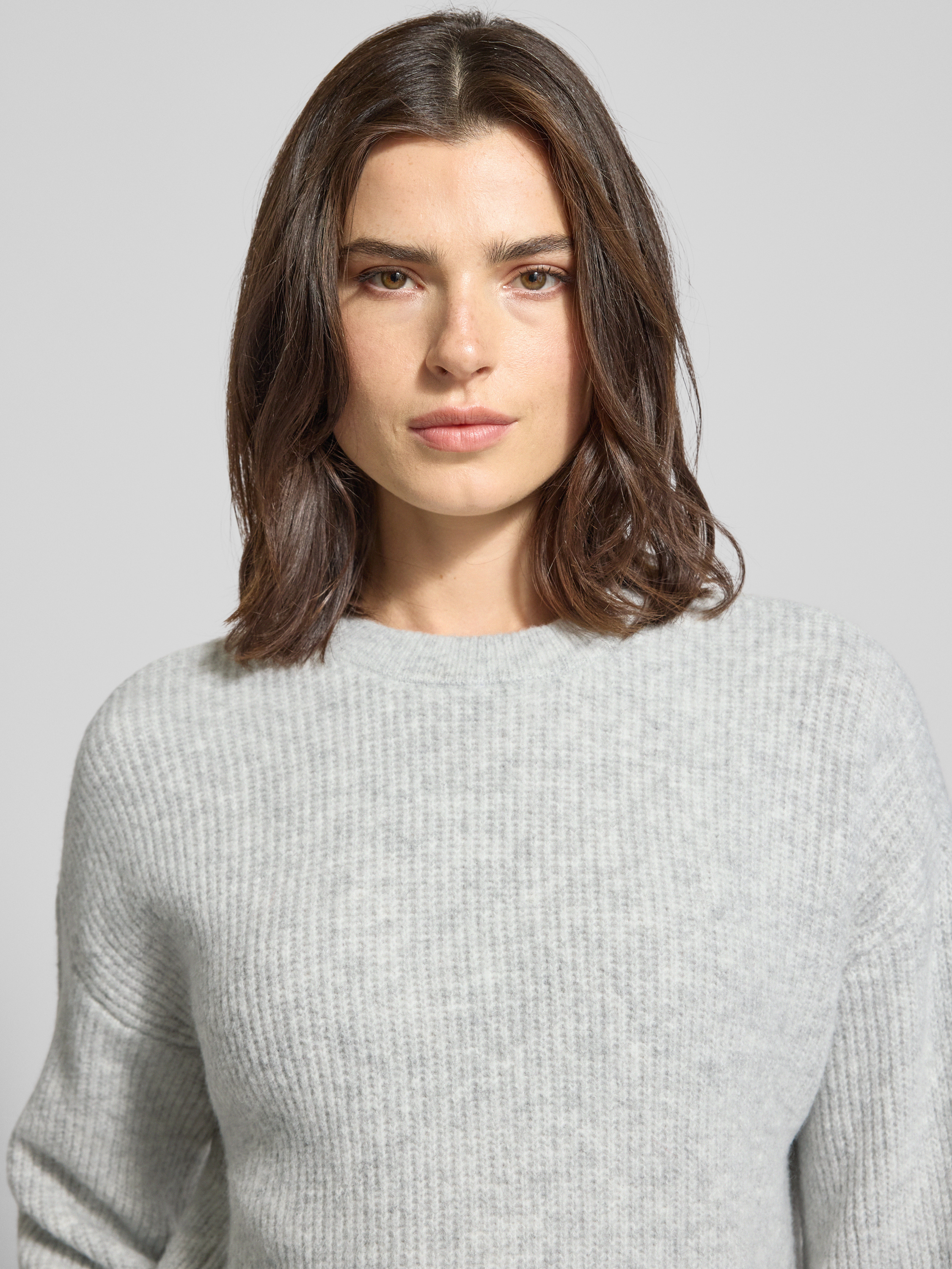 Sweter z dzianiny z okrągłym dekoltem model ‘KACHEL’ - jasnoszary