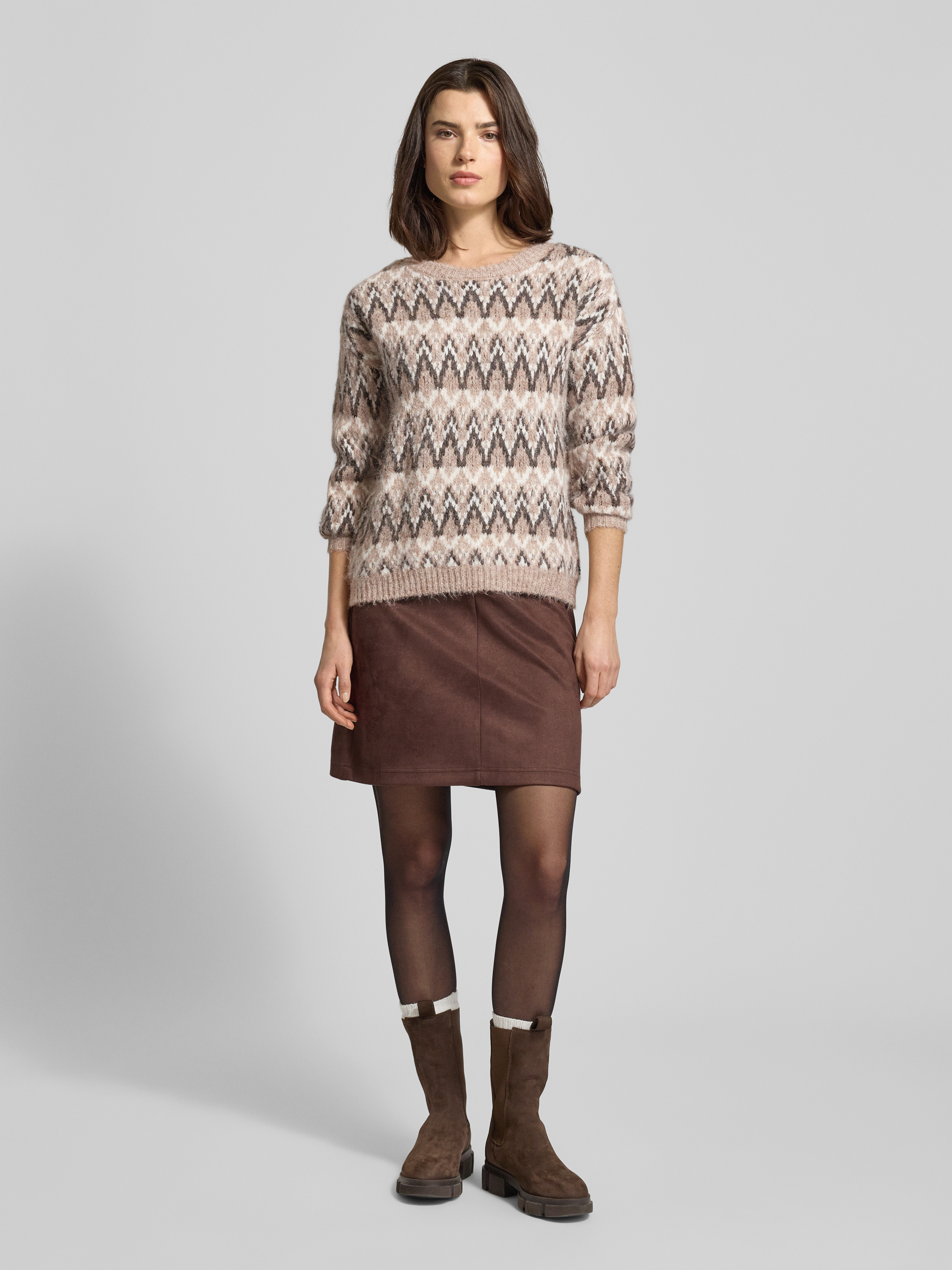 Sweter z dzianiny z okrągłym dekoltem model ‘MARGI’ - różowawy
